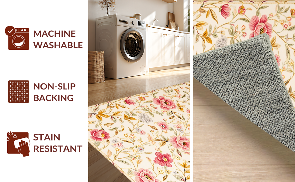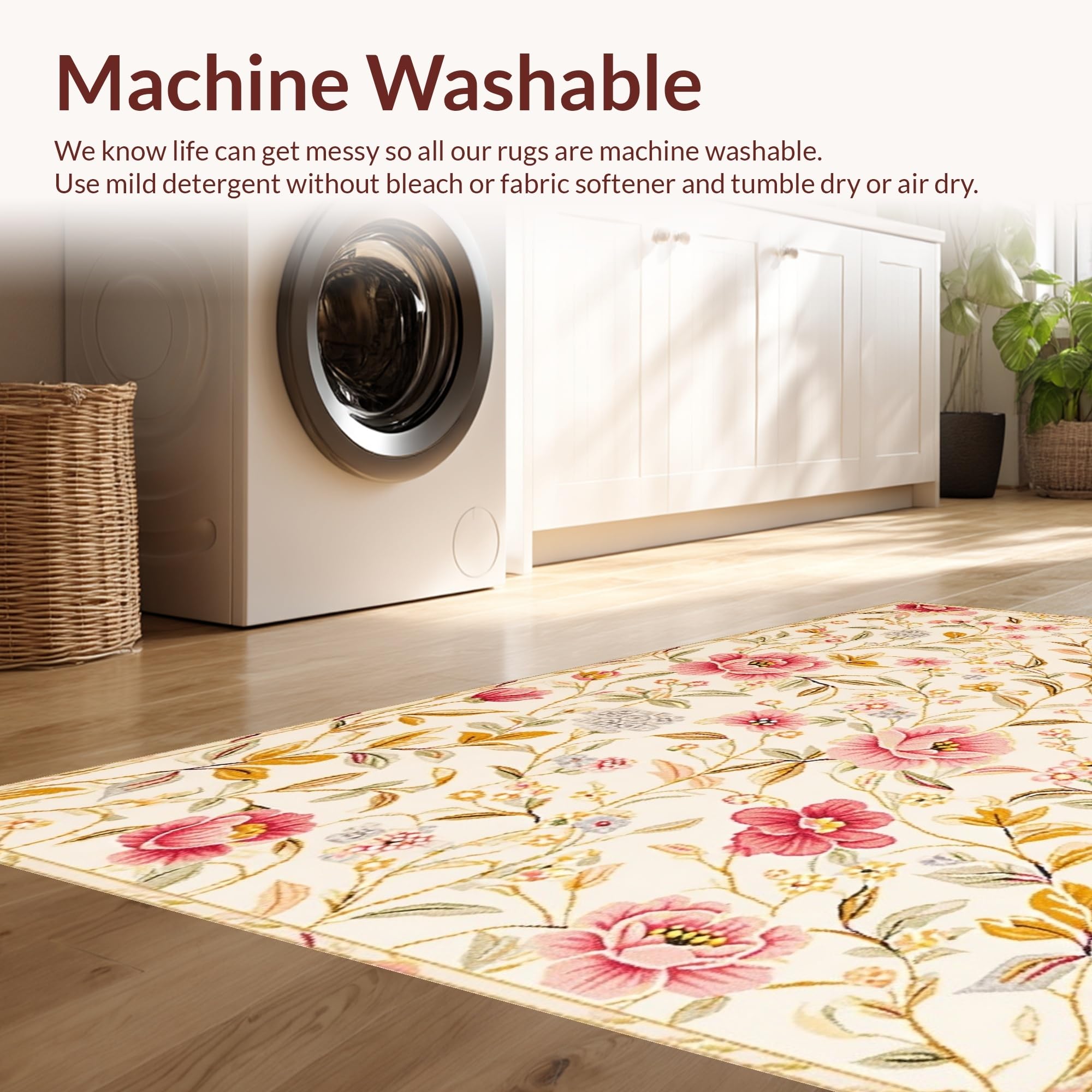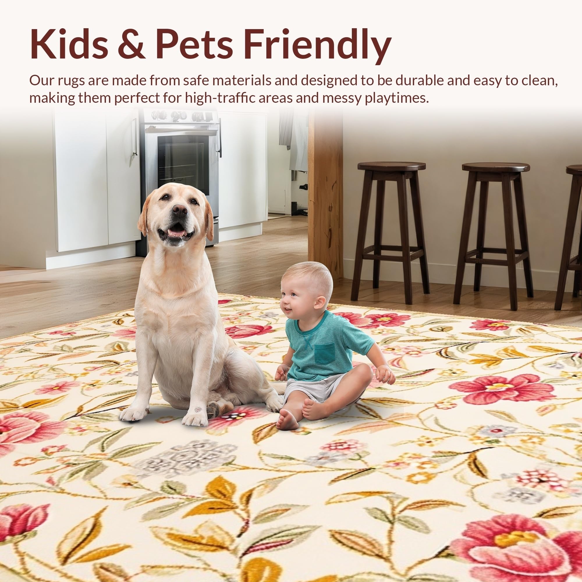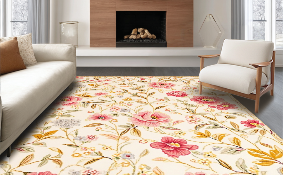 Ultra Soft Area Rug, Non Slip, Stain Resistant, Washable Area Rugs for Living Room, Bedroom, Elegant Soft Floral Elegance(Beige) Overview: