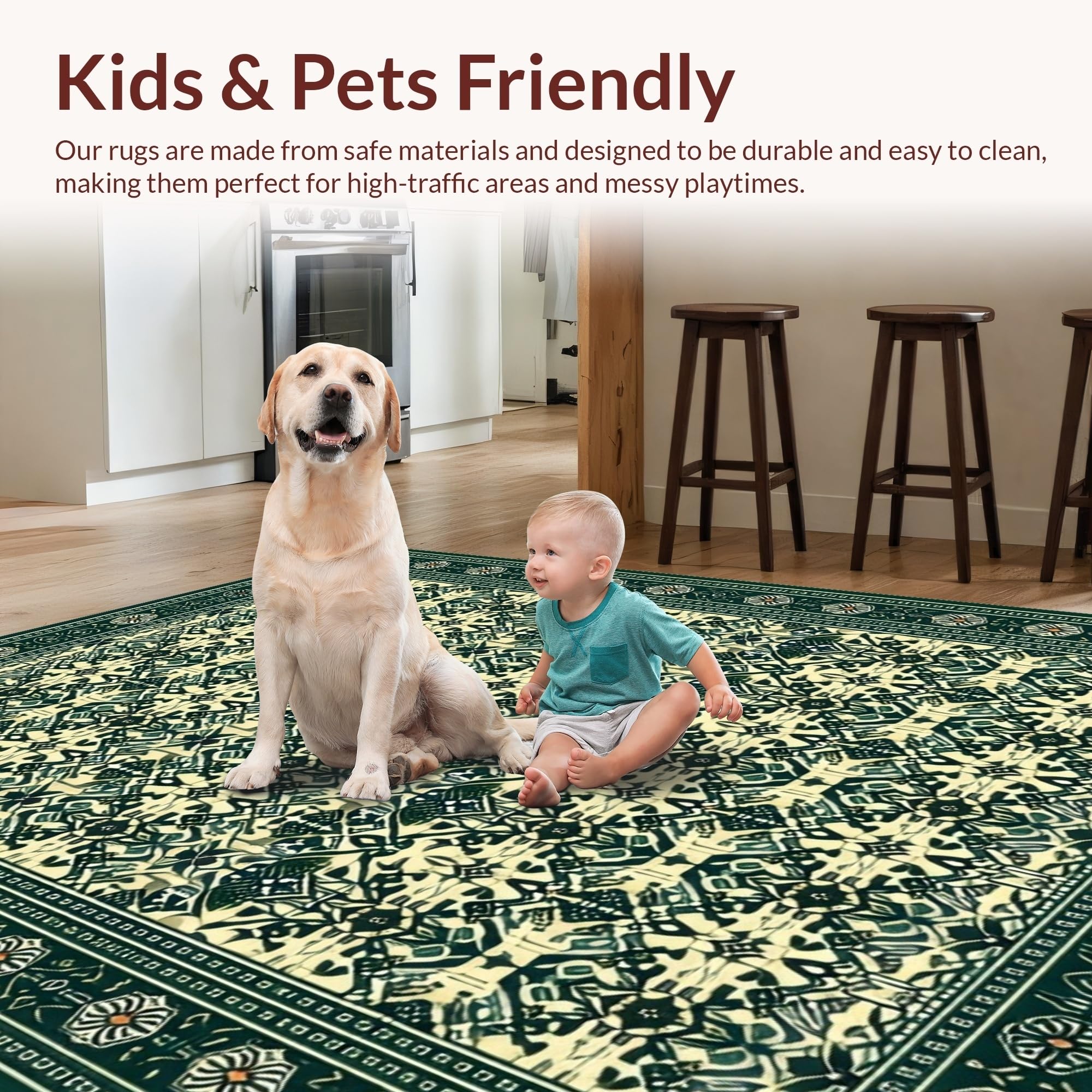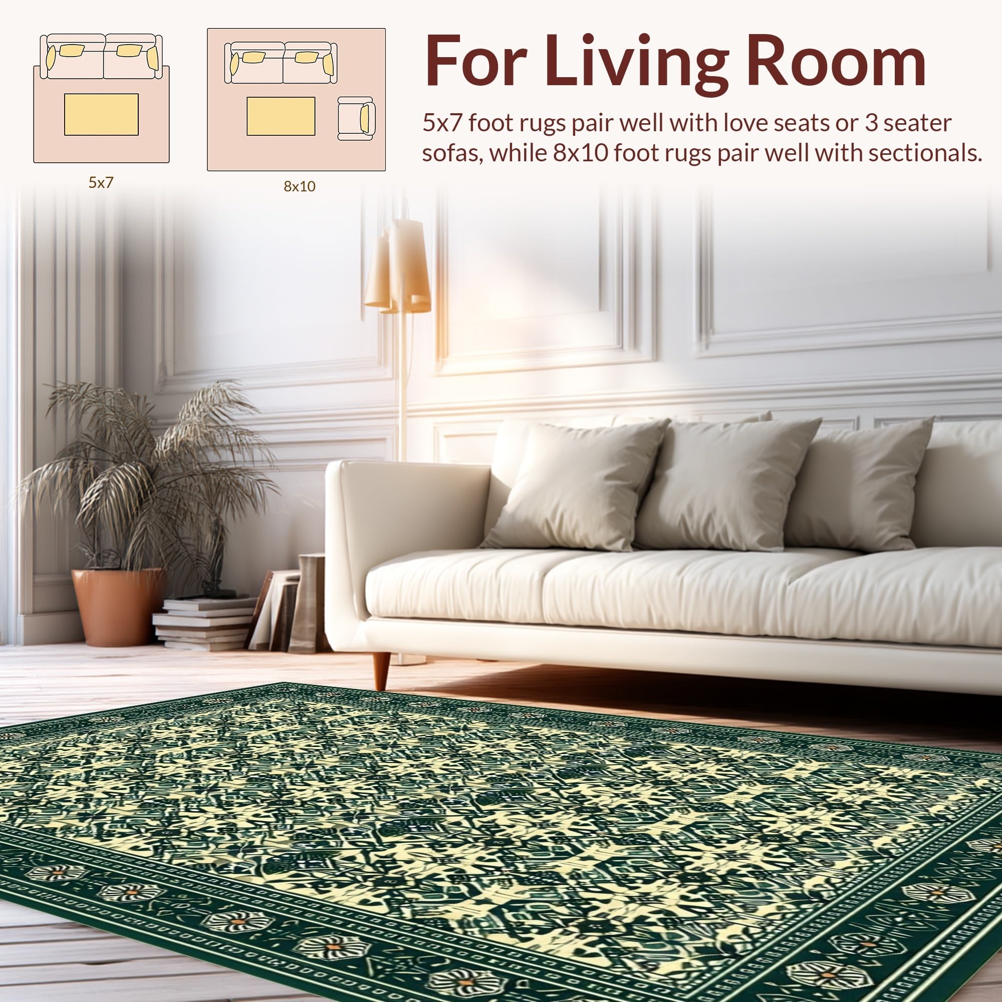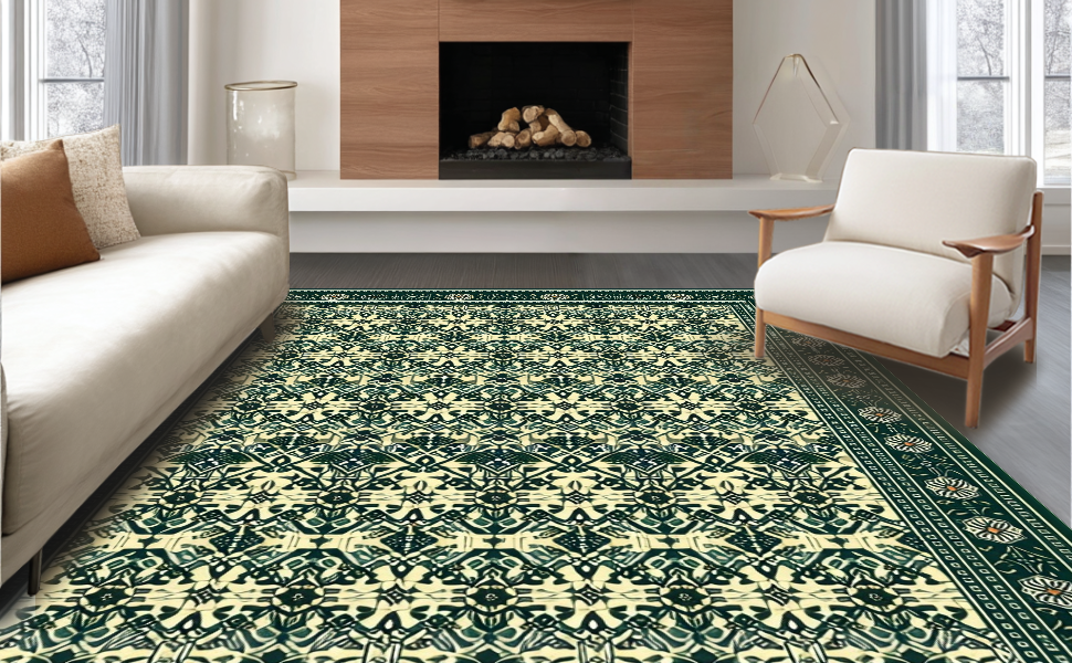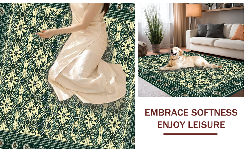 Ultra Soft Area Rug, Non Slip, Stain Resistant, Washable Area Rugs for Living Room, Bedroom, Elegant Soft Organic Texture(Green) Overview: