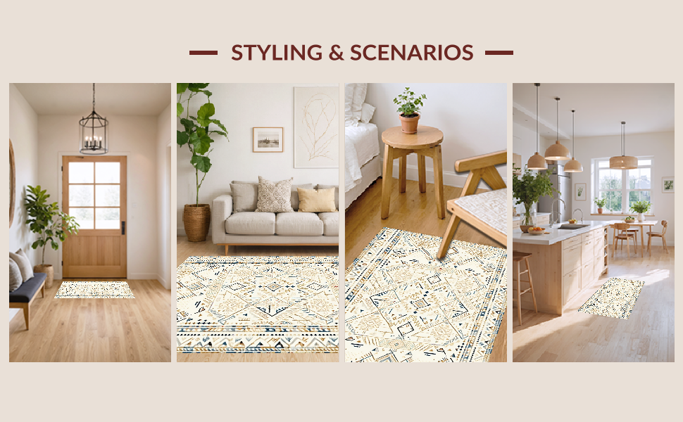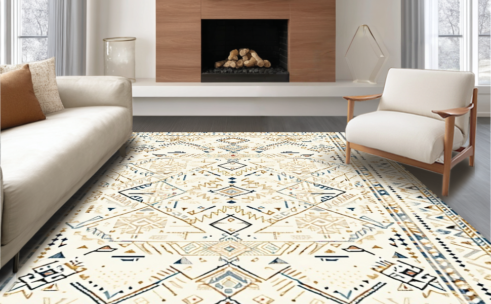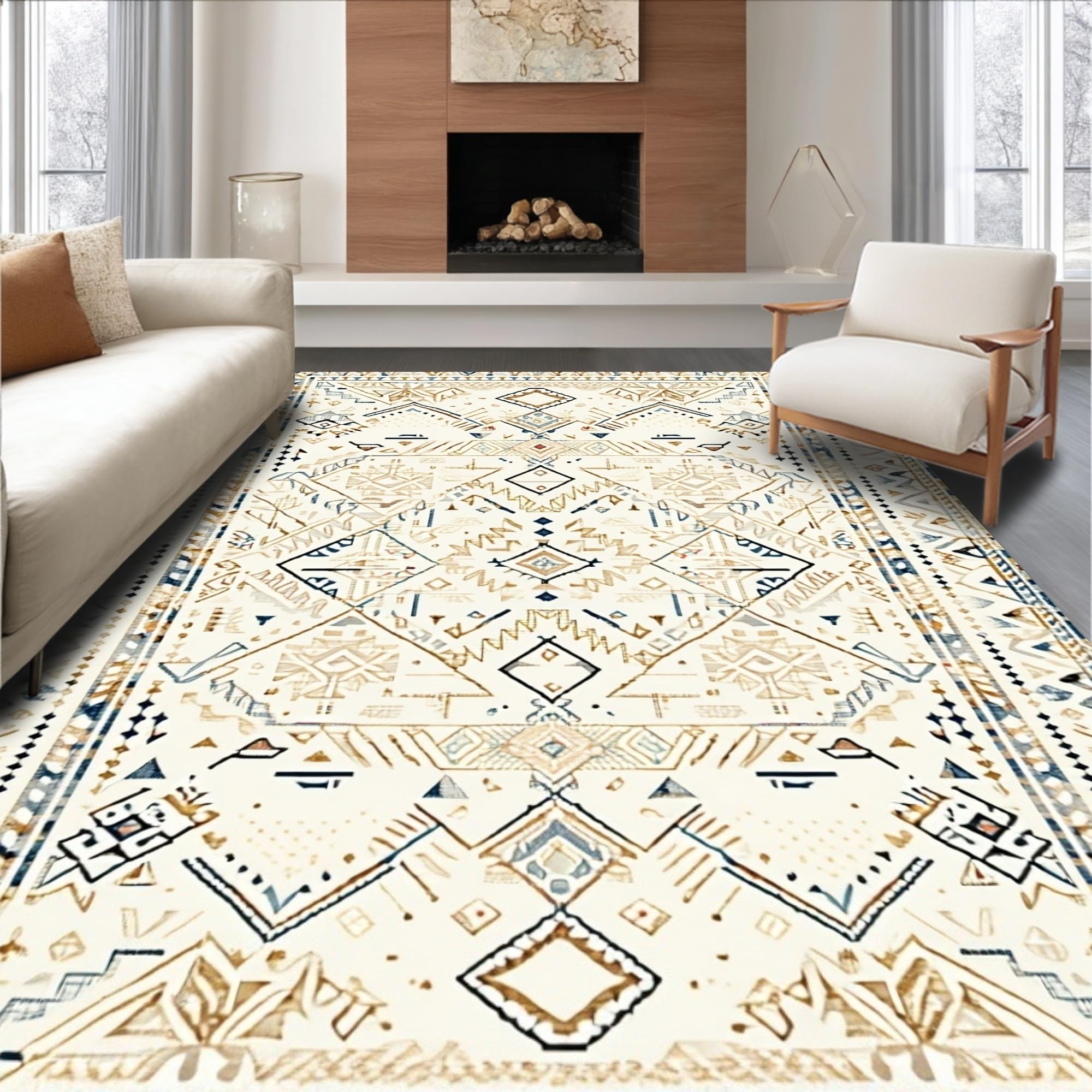 Ultra Soft Area Rug, Non Slip, Stain Resistant, Washable Area Rugs for Living Room, Bedroom, Elegant Soft Pastel Motif(Beige) Overview: