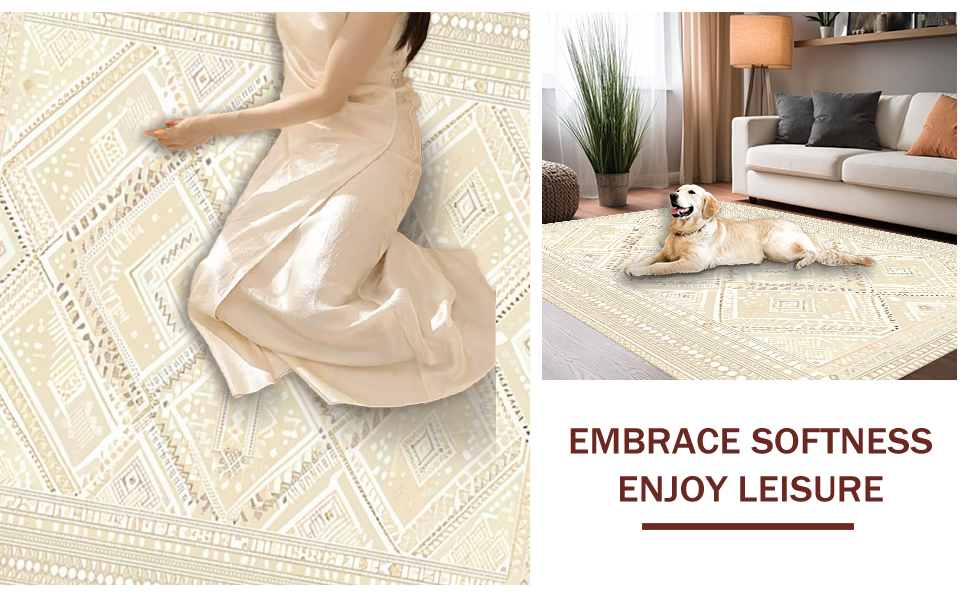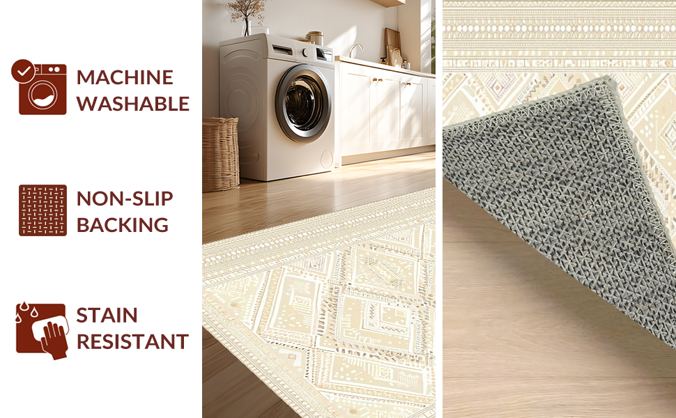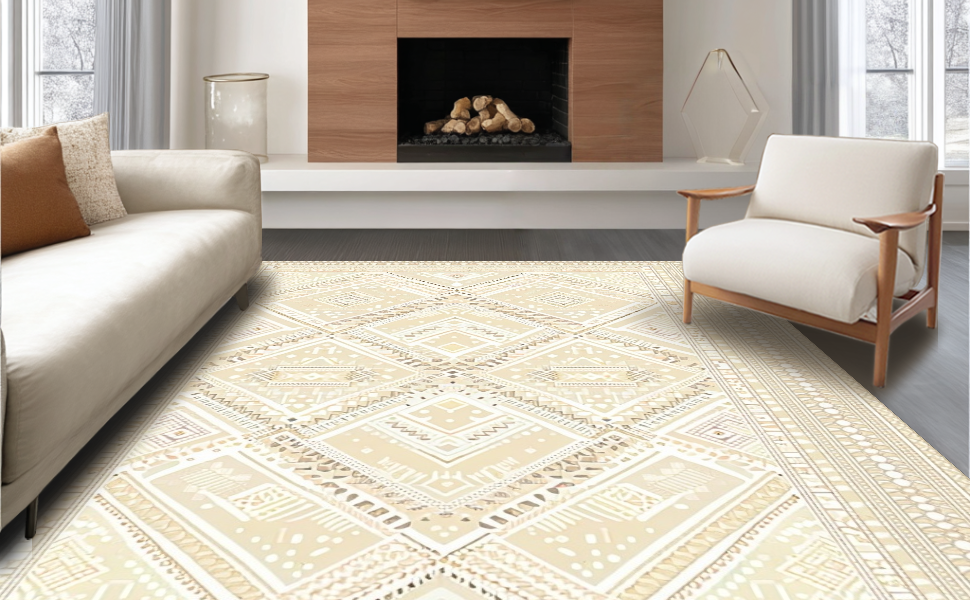 Ultra Soft Area Rug, Non Slip, Stain Resistant, Washable Area Rugs for Living Room, Bedroom, Elegant Soft Pastel Trellis Motif(Beige) Overview: