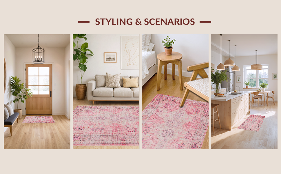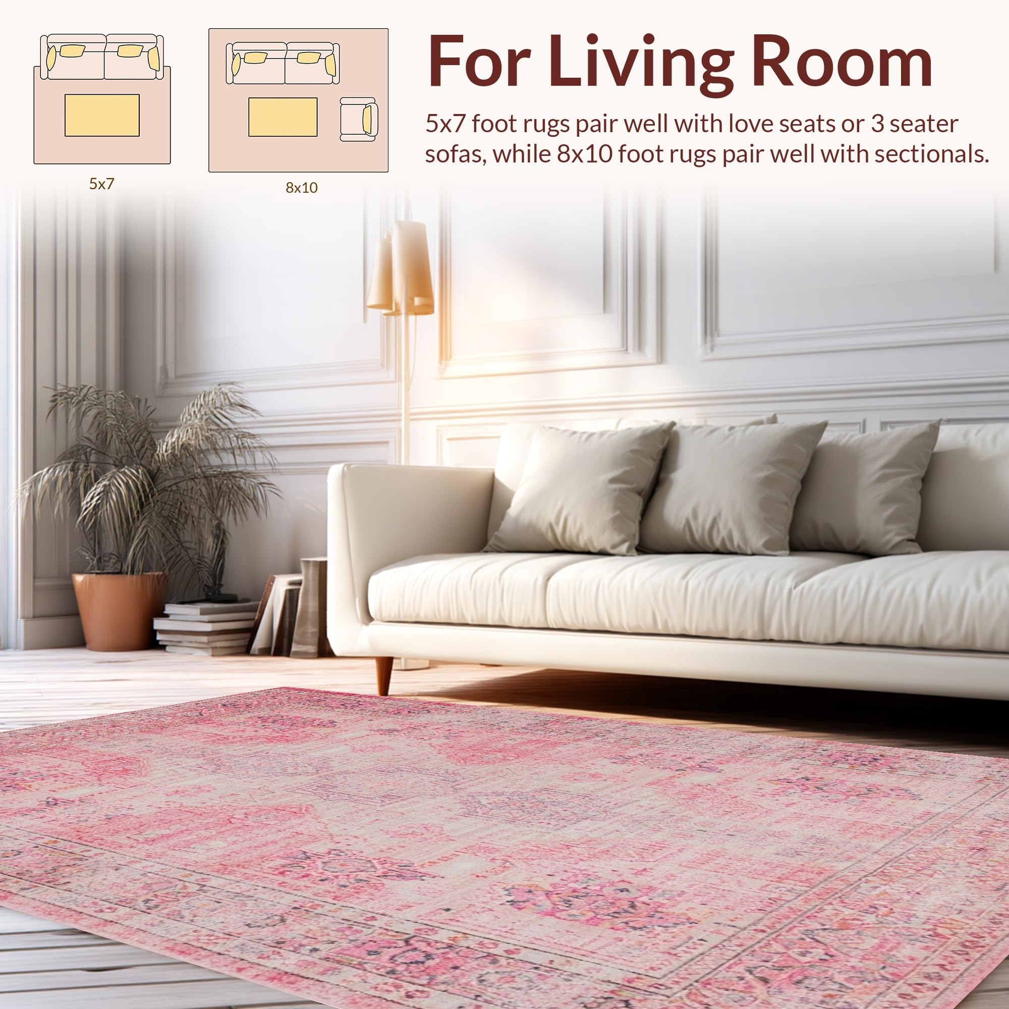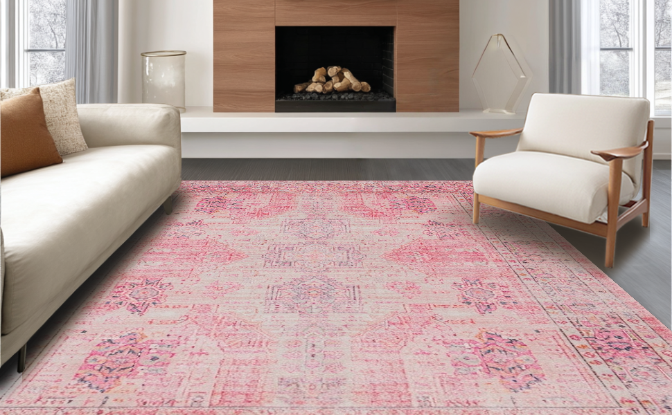 Ultra Soft Area Rug, Non Slip, Stain Resistant, Washable Area Rugs for Living Room, Bedroom, Elegant Soft Pink Ombre(Pink) Overview: