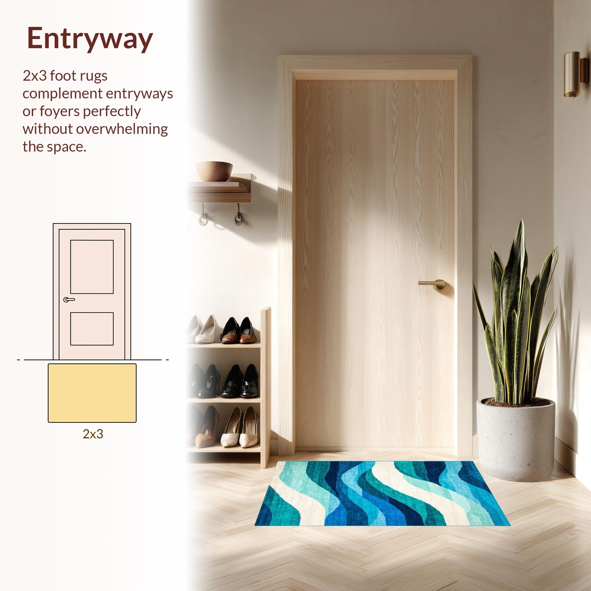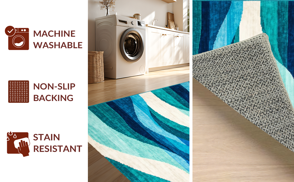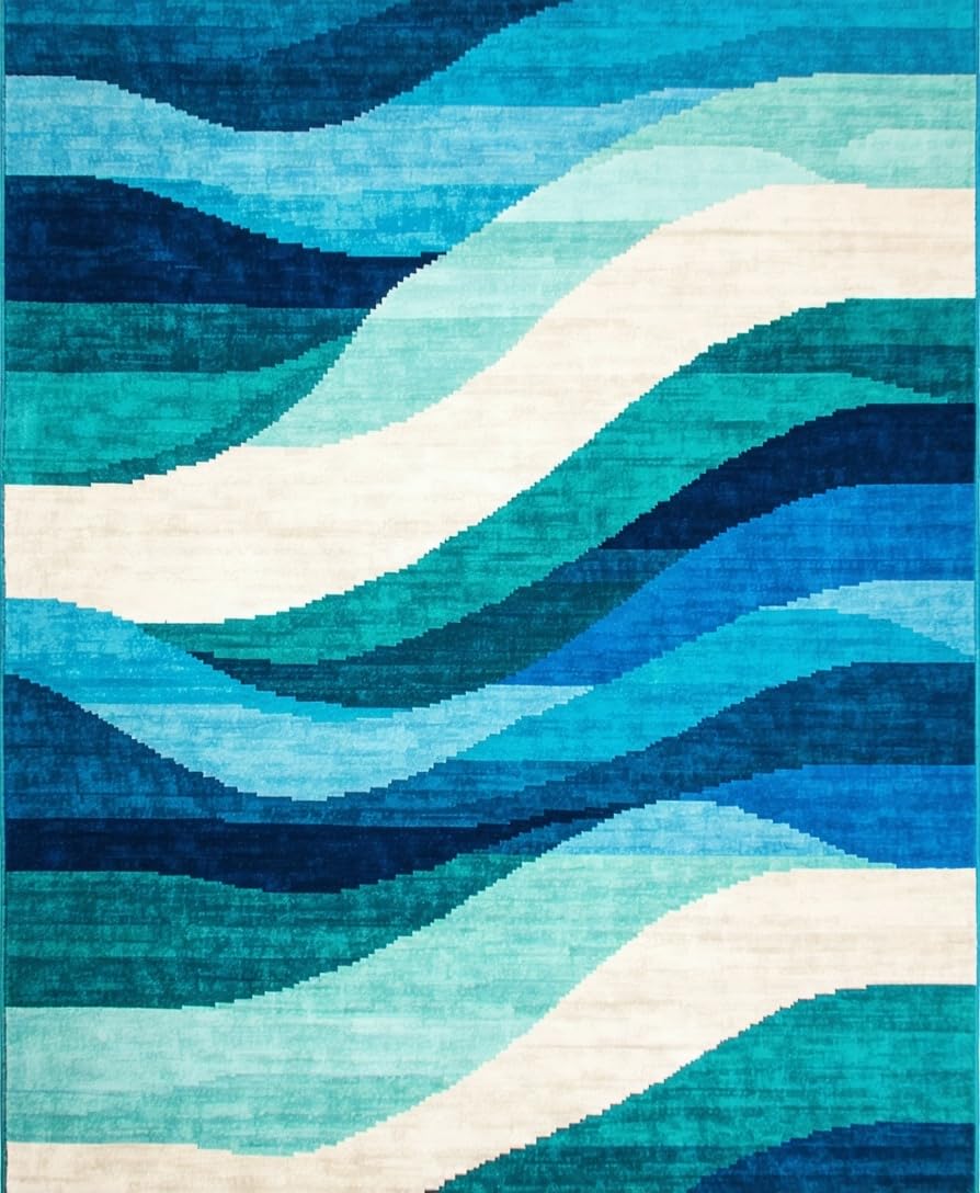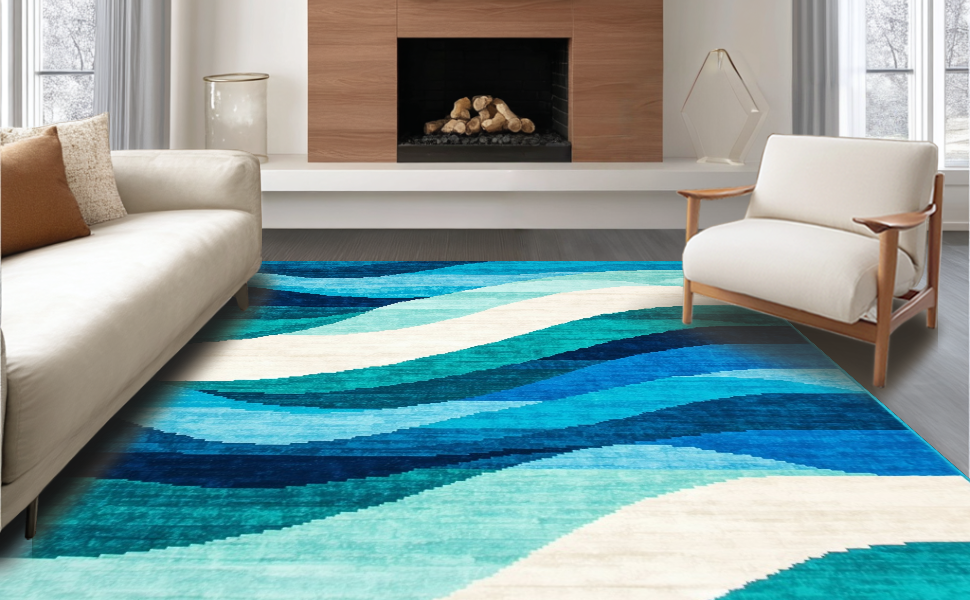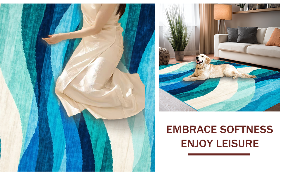 Ultra Soft Area Rug, Non Slip, Stain Resistant, Washable Area Rugs for Living Room, Bedroom, Elegant Soft Plush Abstract Waves(Blue) Overview: