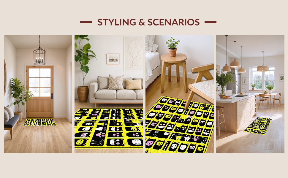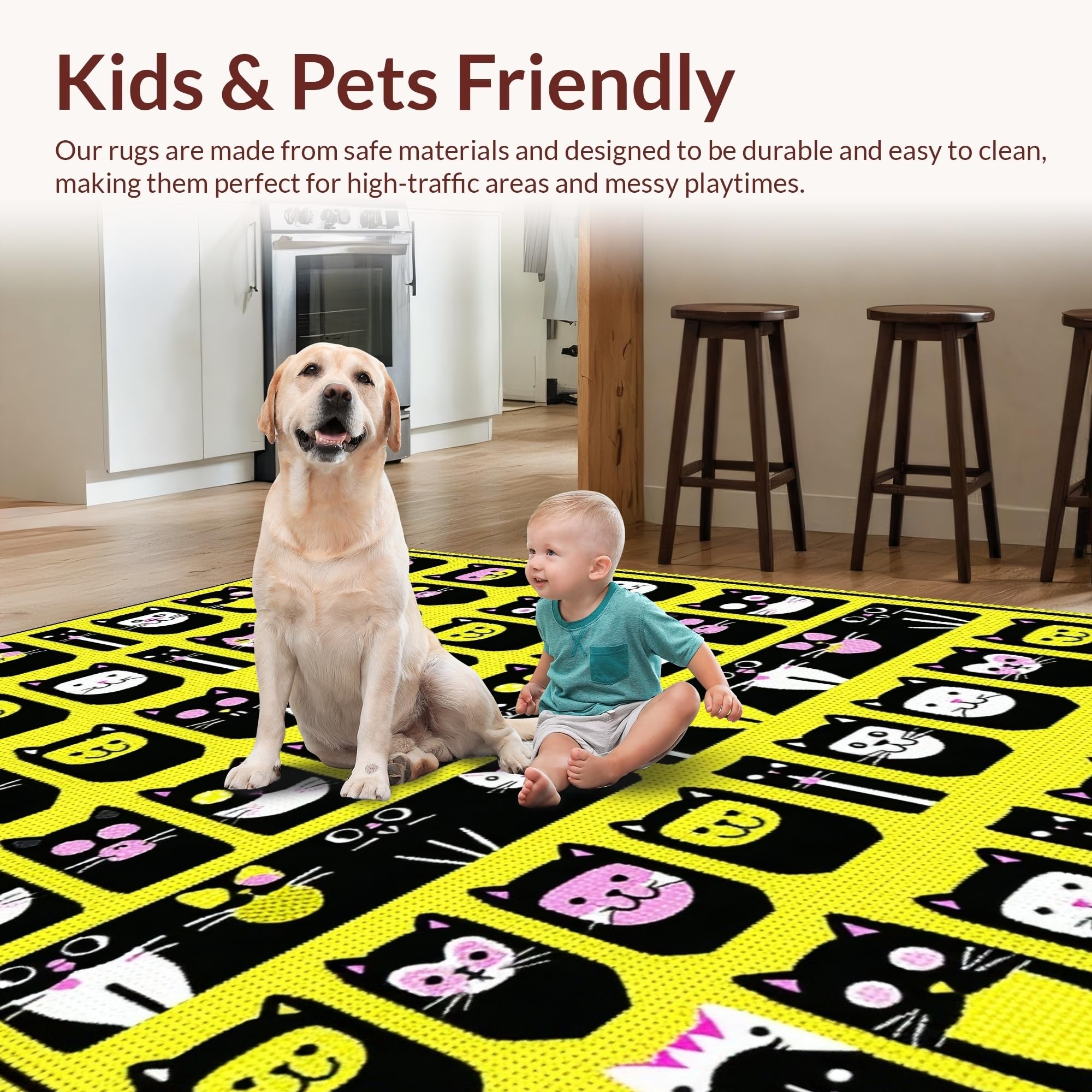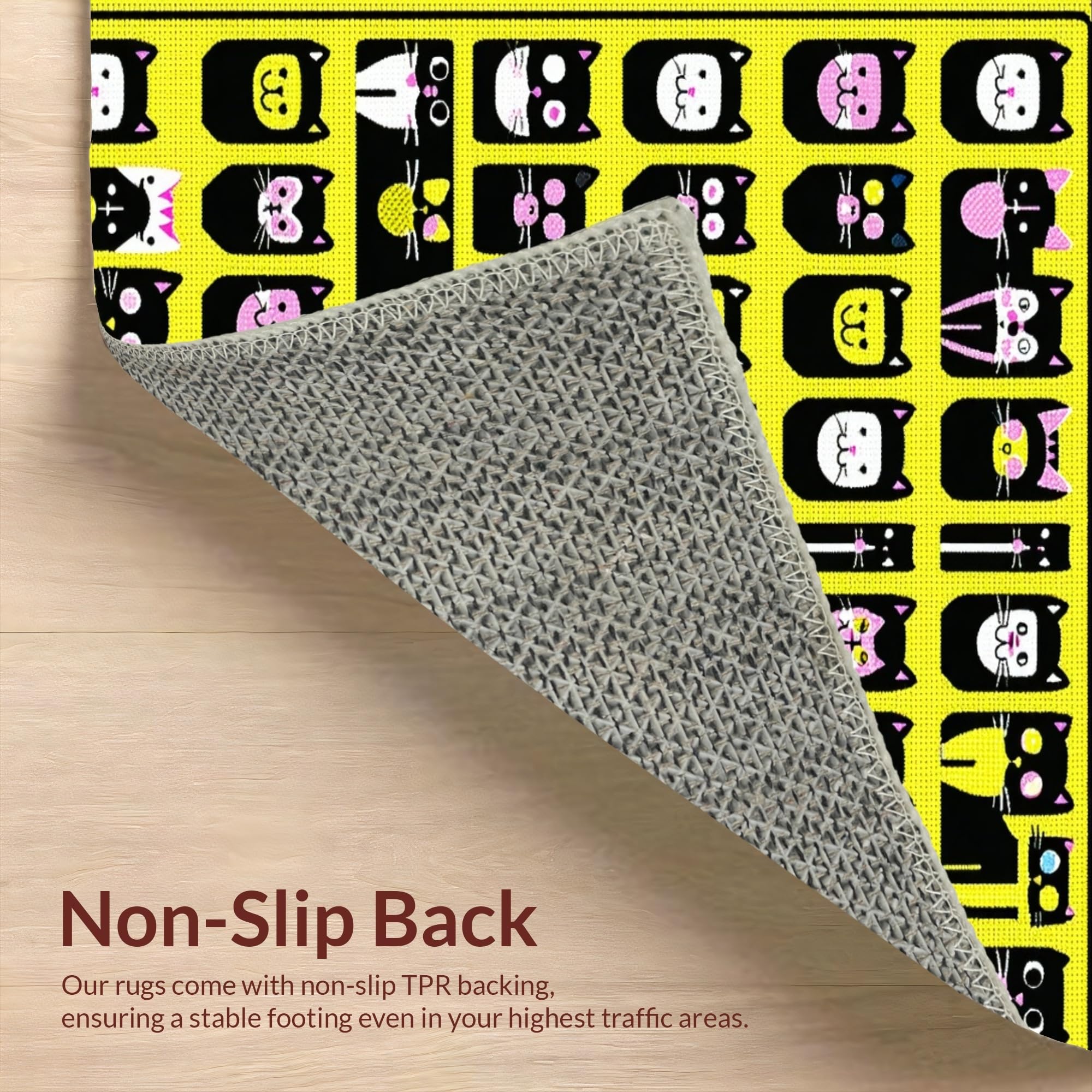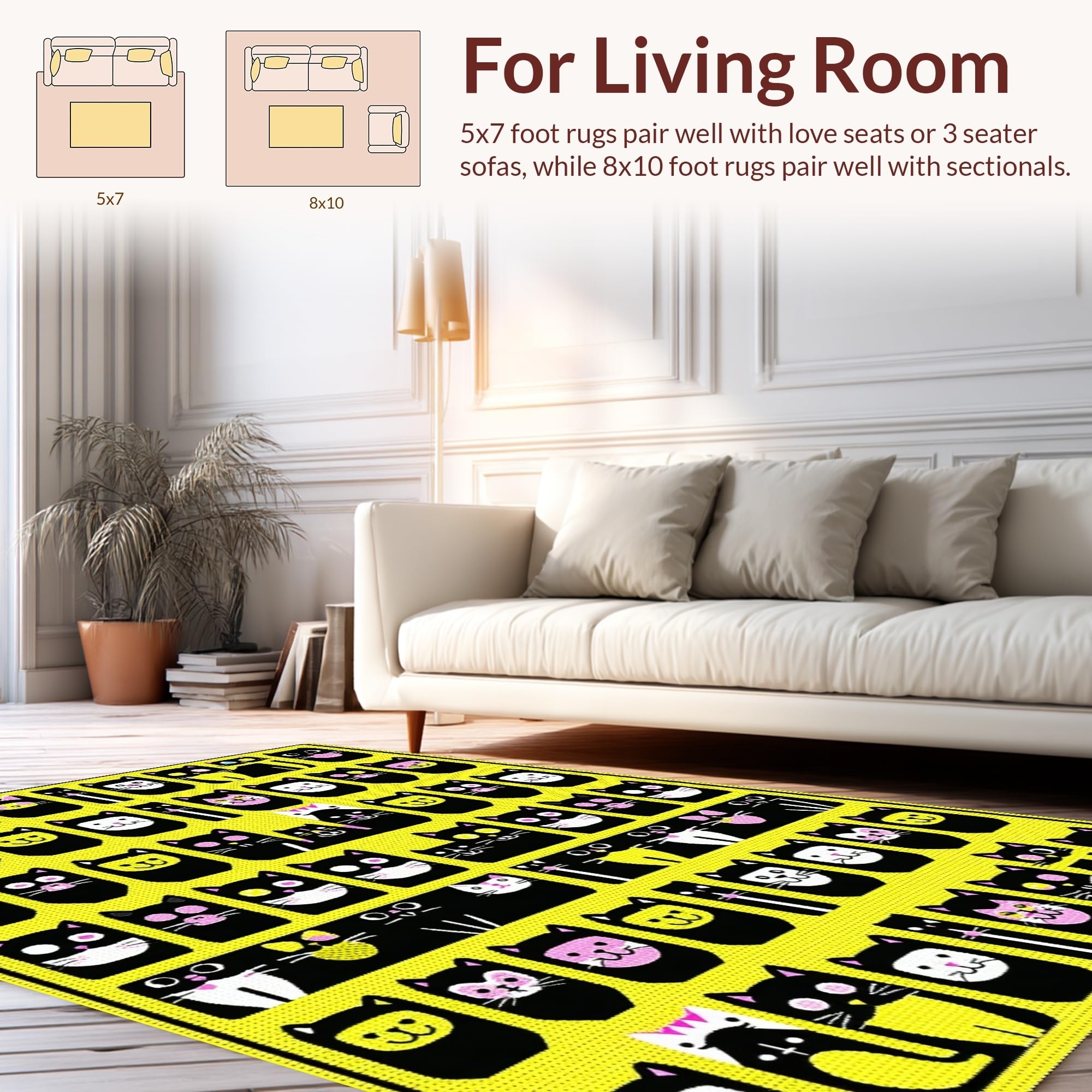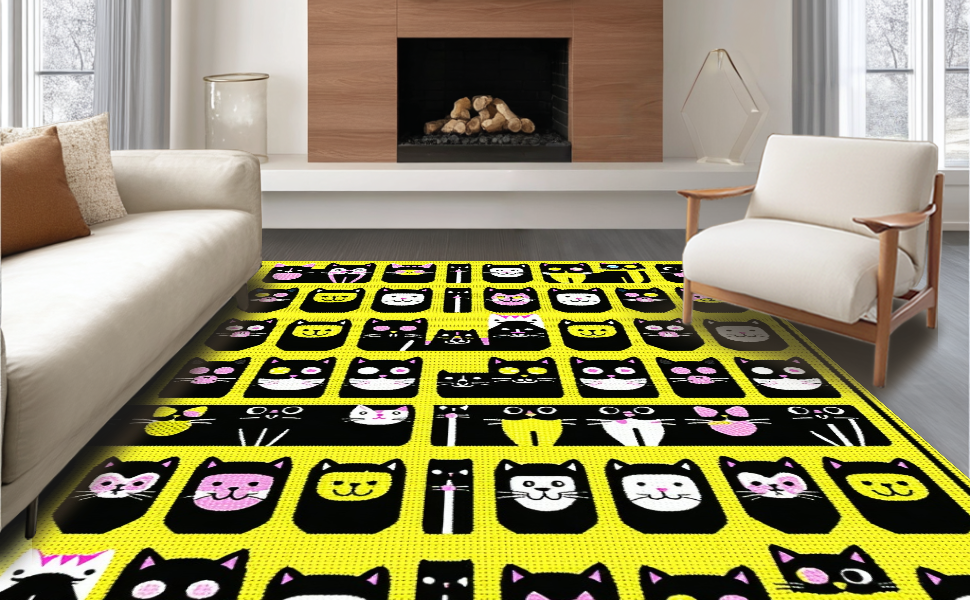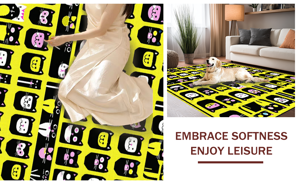Ultra Soft Area Rug, Non Slip, Stain Resistant, Washable Area Rugs for Living Room, Bedroom, Elegant Soft-Textured Kitty Illustration(Black) Overview: