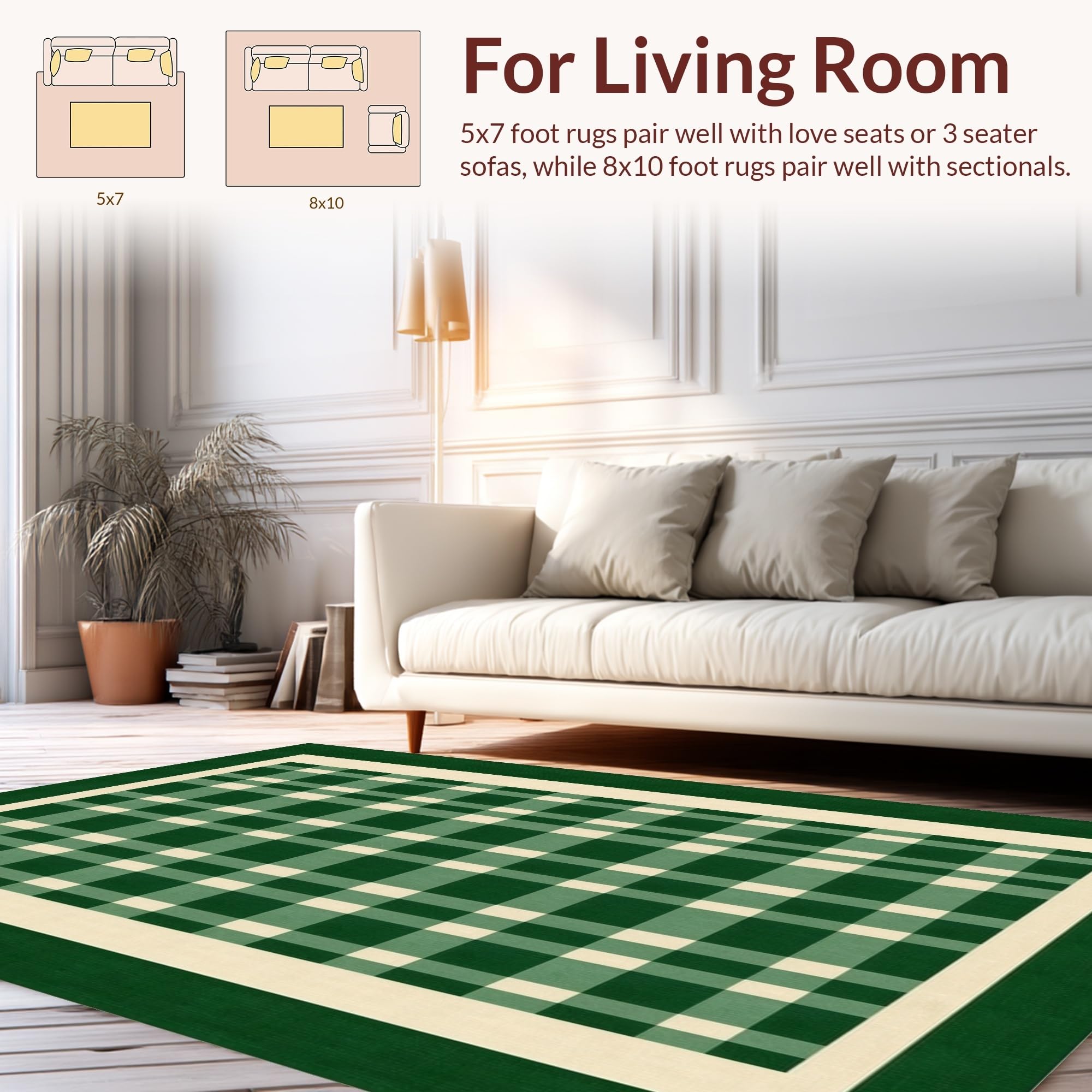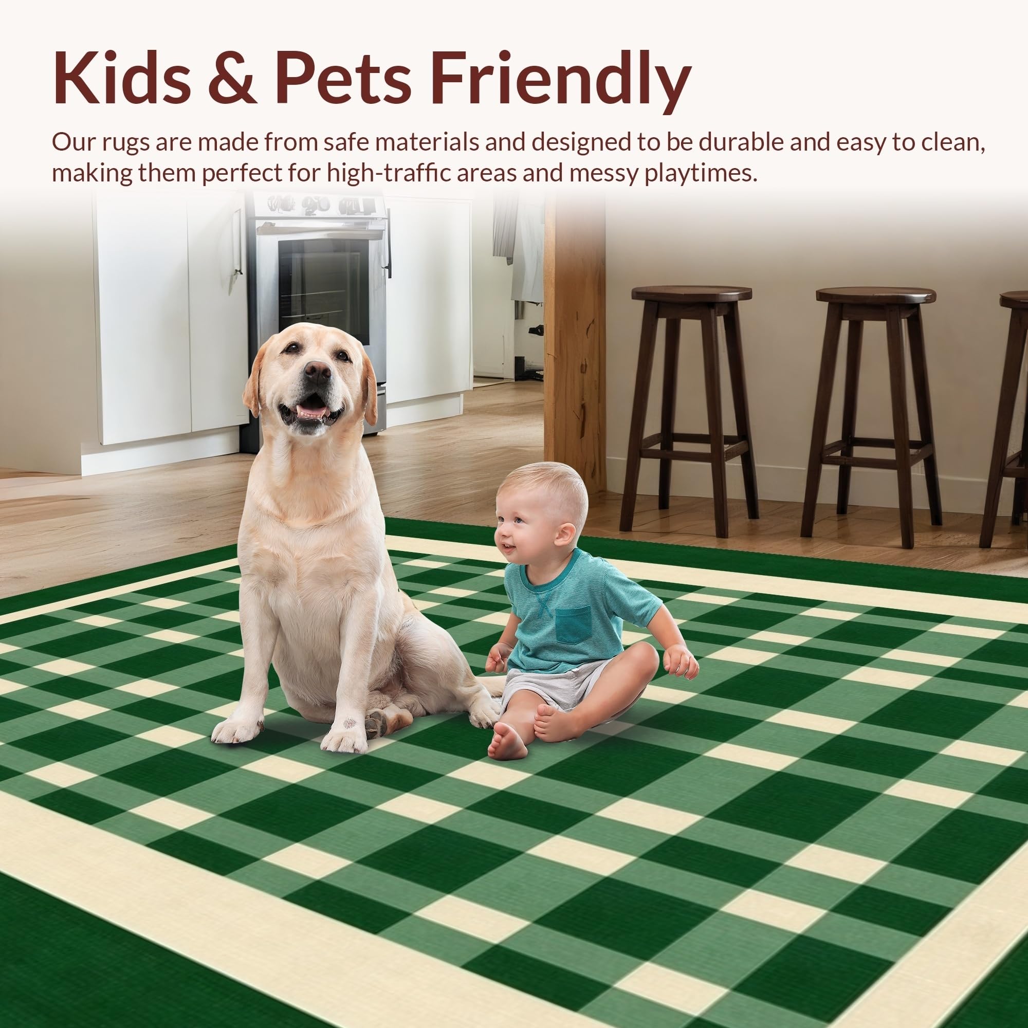 Ultra Soft Area Rug, Non Slip, Stain Resistant, Washable Area Rugs for Living Room, Bedroom, Elegant Soft Tiled Motif(Green) Overview: