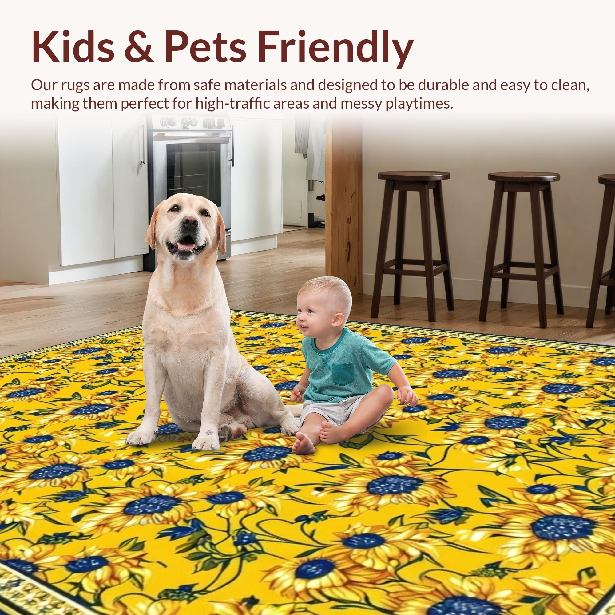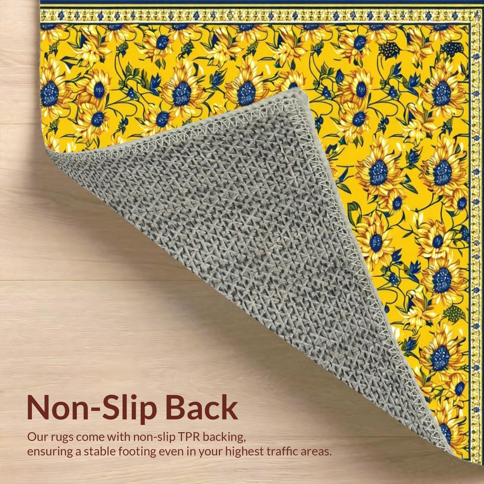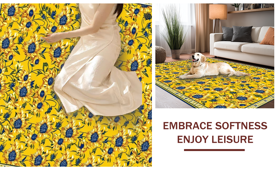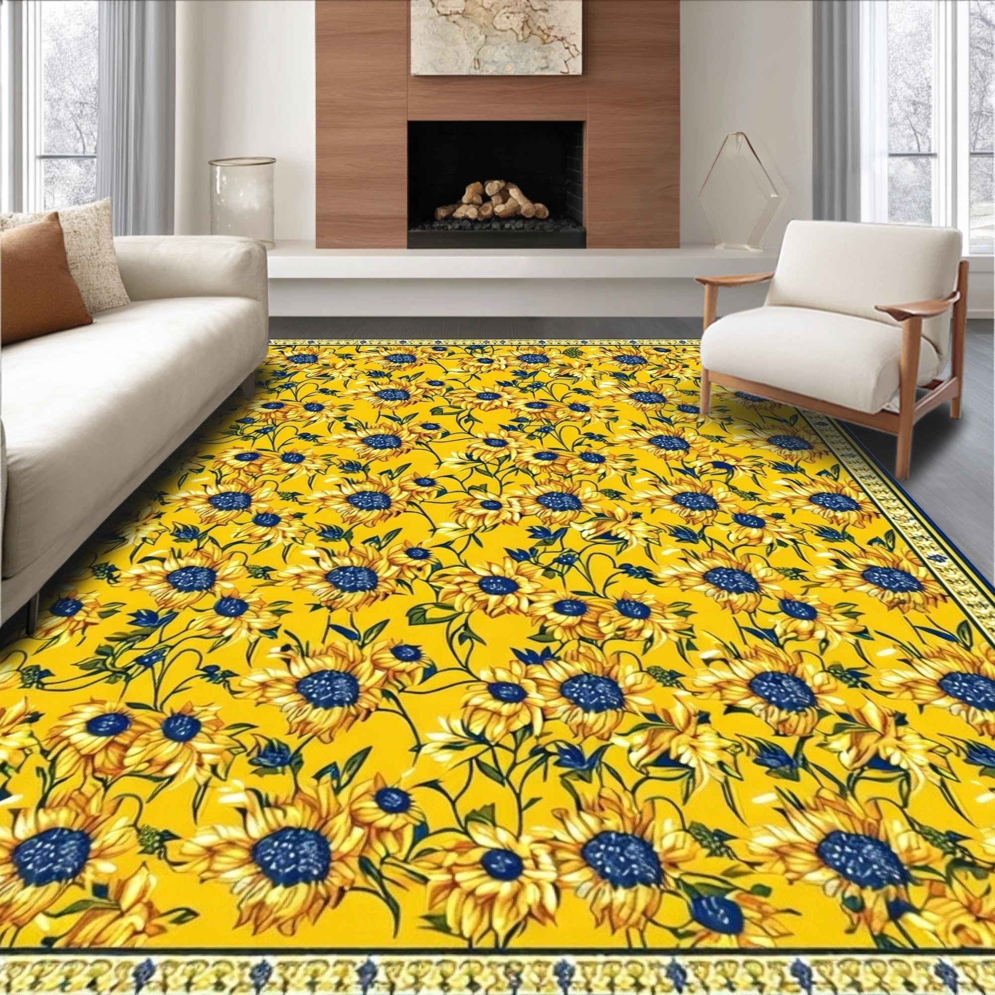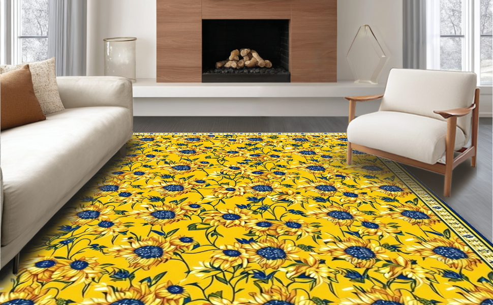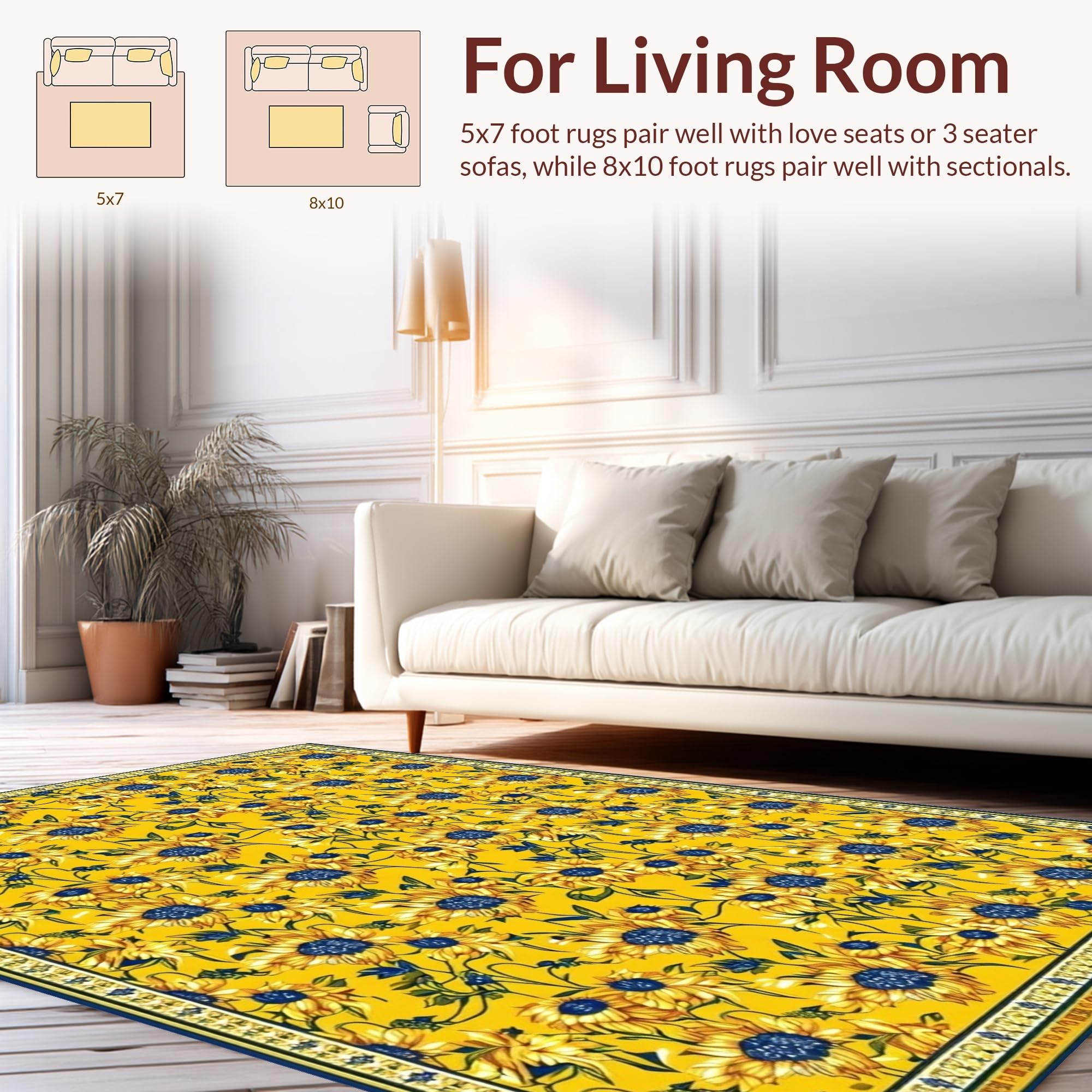 Ultra Soft Area Rug, Non Slip, Stain Resistant, Washable Area Rugs for Living Room, Bedroom, Elegant Soft Yellow Botanical Art(Yellow) Overview: