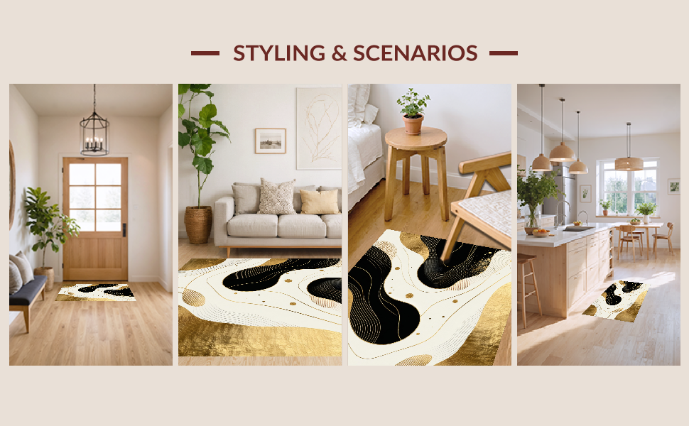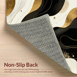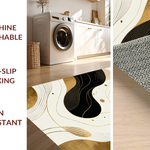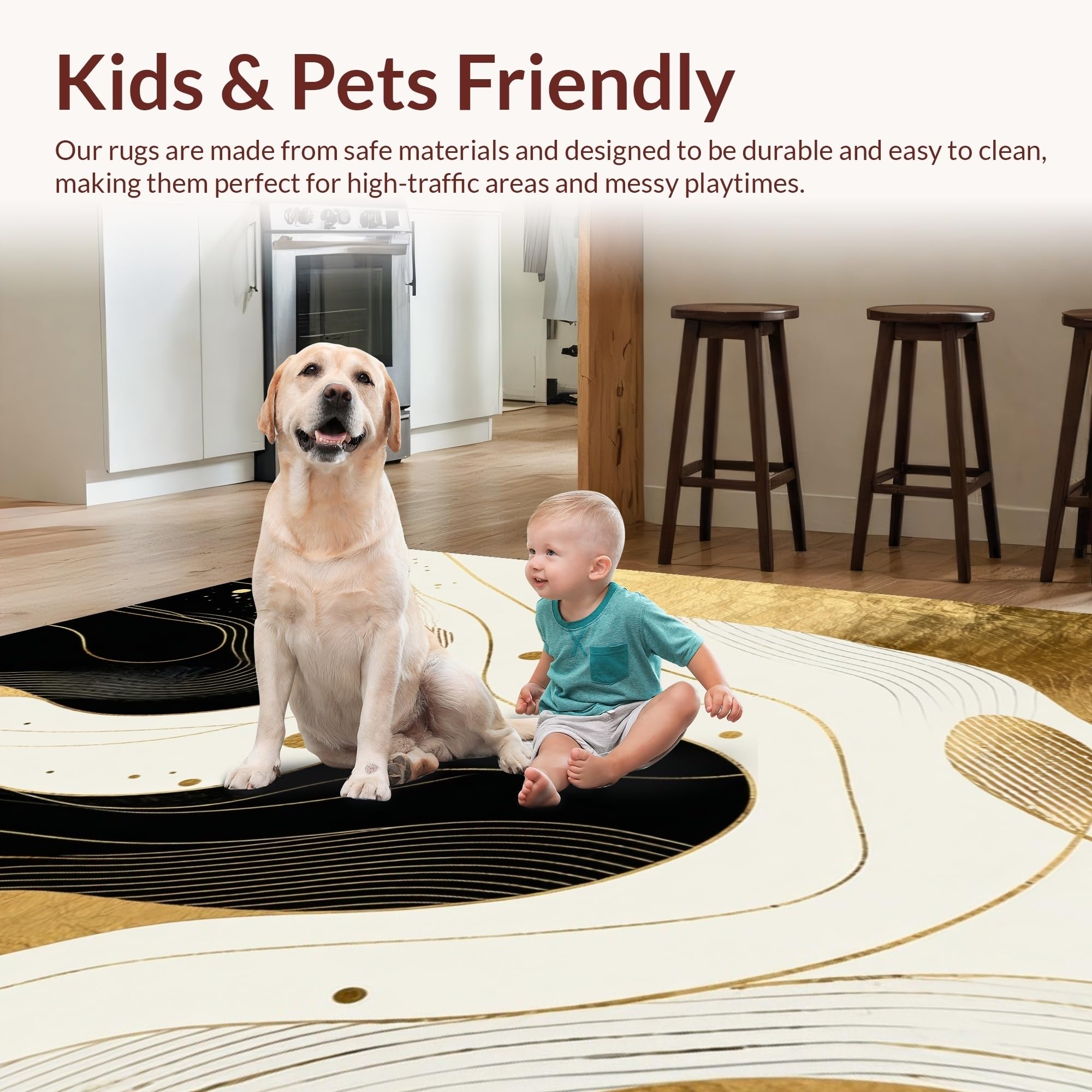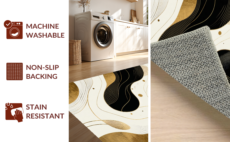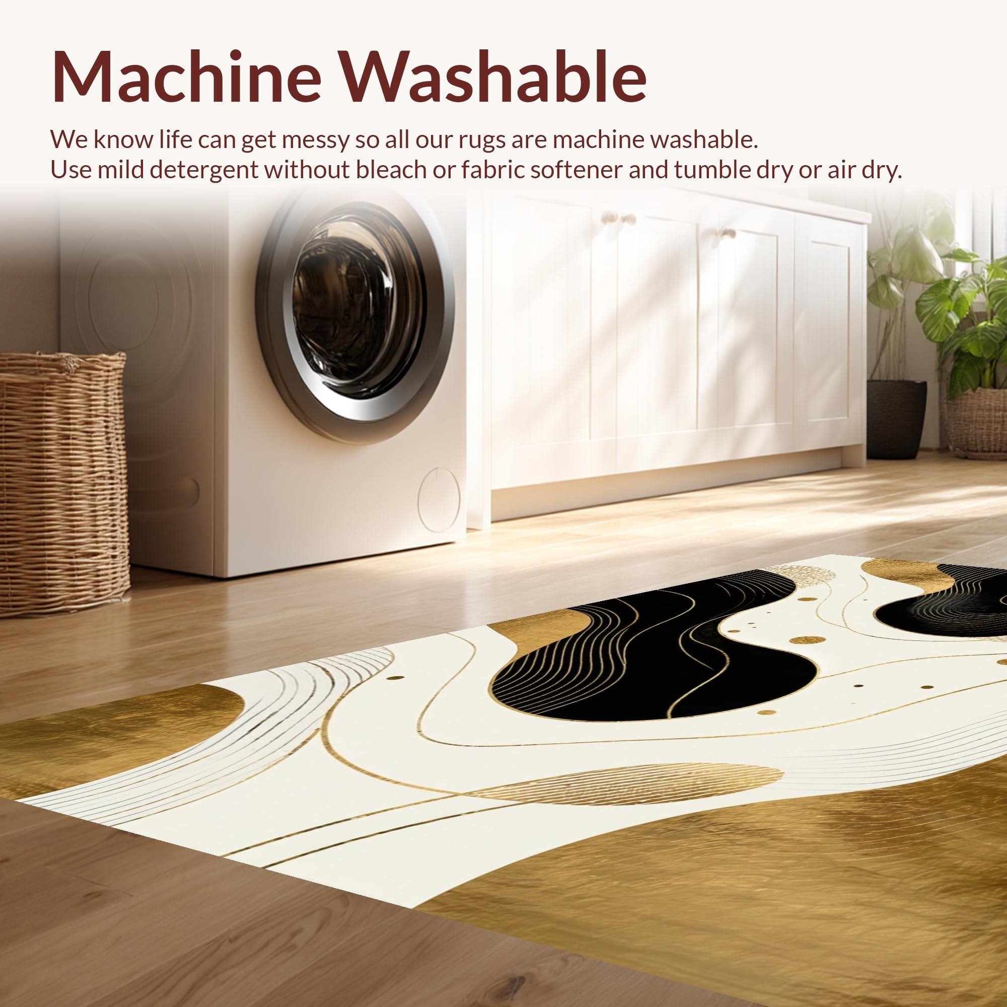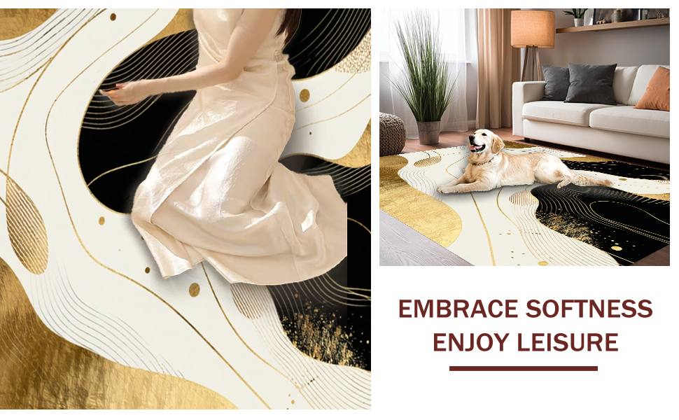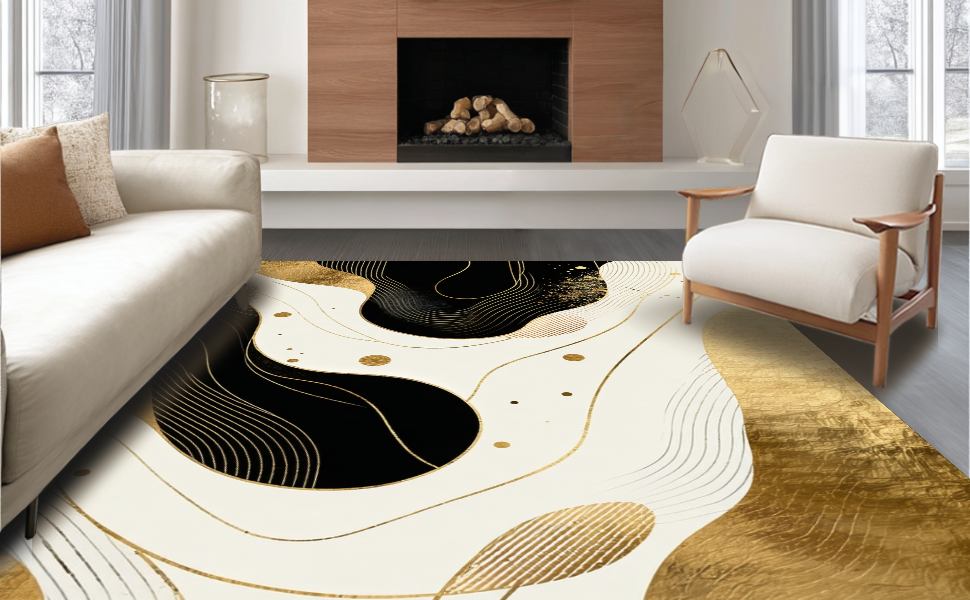 Ultra Soft Area Rug, Non Slip, Stain Resistant, Washable Area Rugs for Living Room, Bedroom, Elegant Softened Gold Linear Shapes(Black) Overview: