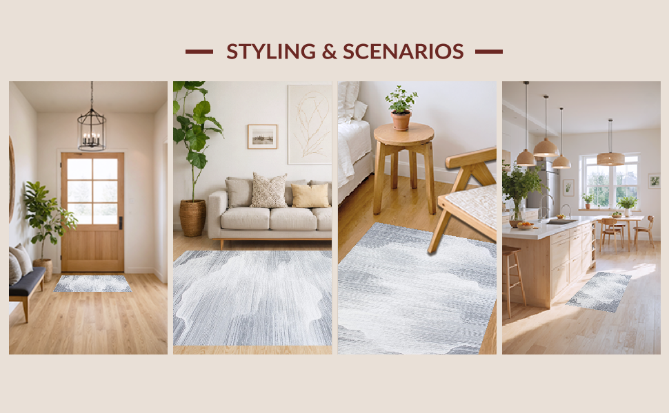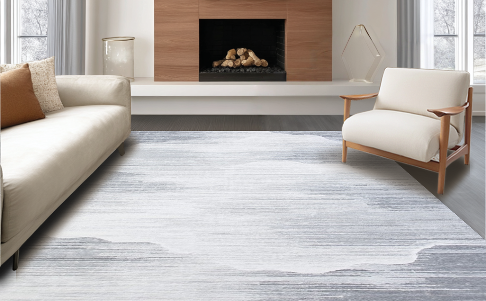 Ultra Soft Area Rug, Non Slip, Stain Resistant, Washable Area Rugs for Living Room, Bedroom, Elegant Solid Cloud Gray Texture(Gray) Overview: