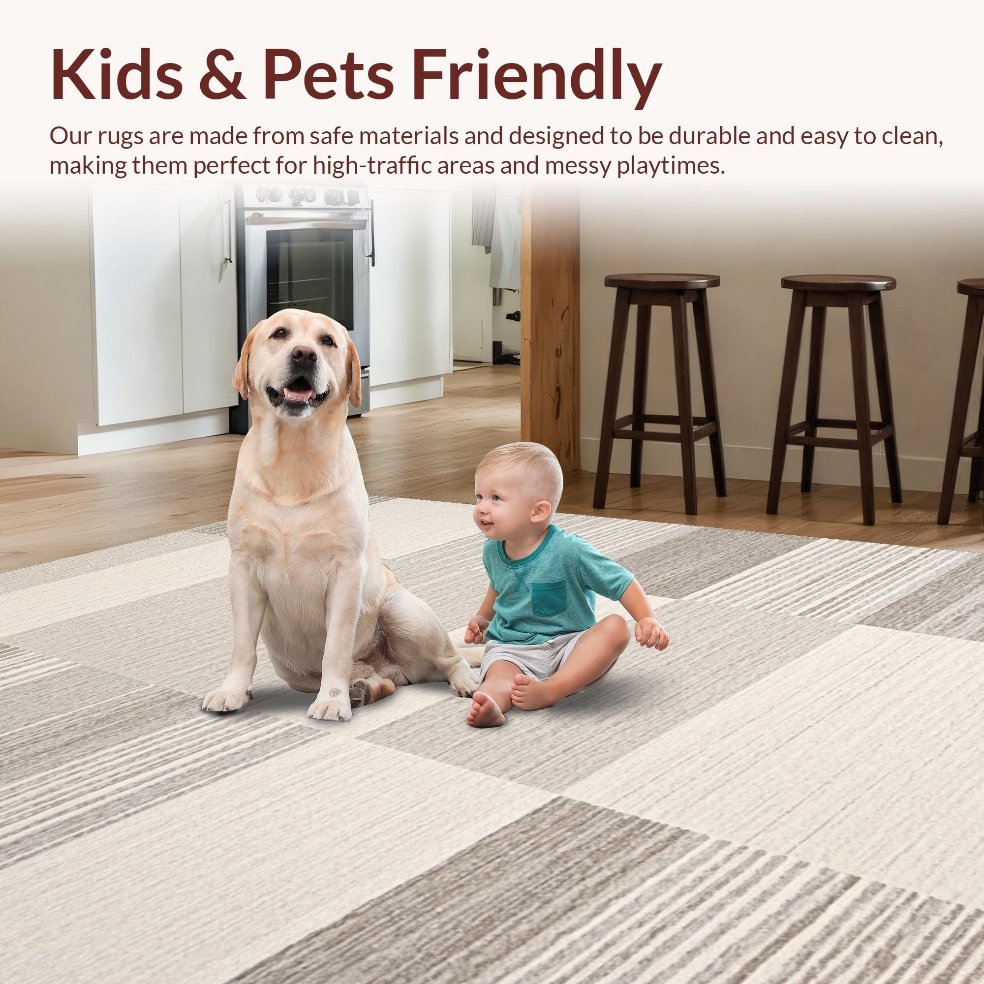 Ultra Soft Area Rug, Non Slip, Stain Resistant, Washable Area Rugs for Living Room, Bedroom, Elegant Solid Taupe Shag Texture(Beige) Overview: