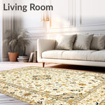 Ultra Soft Area Rug, Non Slip, Stain Resistant, Washable Area Rugs for Living Room, Bedroom, Elegant Speckled Beige Area with Intricate Oushak Floral(Beige) Overview: