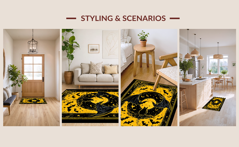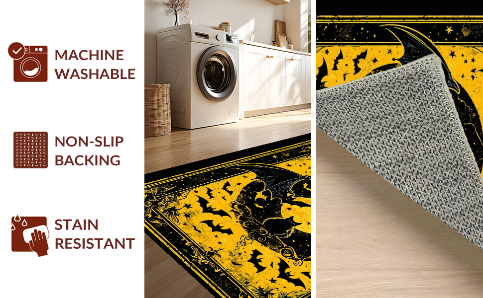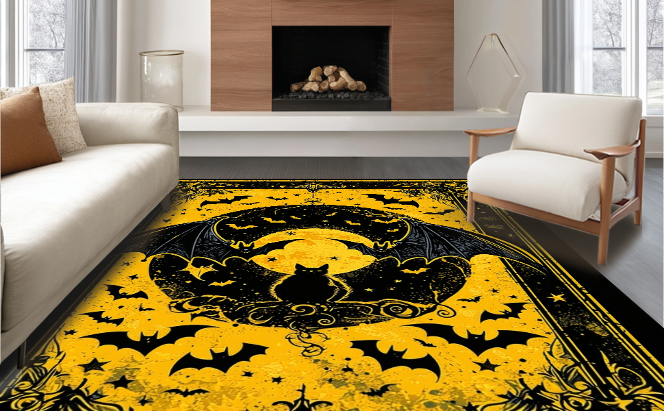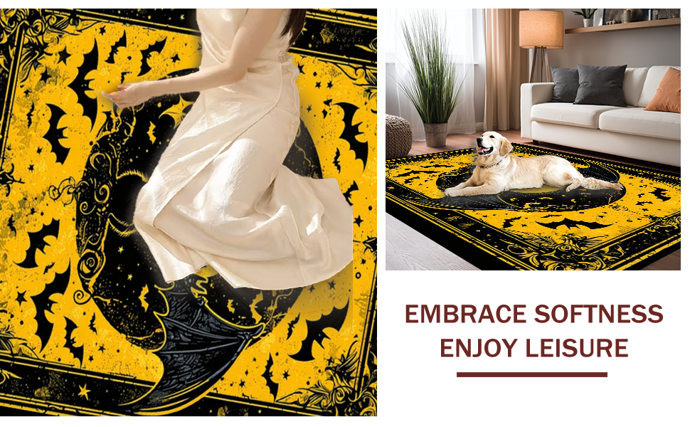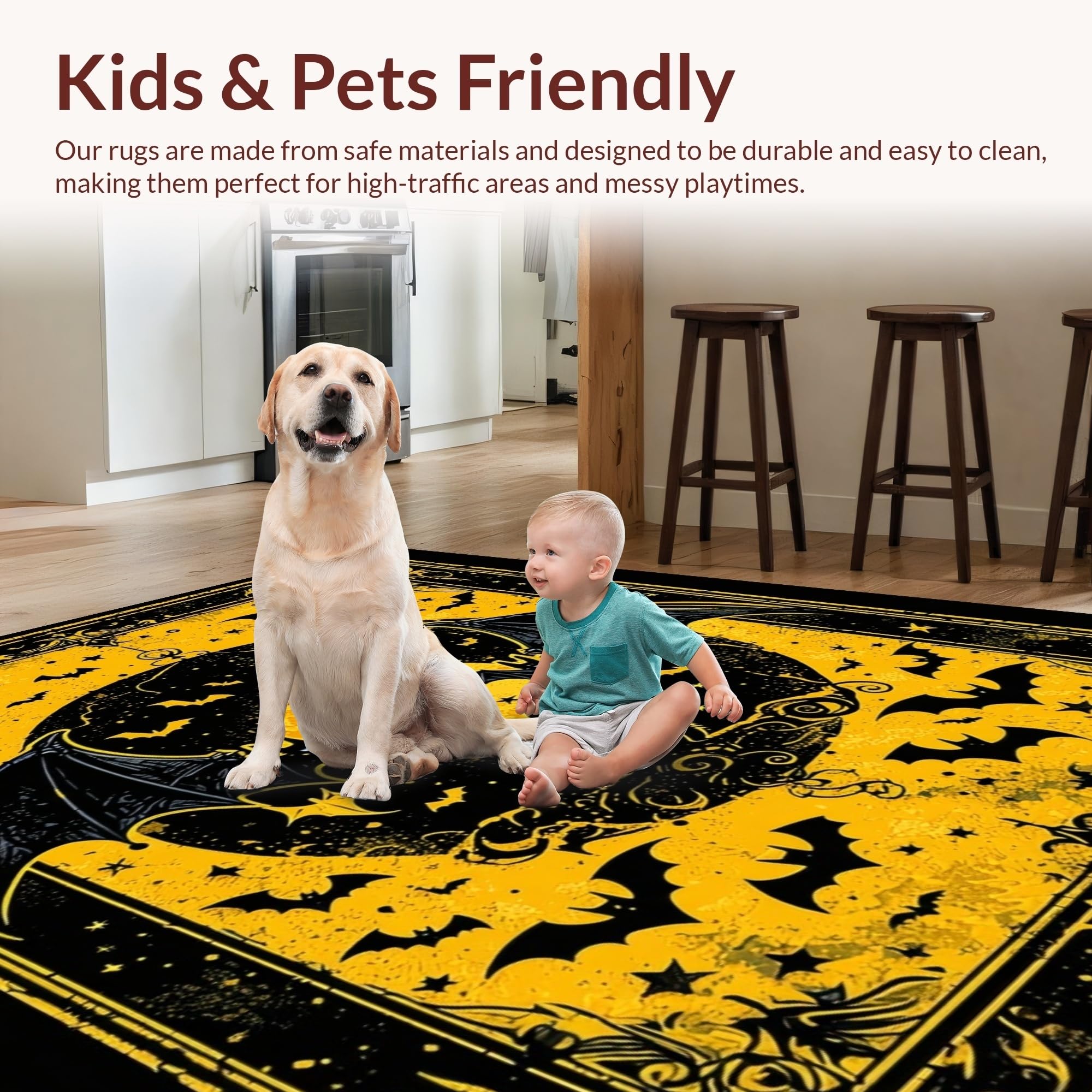 Ultra Soft Area Rug, Non Slip, Stain Resistant, Washable Area Rugs for Living Room, Bedroom, Elegant Spooky Night Design(Black) Overview: