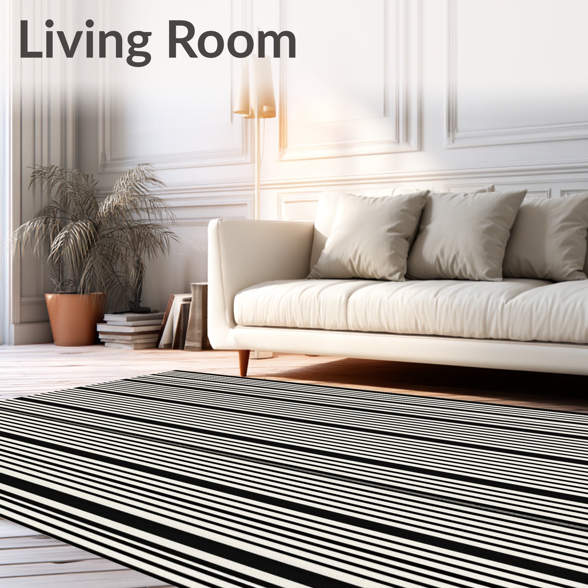 Ultra Soft Area Rug, Non Slip, Stain Resistant, Washable Area Rugs for Living Room, Bedroom, Elegant Striped Entrance(Black) Overview:
