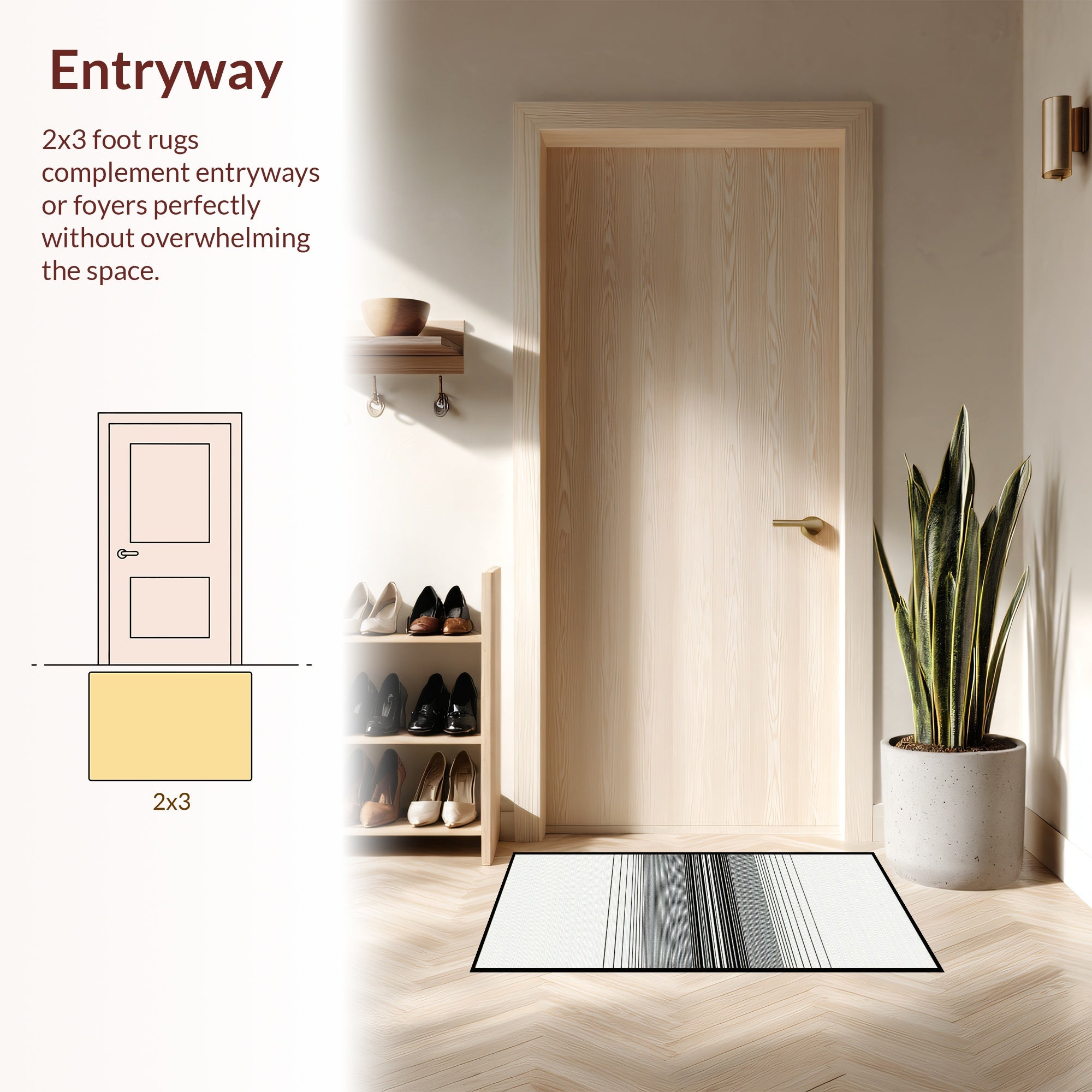 Ultra Soft Area Rug, Non Slip, Stain Resistant, Washable Area Rugs for Living Room, Bedroom, Elegant Striped Floor Mat for Modern Porches and Patios(Black) Overview:
