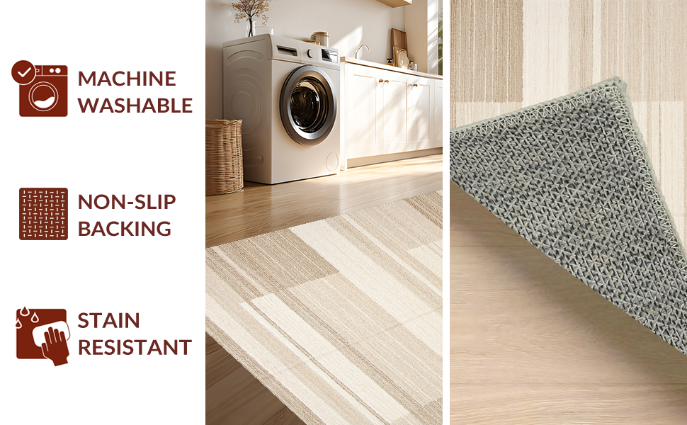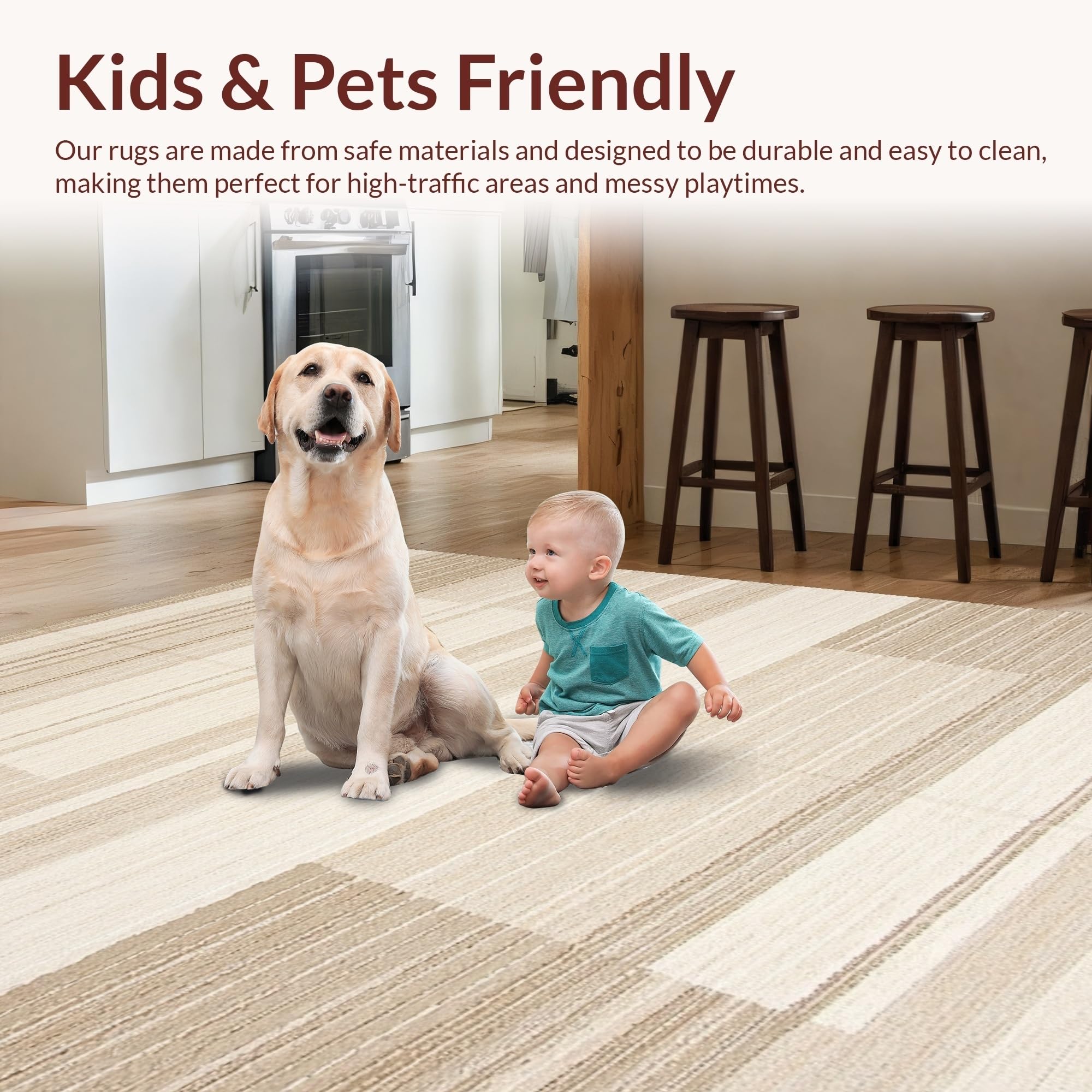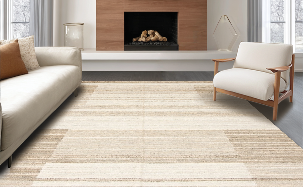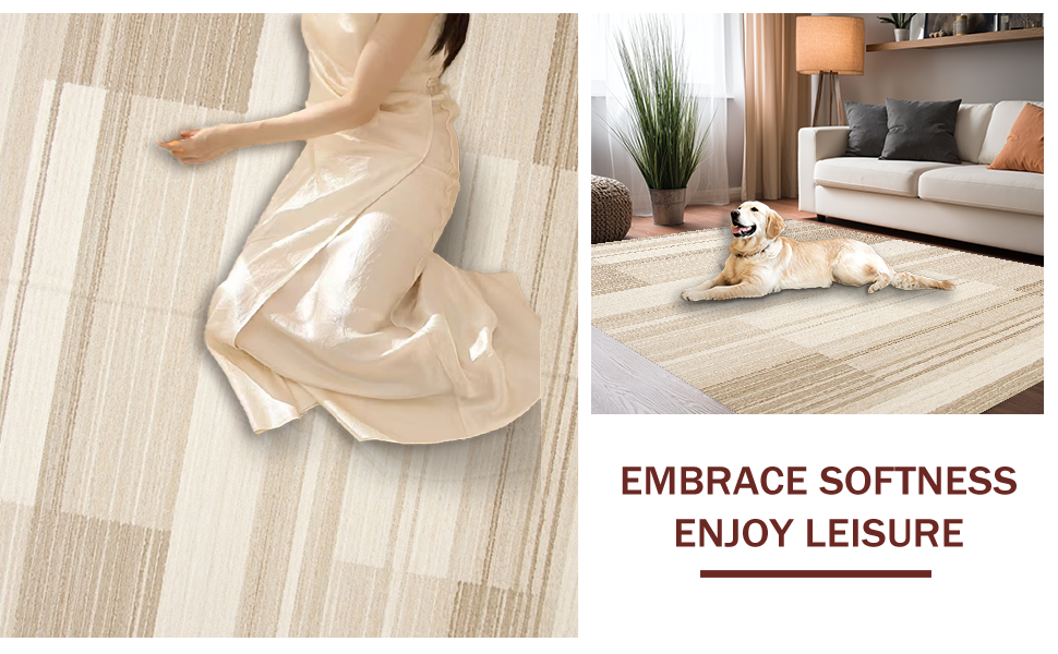 Ultra Soft Area Rug, Non Slip, Stain Resistant, Washable Area Rugs for Living Room, Bedroom, Elegant Striped Natural Aesthetic(Beige) Overview: