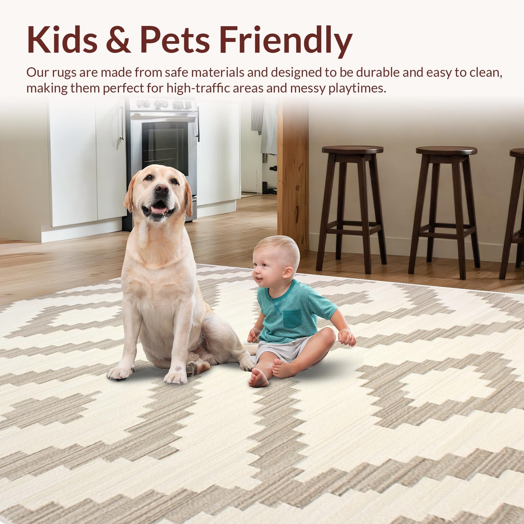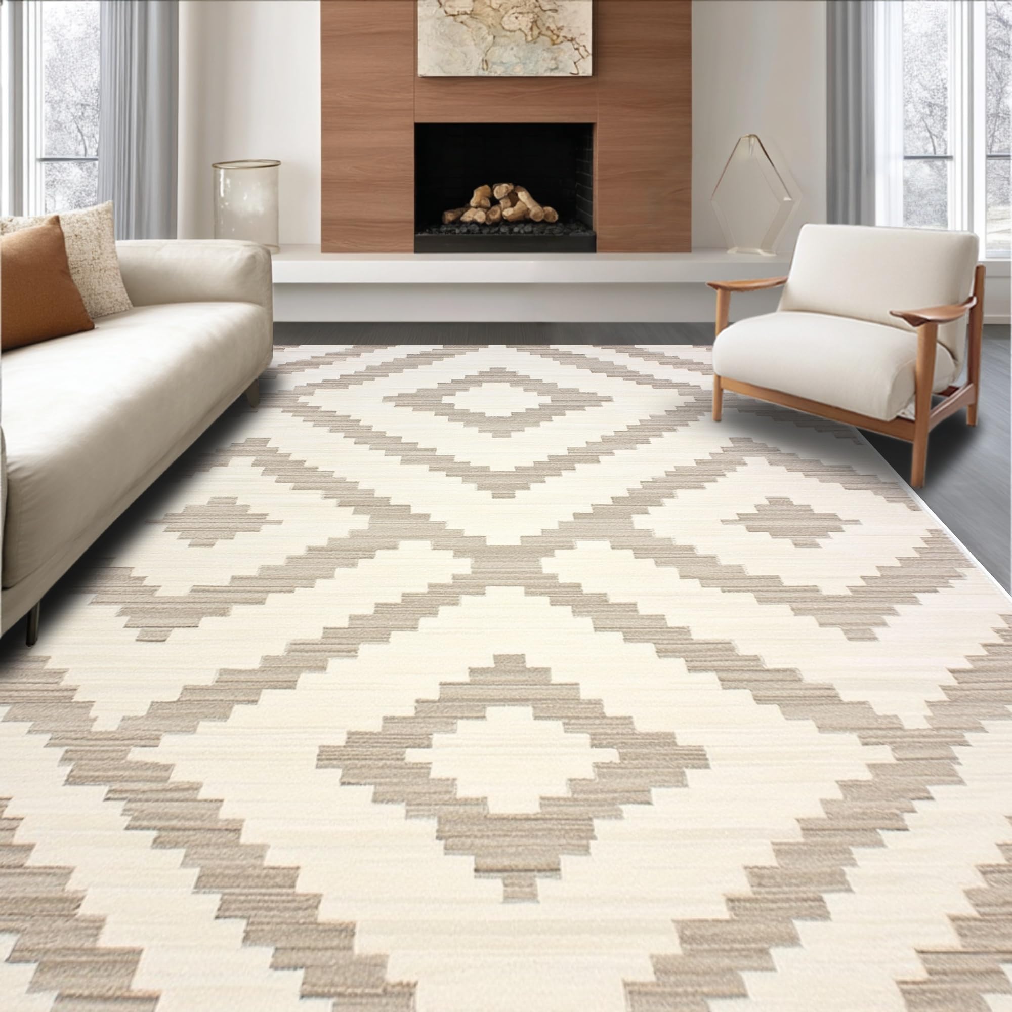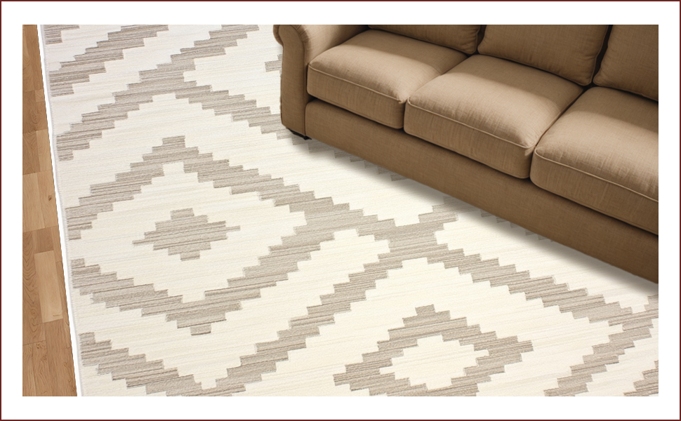 Ultra Soft Area Rug, Non Slip, Stain Resistant, Washable Area Rugs for Living Room, Bedroom, Elegant Striped Transitional Aesthetic(Beige) Overview: