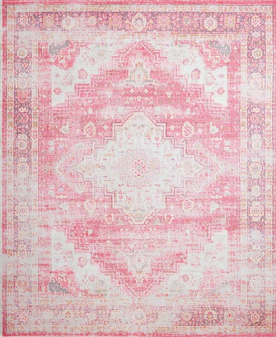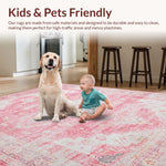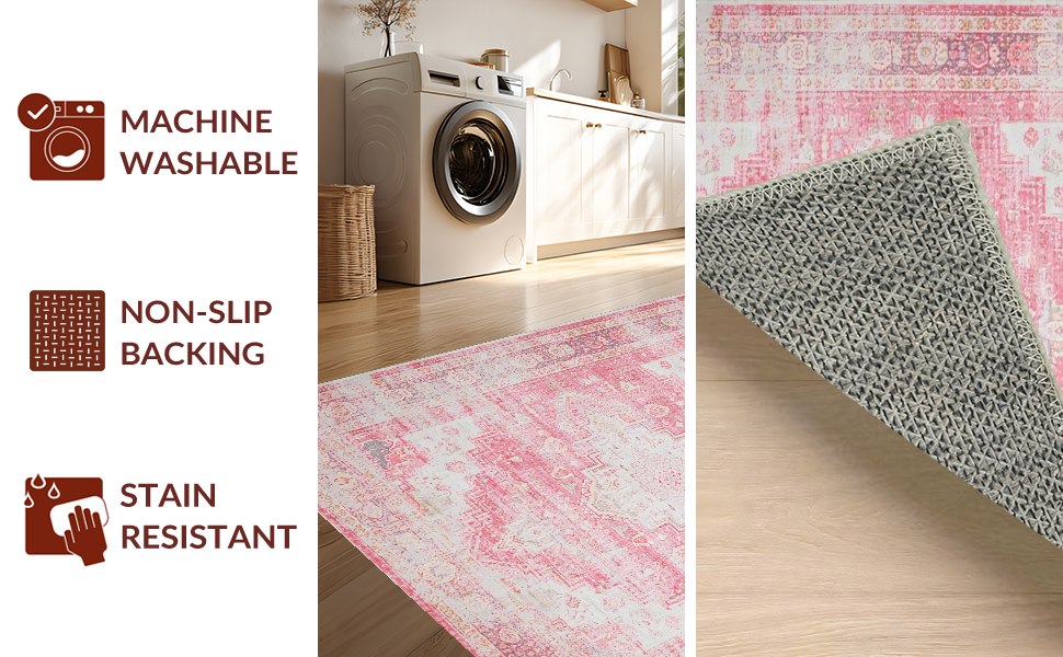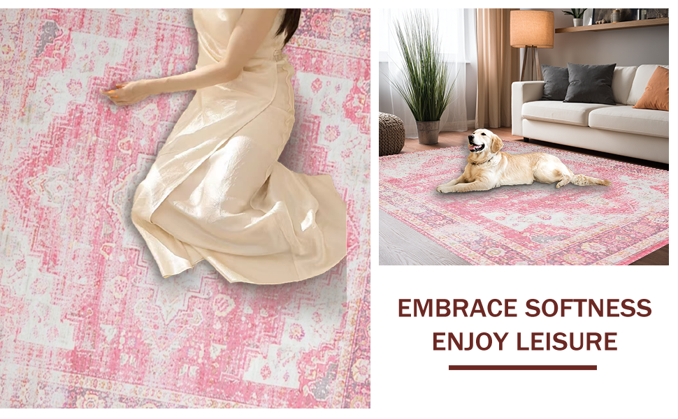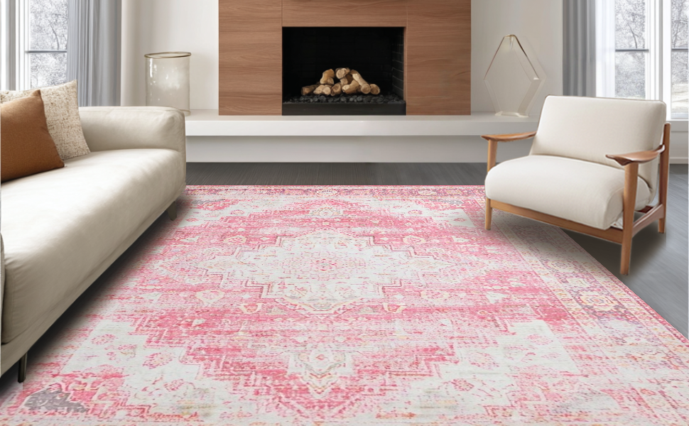Ultra Soft Area Rug, Non Slip, Stain Resistant, Washable Area Rugs for Living Room, Bedroom, Elegant Subdued Vintage Motif(Pink) Overview: