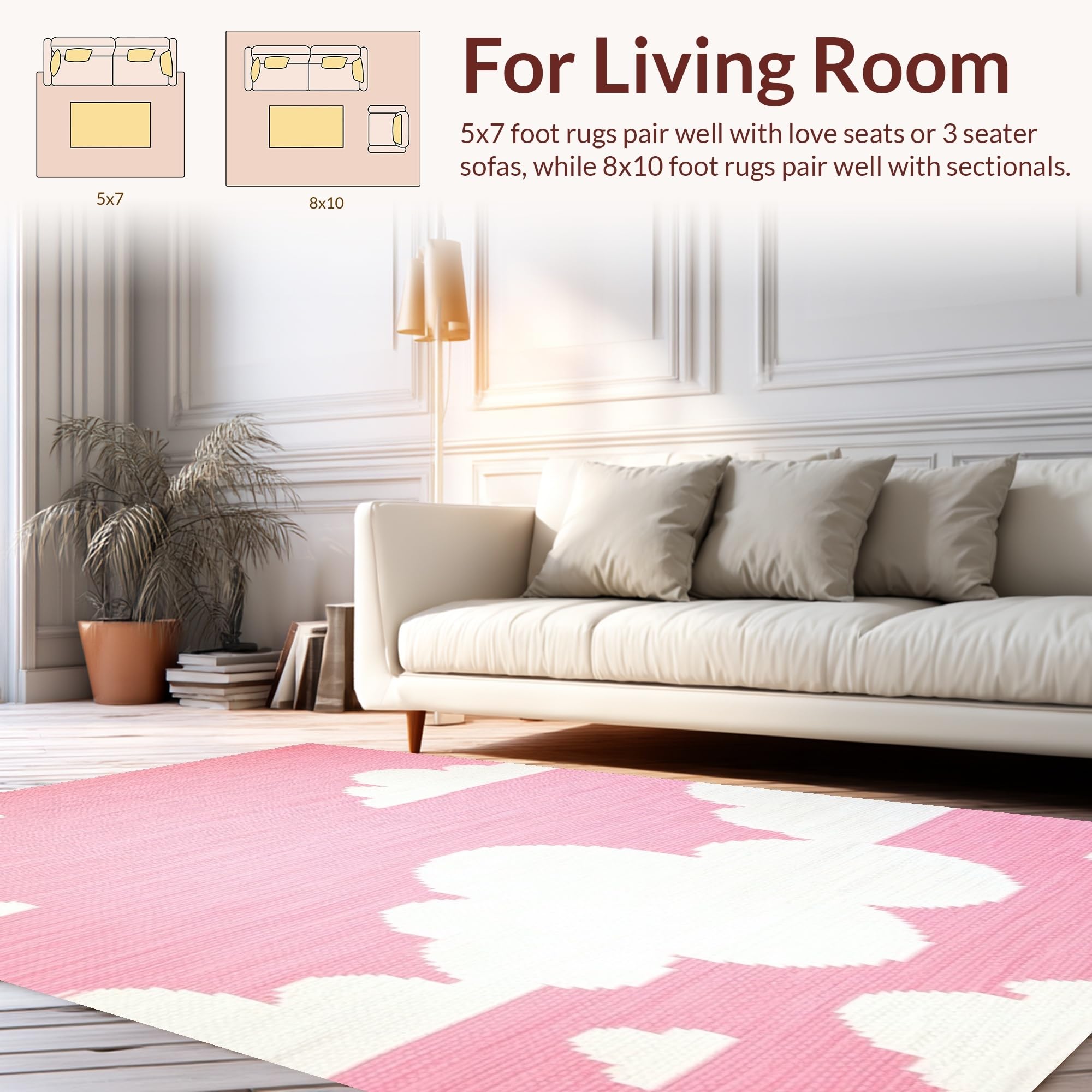 Ultra Soft Area Rug, Non Slip, Stain Resistant, Washable Area Rugs for Living Room, Bedroom, Elegant Subtle Earthy Tone Patterns(Pink) Overview: