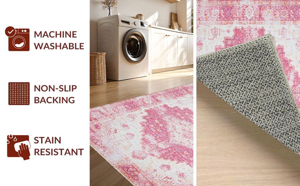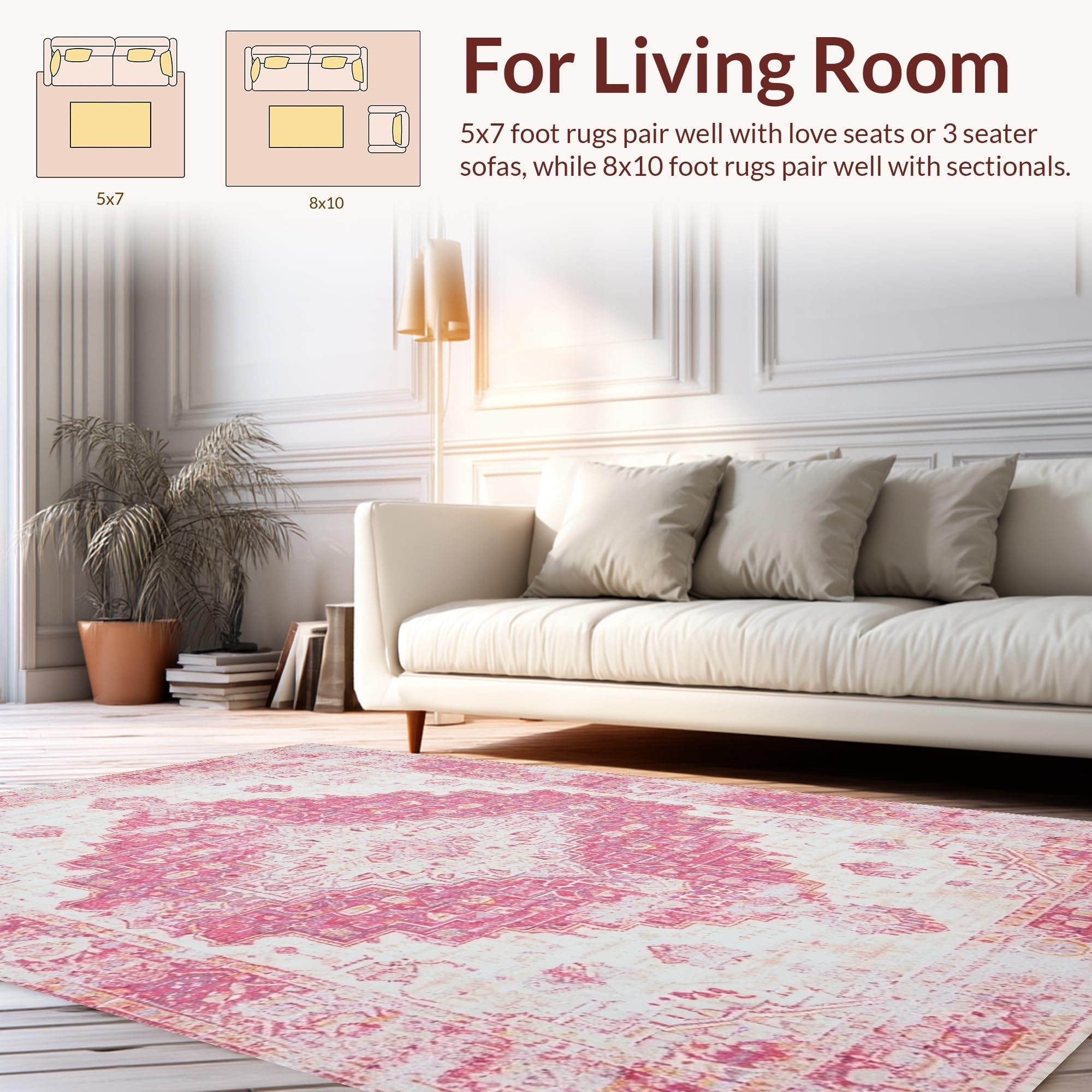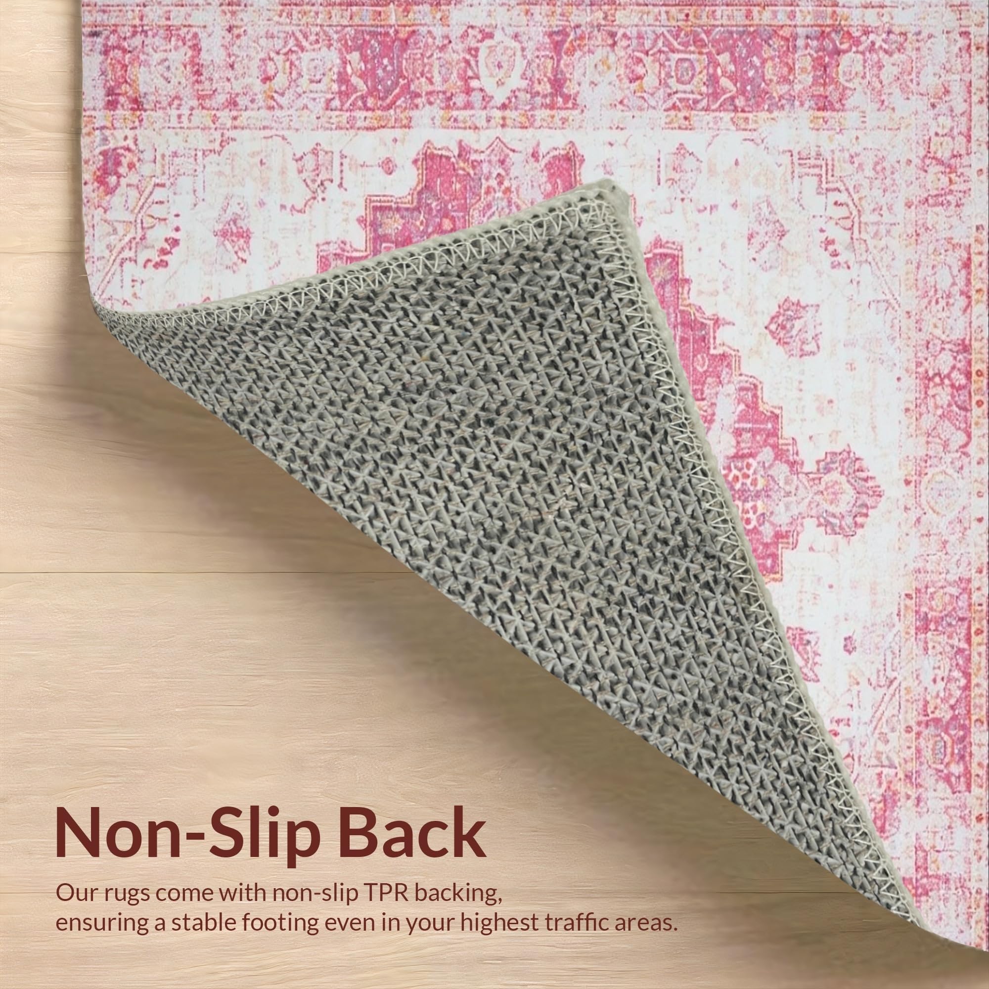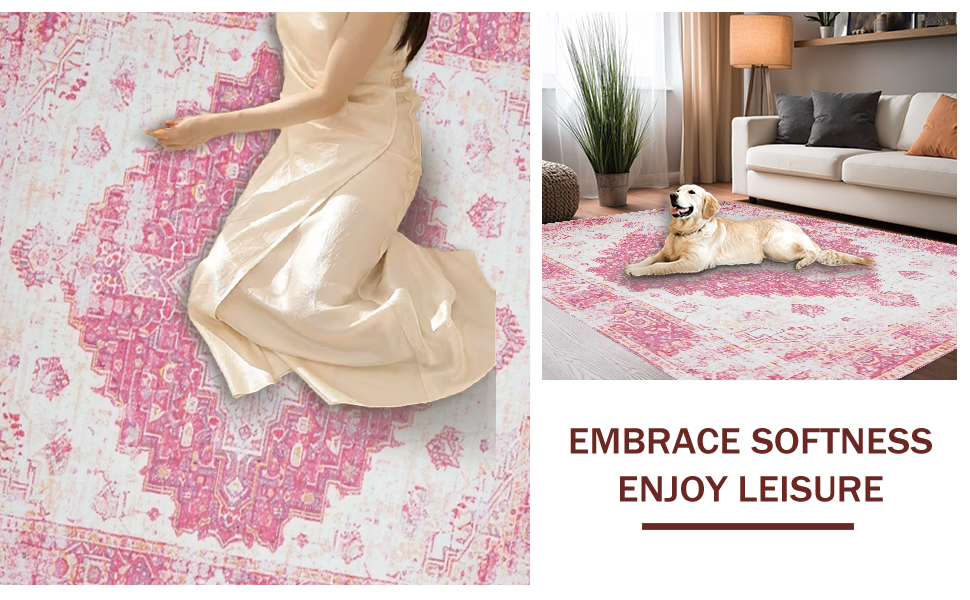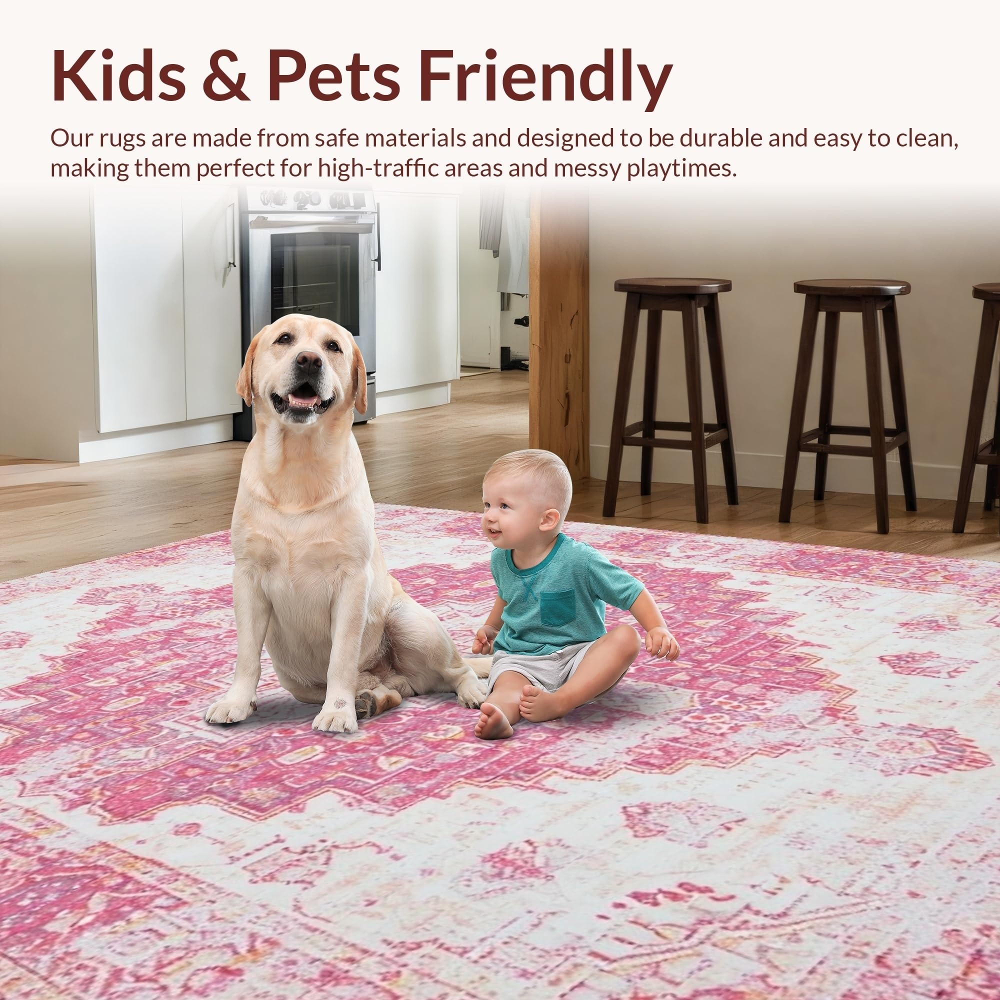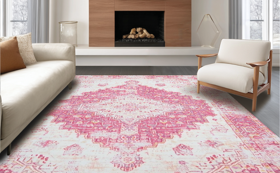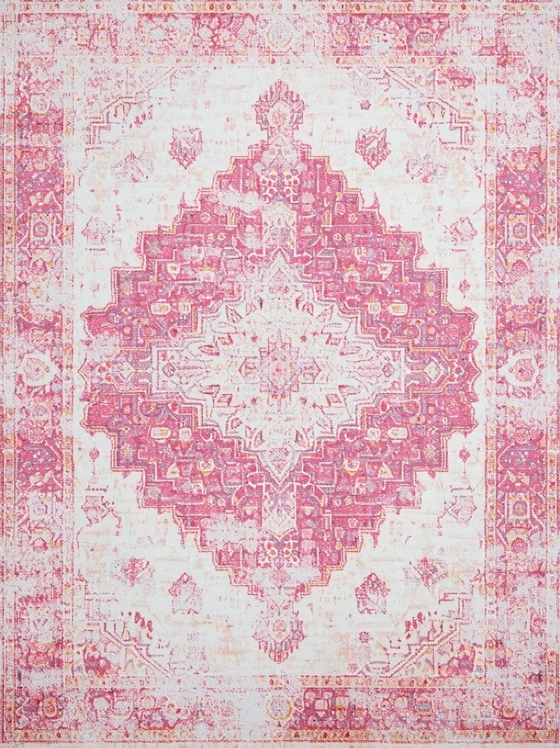 Ultra Soft Area Rug, Non Slip, Stain Resistant, Washable Area Rugs for Living Room, Bedroom, Elegant Subtle Ogee Design(Pink) Overview: