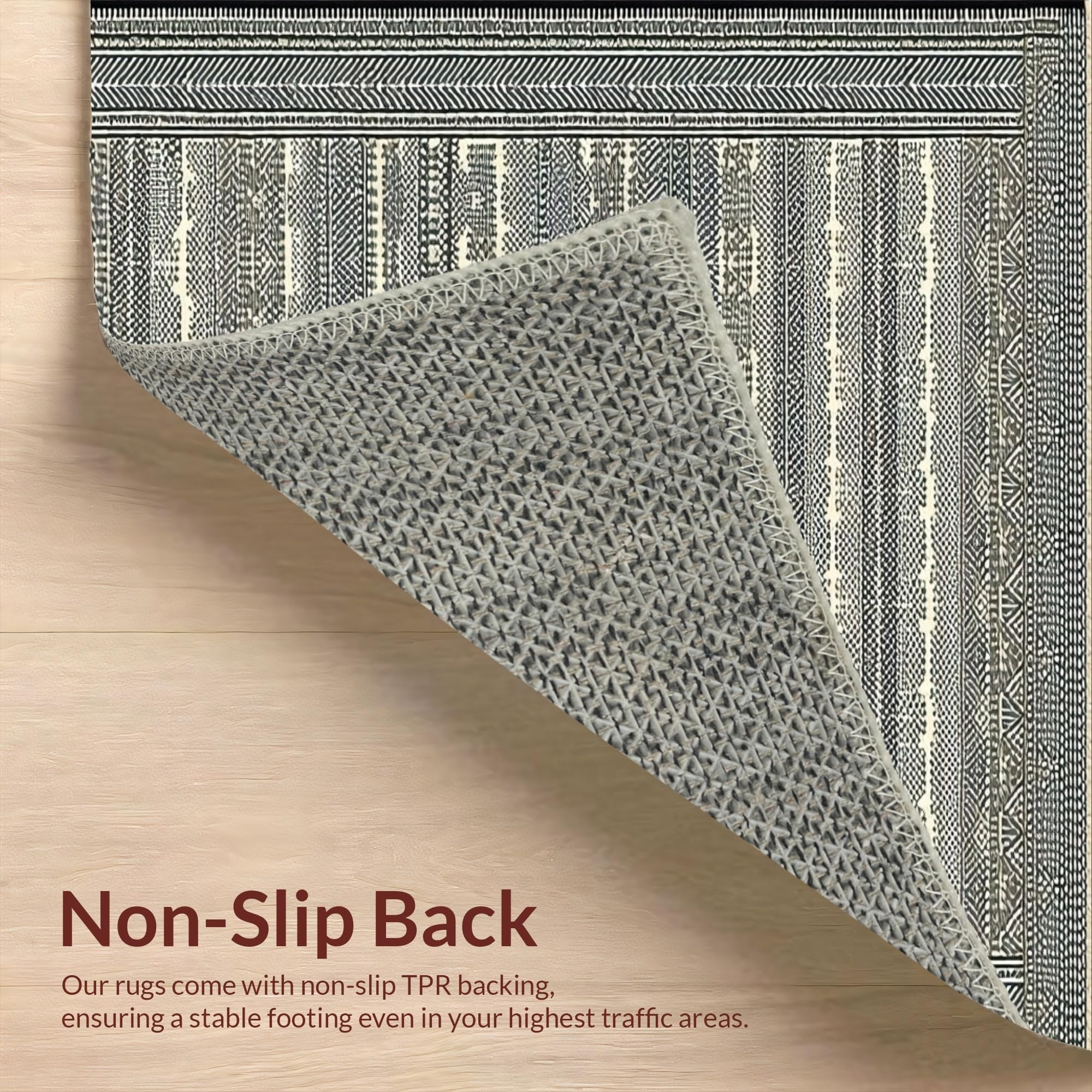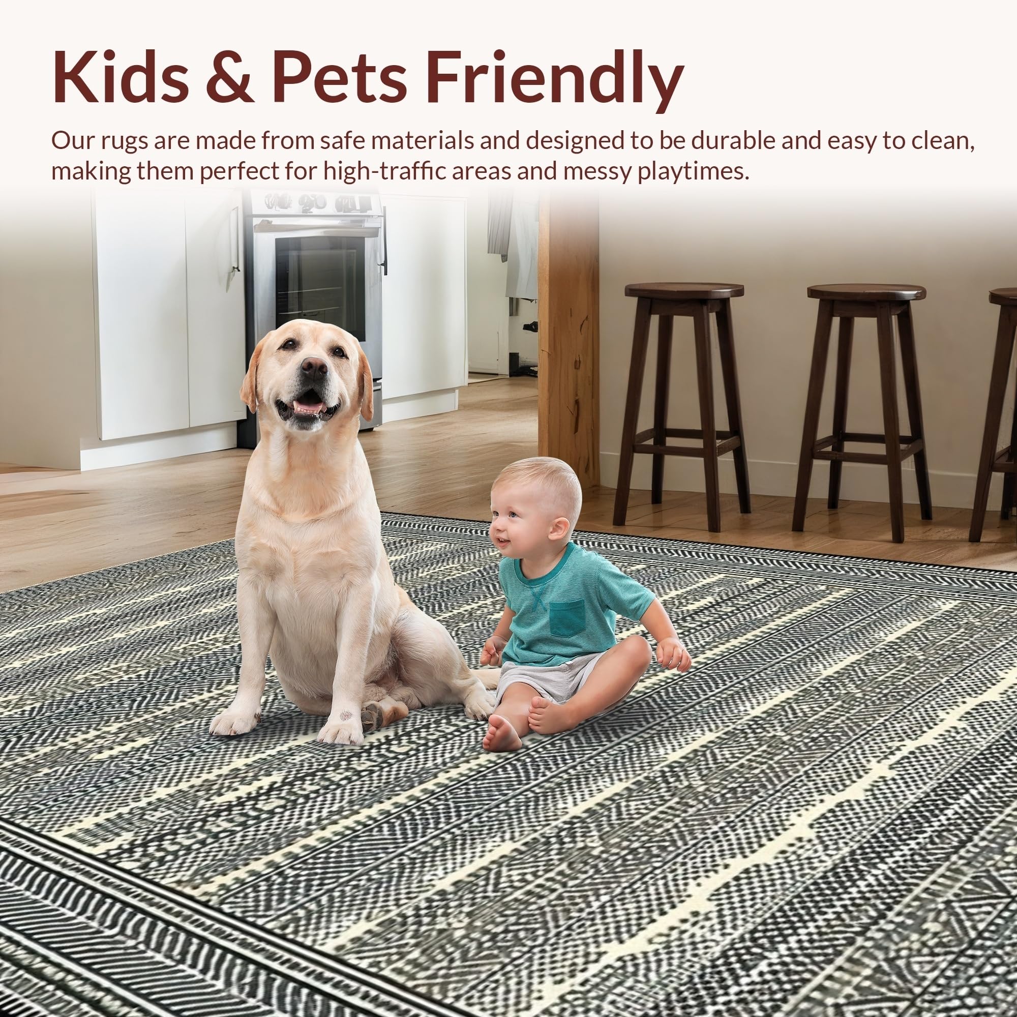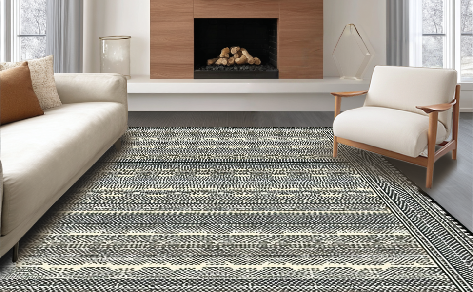 Ultra Soft Area Rug, Non Slip, Stain Resistant, Washable Area Rugs for Living Room, Bedroom, Elegant Subtle Ogee Style(Black) Overview: