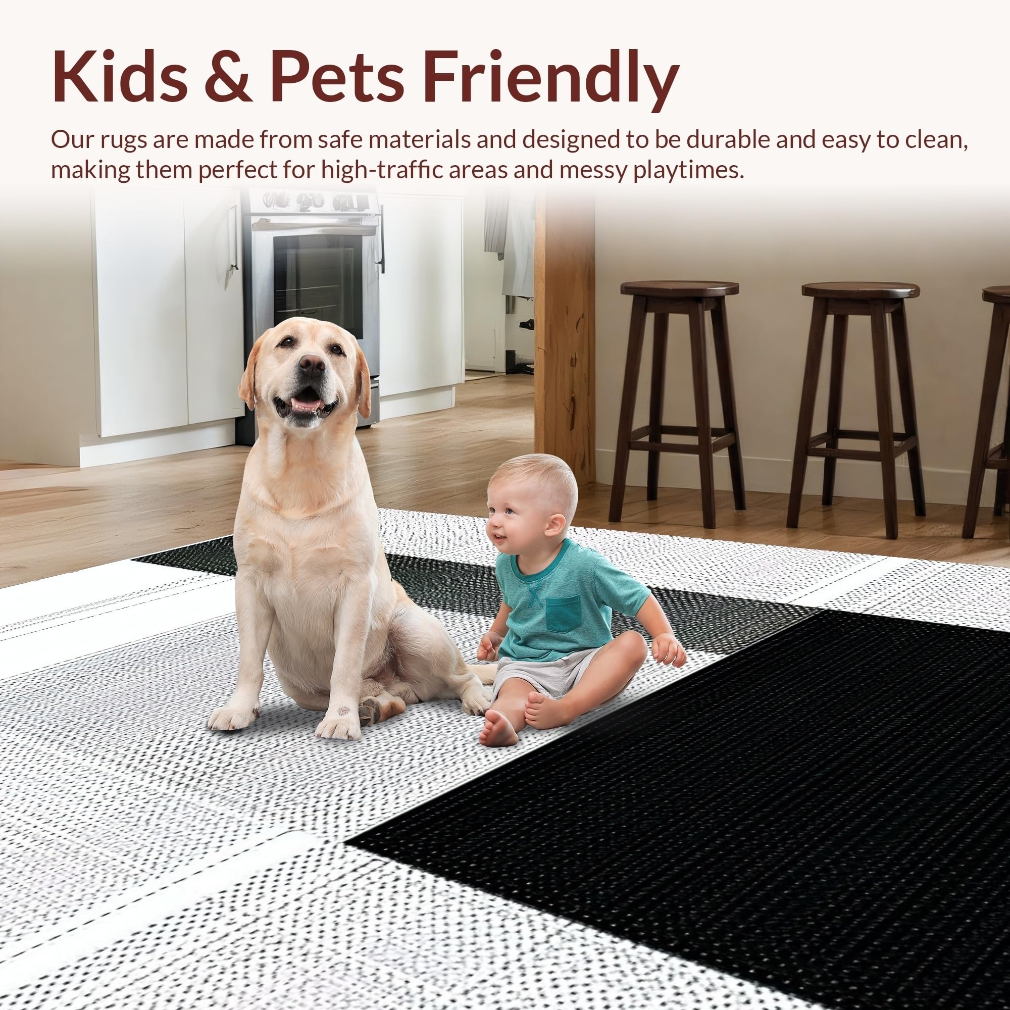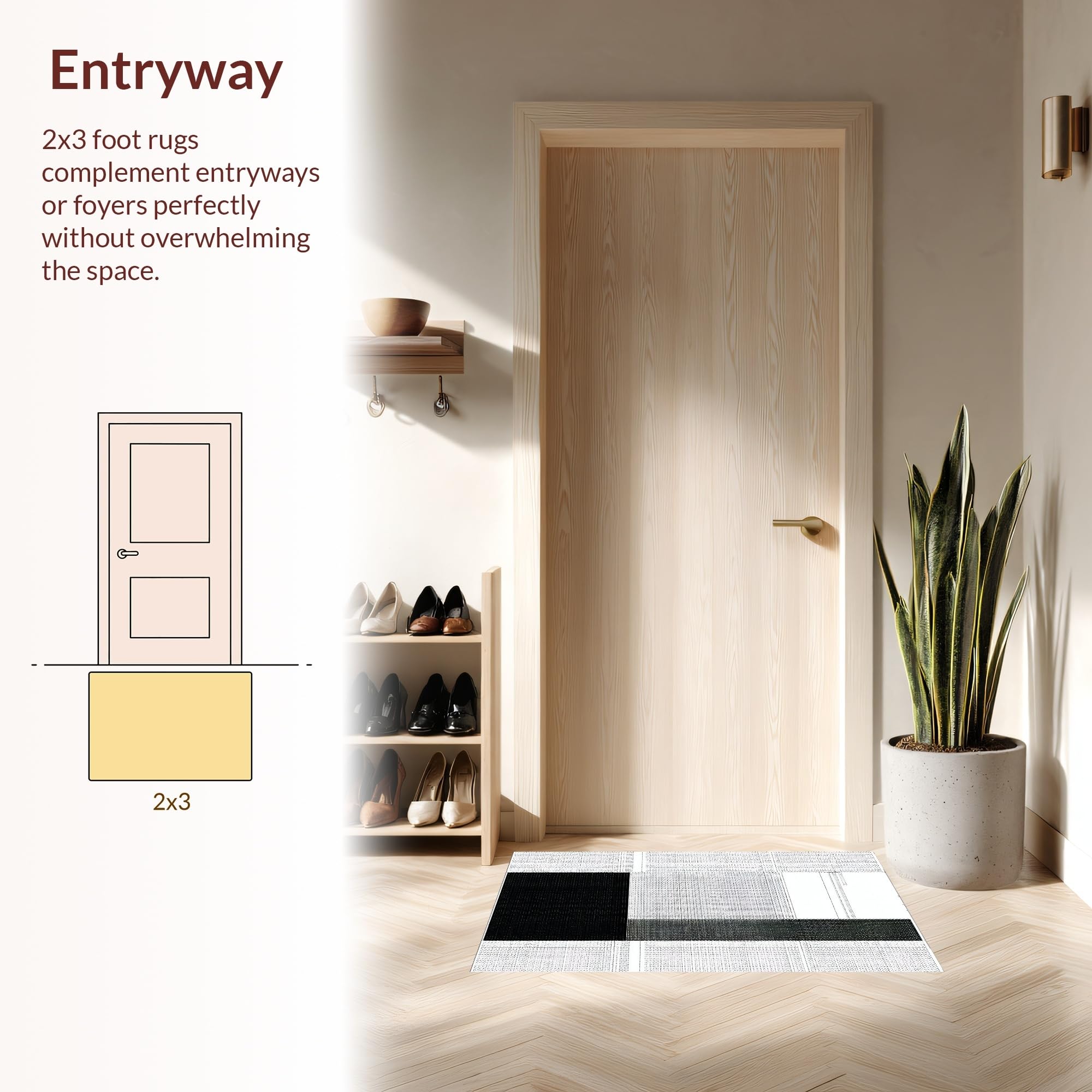 Ultra Soft Area Rug, Non Slip, Stain Resistant, Washable Area Rugs for Living Room, Bedroom, Elegant Subtle Textured Circular Design(Black) Overview: