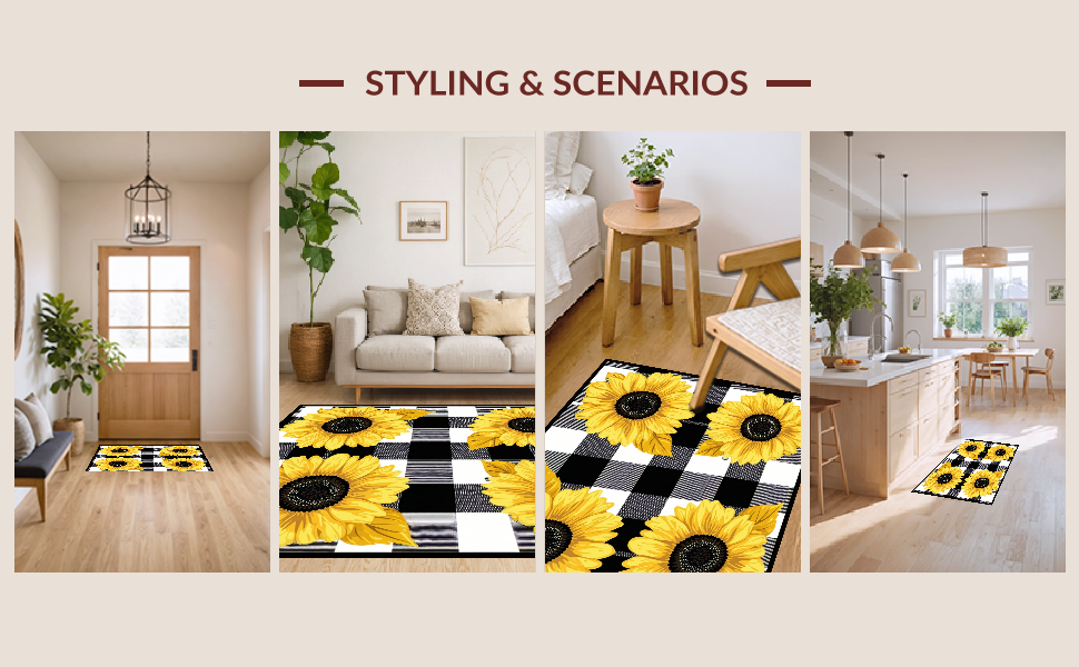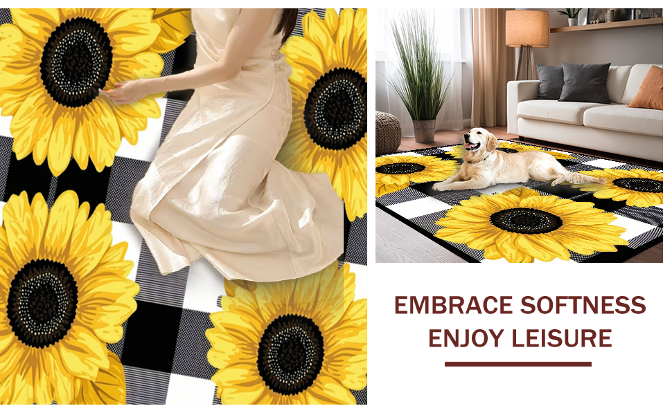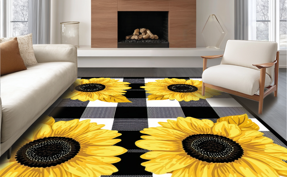 Ultra Soft Area Rug, Non Slip, Stain Resistant, Washable Area Rugs for Living Room, Bedroom, Elegant Summer Blossom Design(Yellow) Overview: