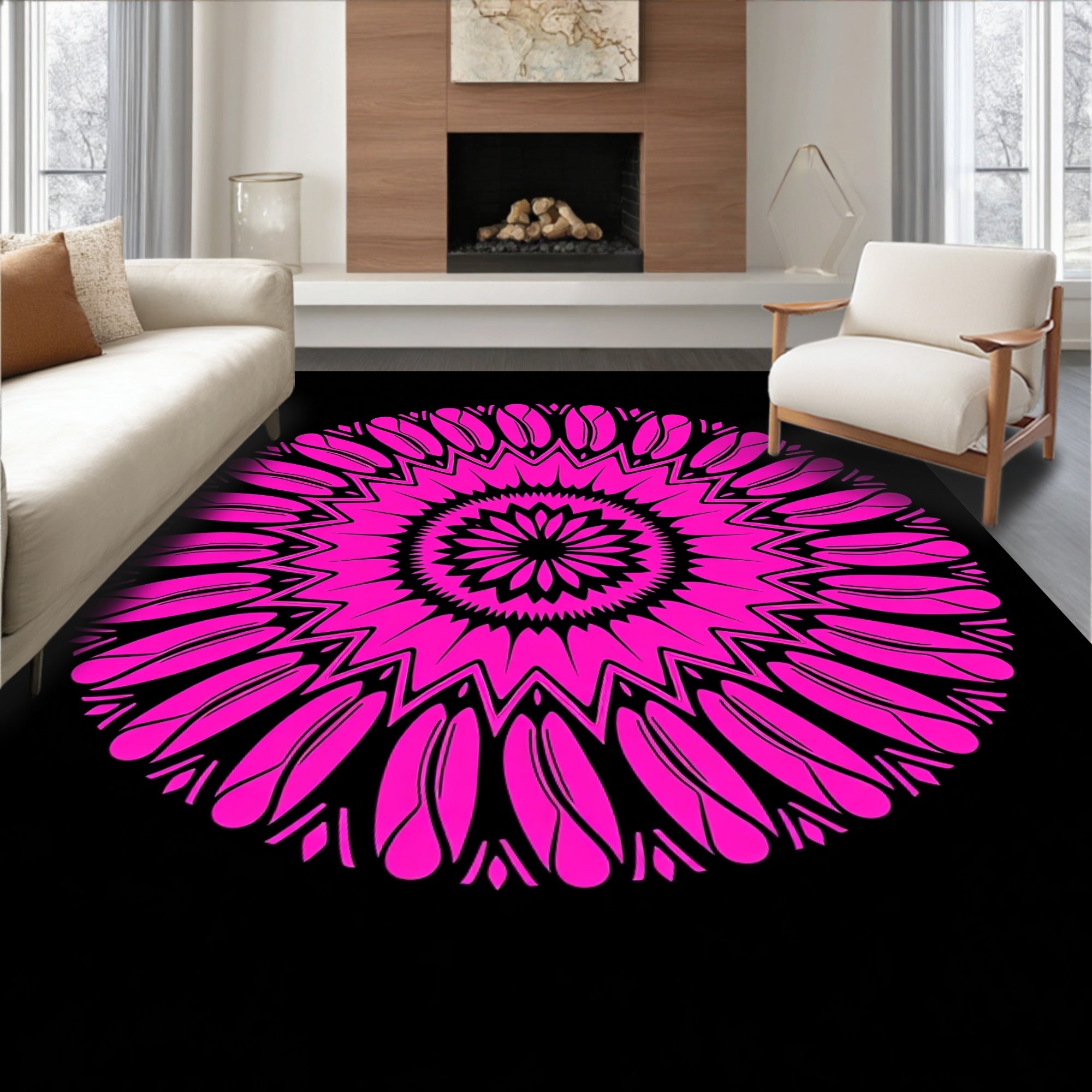 Ultra Soft Area Rug, Non Slip, Stain Resistant, Washable Area Rugs for Living Room, Bedroom, Elegant Sunburst Radial Bloom Contemporary(Pink) Overview: