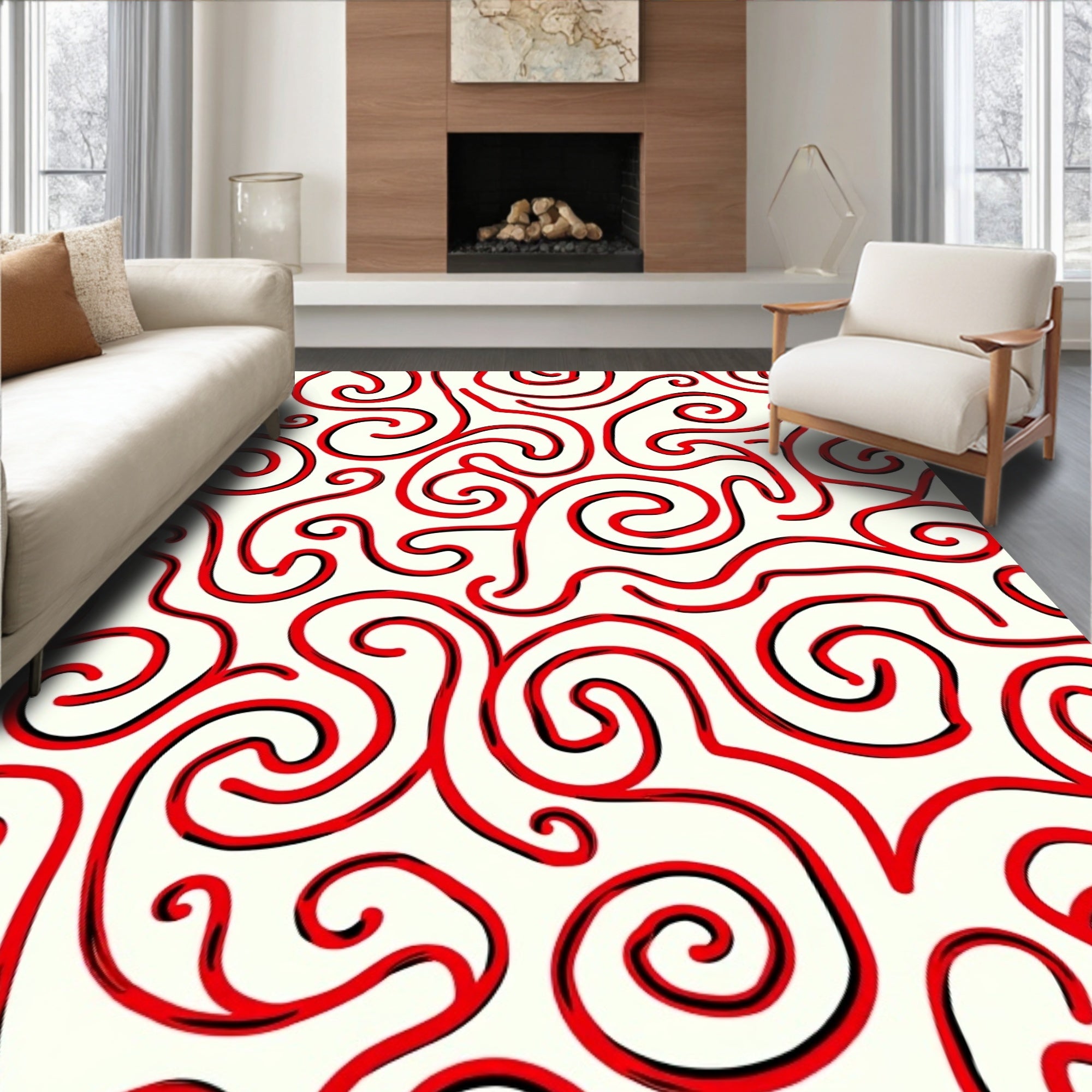 Ultra Soft Area Rug, Non Slip, Stain Resistant, Washable Area Rugs for Living Room, Bedroom, Elegant Swirl Celebration Tapestry(Red) Overview: