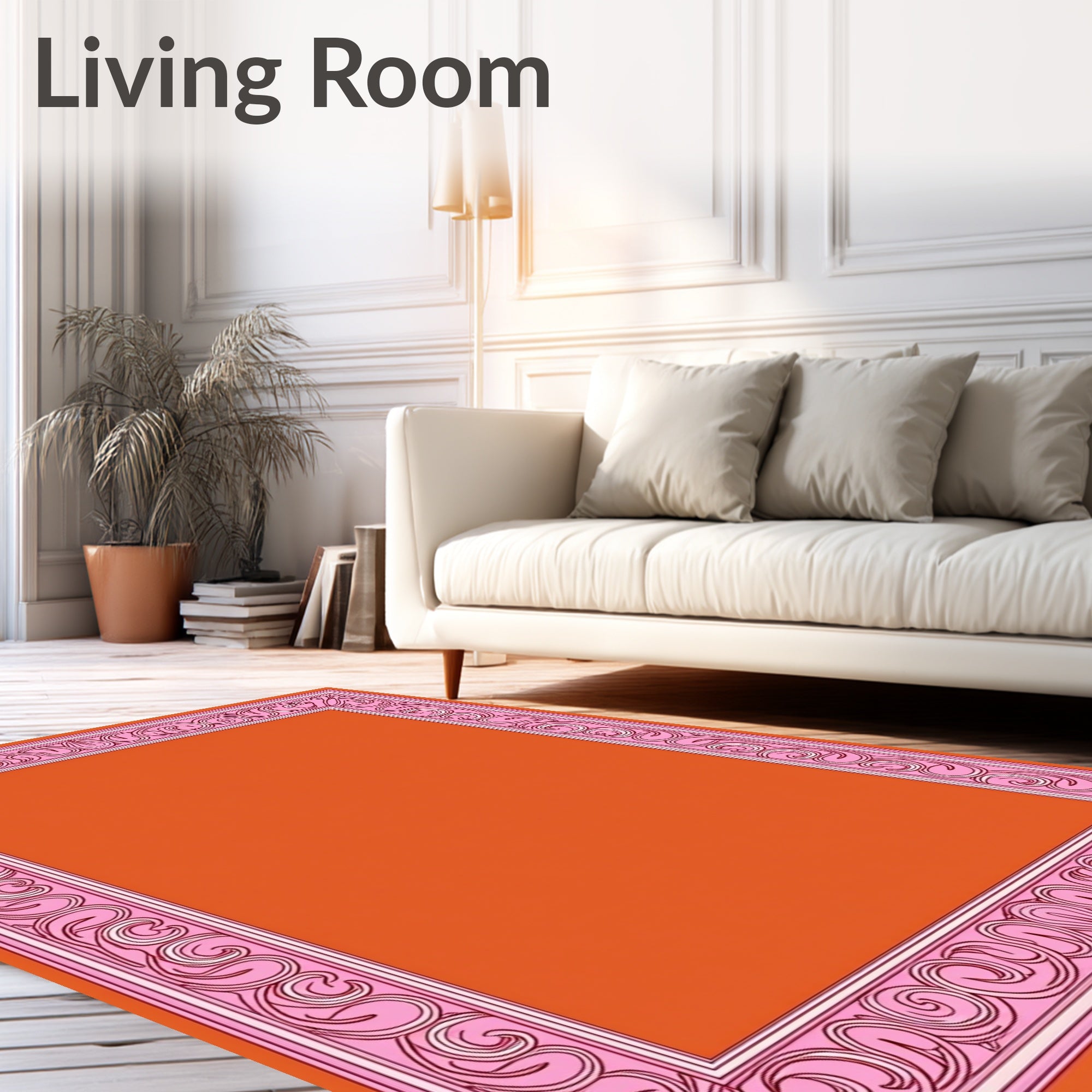 Ultra Soft Area Rug, Non Slip, Stain Resistant, Washable Area Rugs for Living Room, Bedroom, Elegant Swirl Damask Nouveau Transitional Sophisticated Embellished(Orange) Overview: