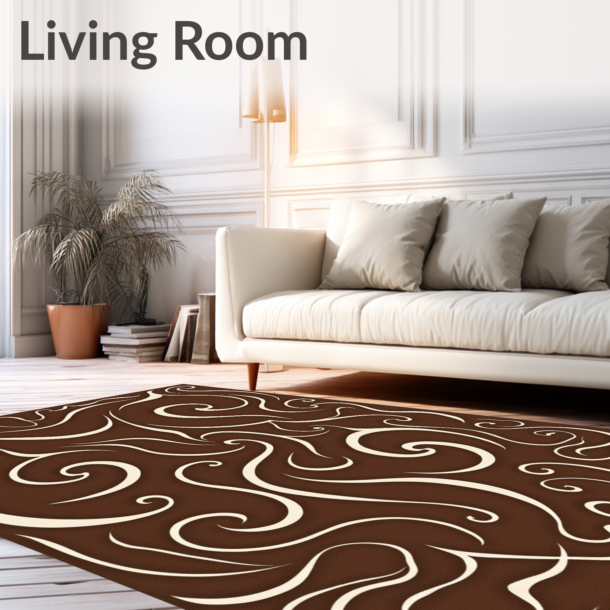 Flatwoven High Traffic Area Rug, Elegant Swirl Wave Contemporary Abstract Decorative Aesthetic, Non Slip, Stain Resistant, Washable Area Rugs for Living Room, Bedroom (Brown) Overview: