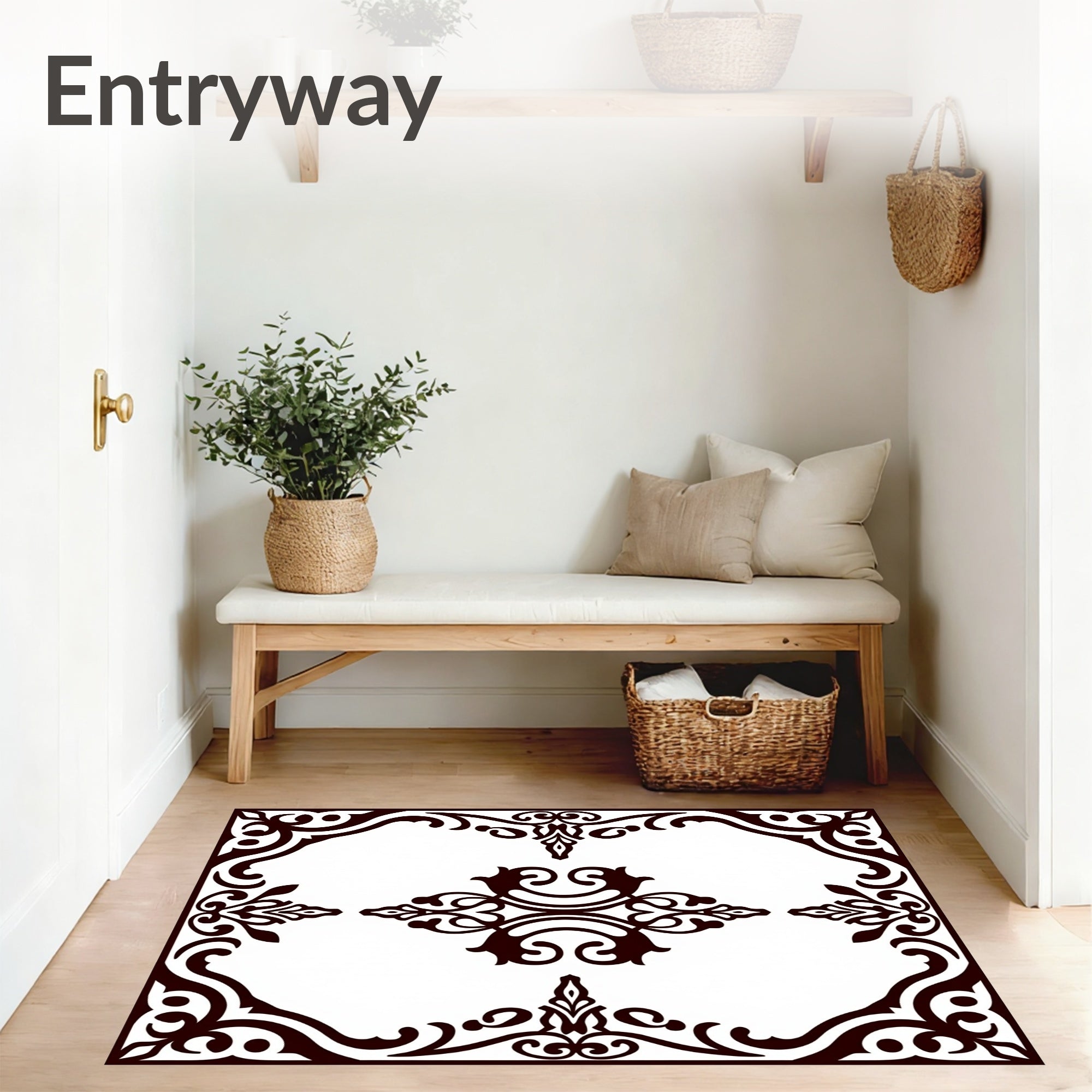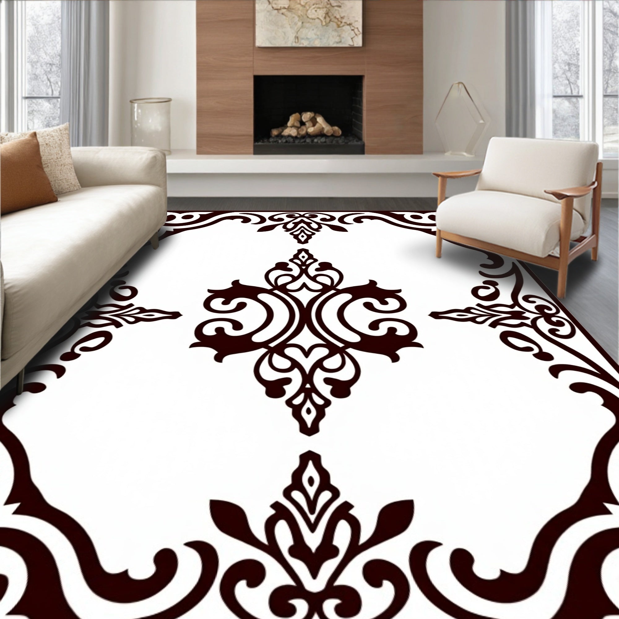 Elegant Swirling Damask Traditional Motif Decorative Flooring Accent(Brown)