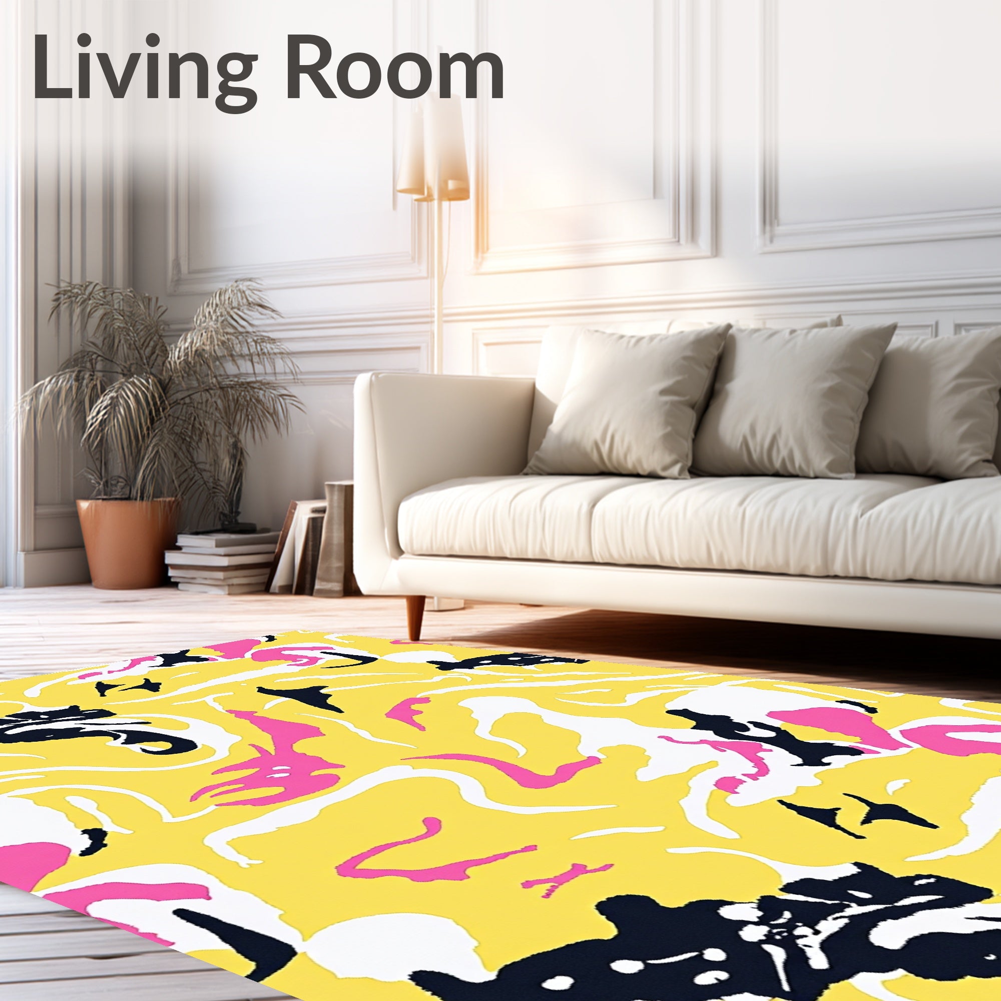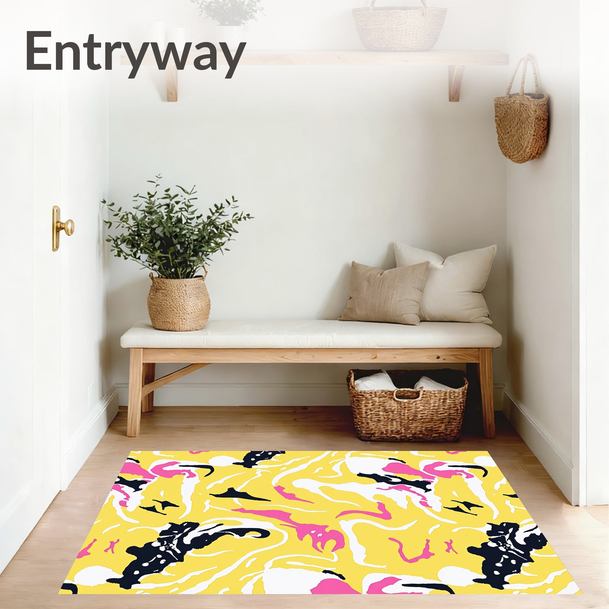 Ultra Soft Area Rug, Non Slip, Stain Resistant, Washable Area Rugs for Living Room, Bedroom, Elegant Swirling Marble Abstract Watercolor Splash Luxury(Yellow) Overview: