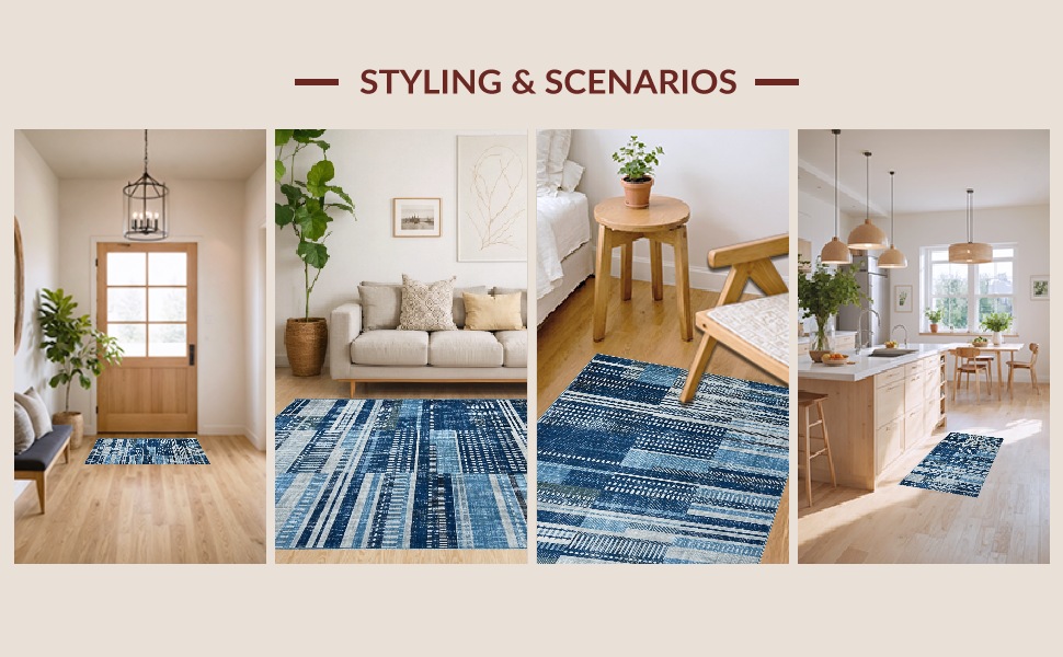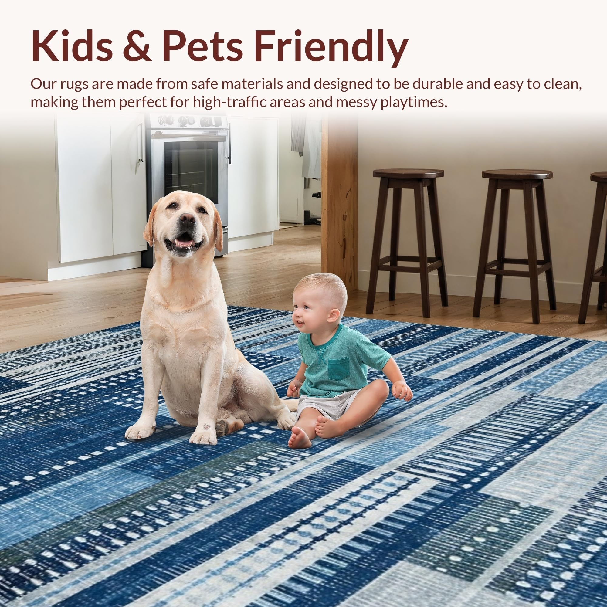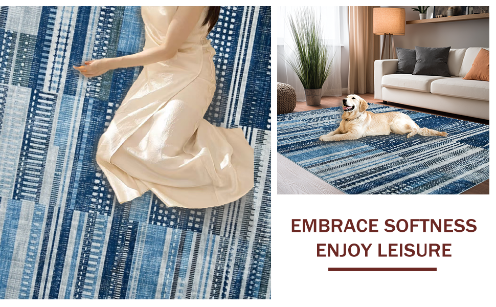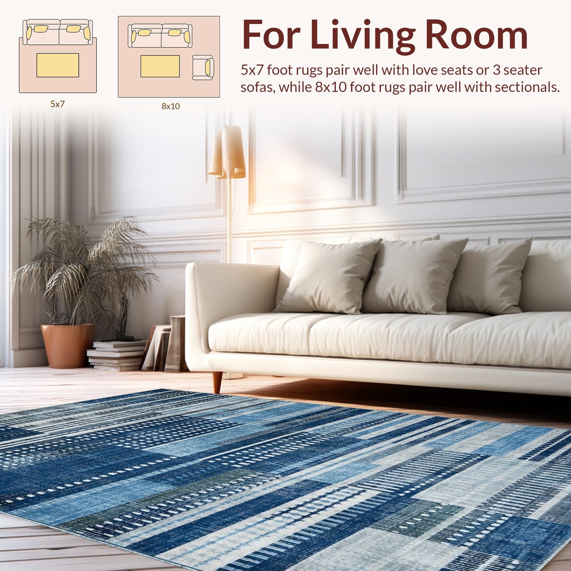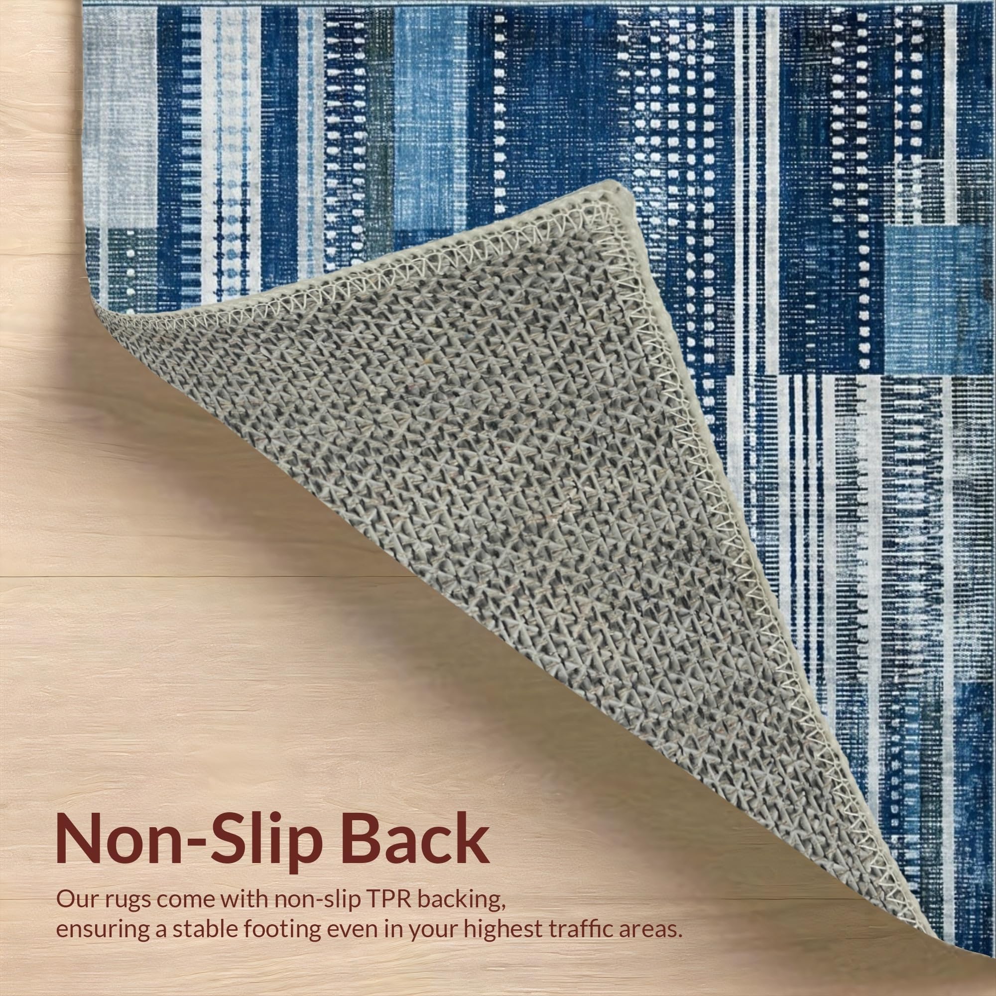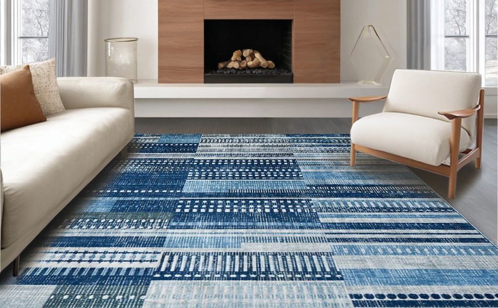 Ultra Soft Area Rug, Non Slip, Stain Resistant, Washable Area Rugs for Living Room, Bedroom, Elegant Symmetrical Blue Patterns(Blue) Overview:
