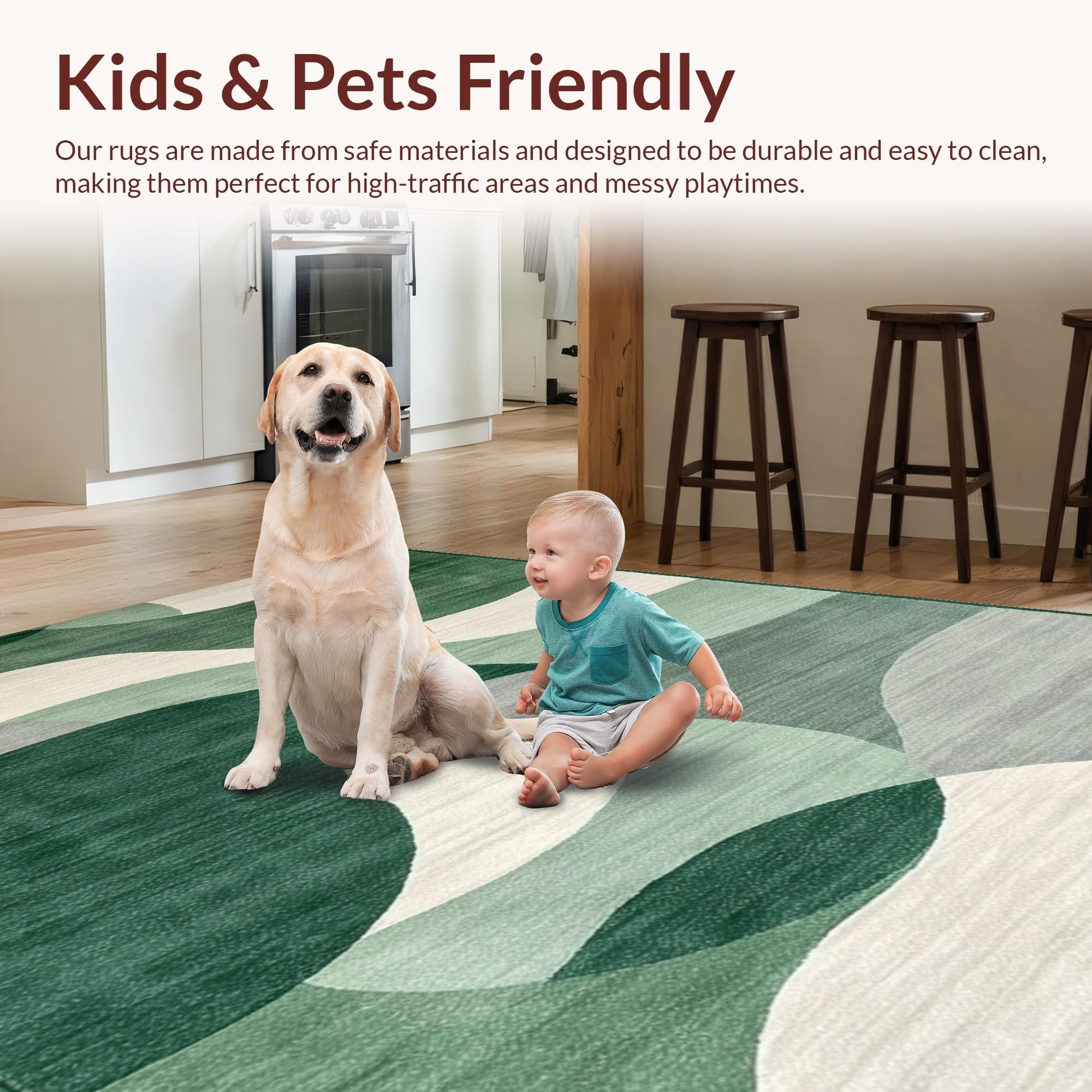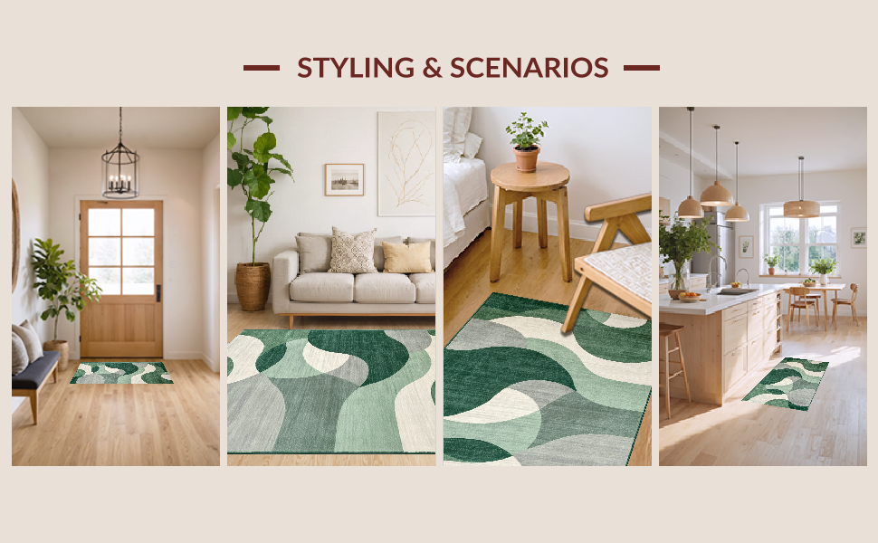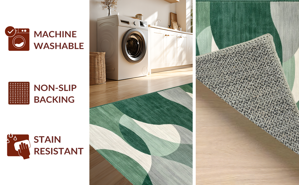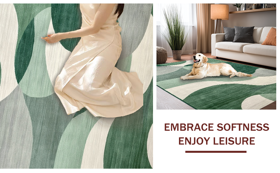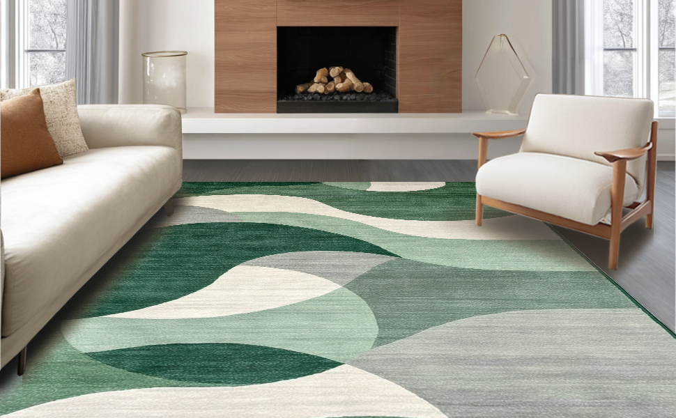 Ultra Soft Area Rug, Non Slip, Stain Resistant, Washable Area Rugs for Living Room, Bedroom, Elegant Symmetrical Nature Inspired(Green) Overview: