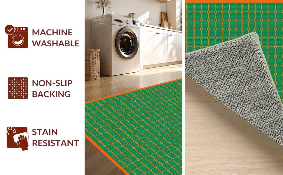 Ultra Soft Area Rug, Non Slip, Stain Resistant, Washable Area Rugs for Living Room, Bedroom, Elegant Symmetrical Pattern Harmony(Green) Overview: