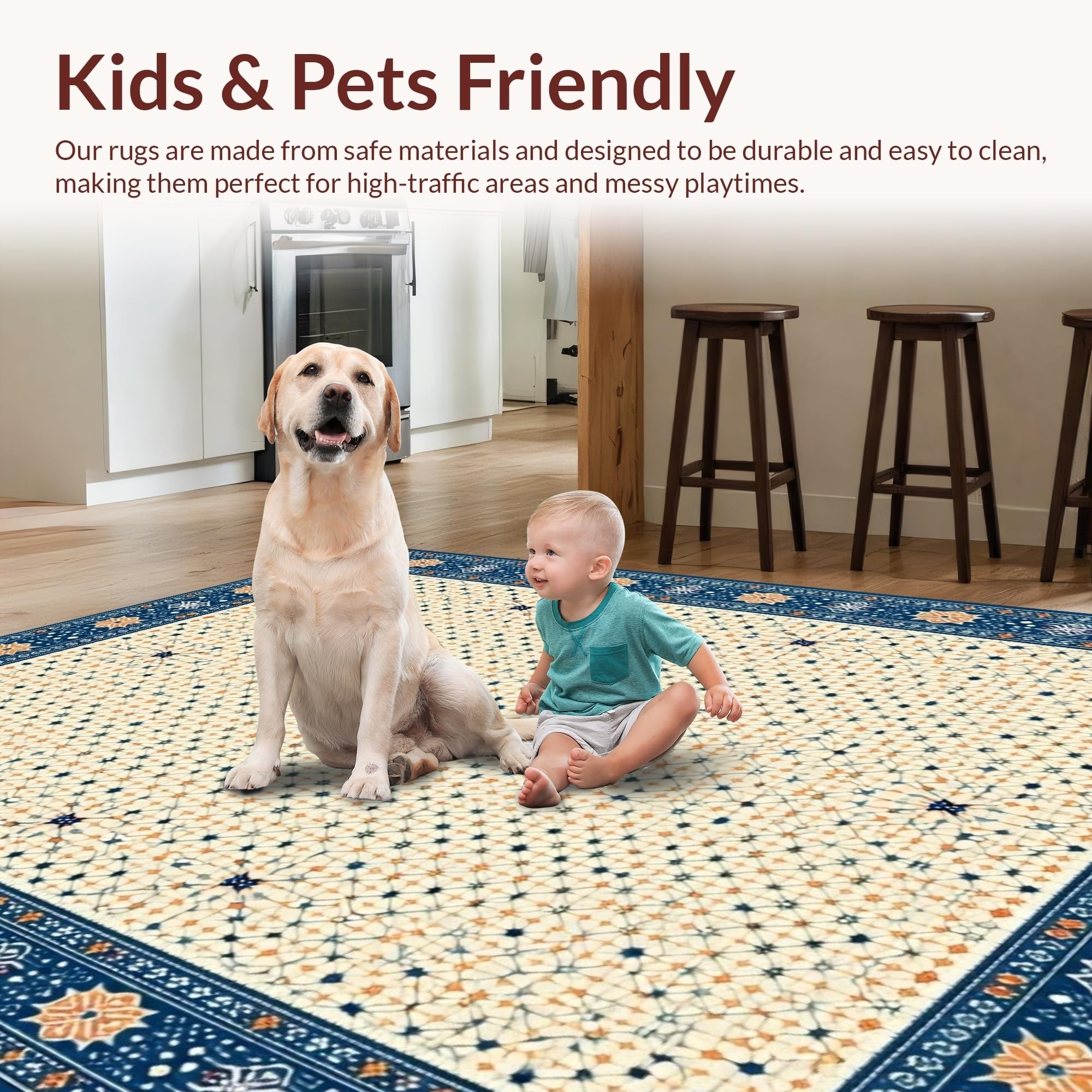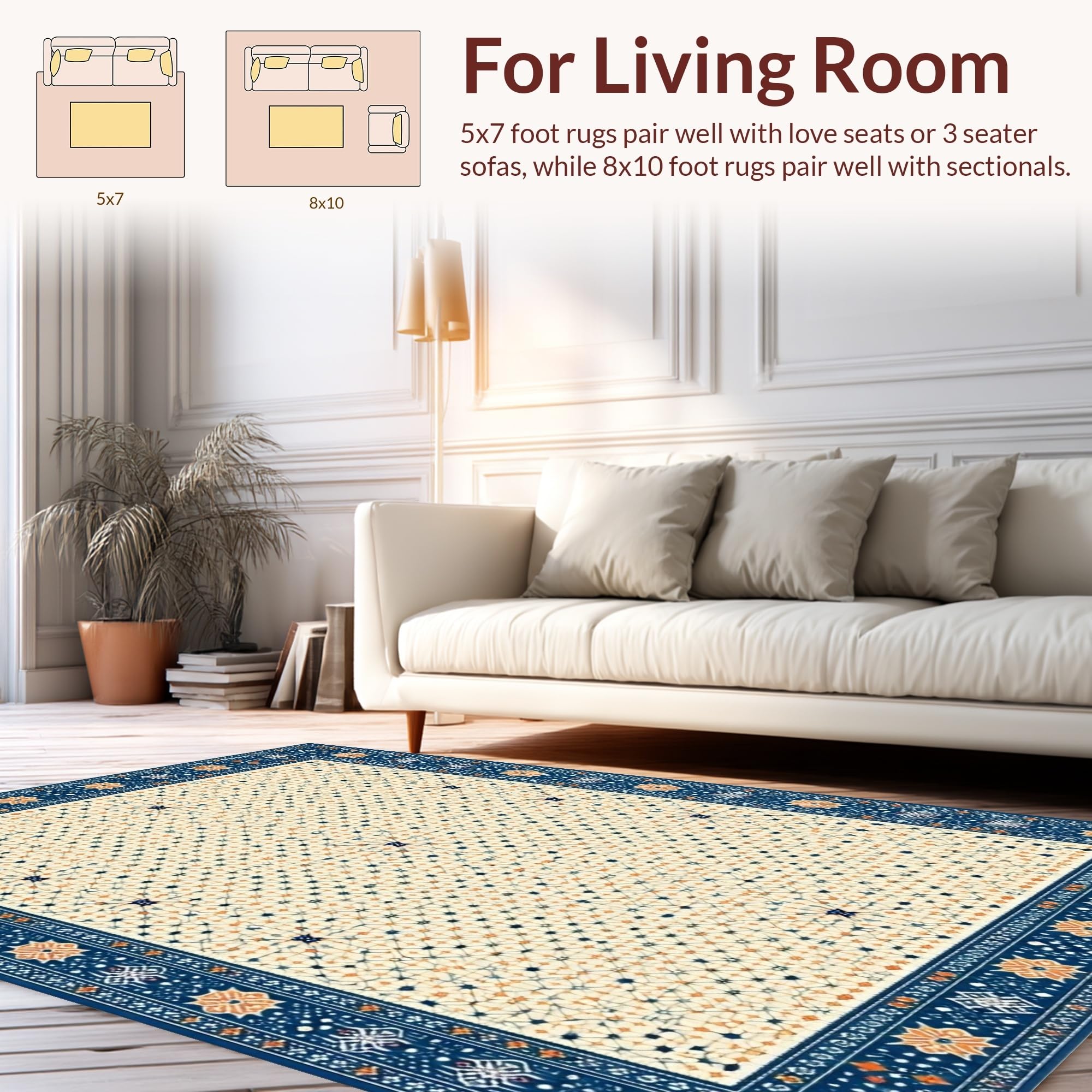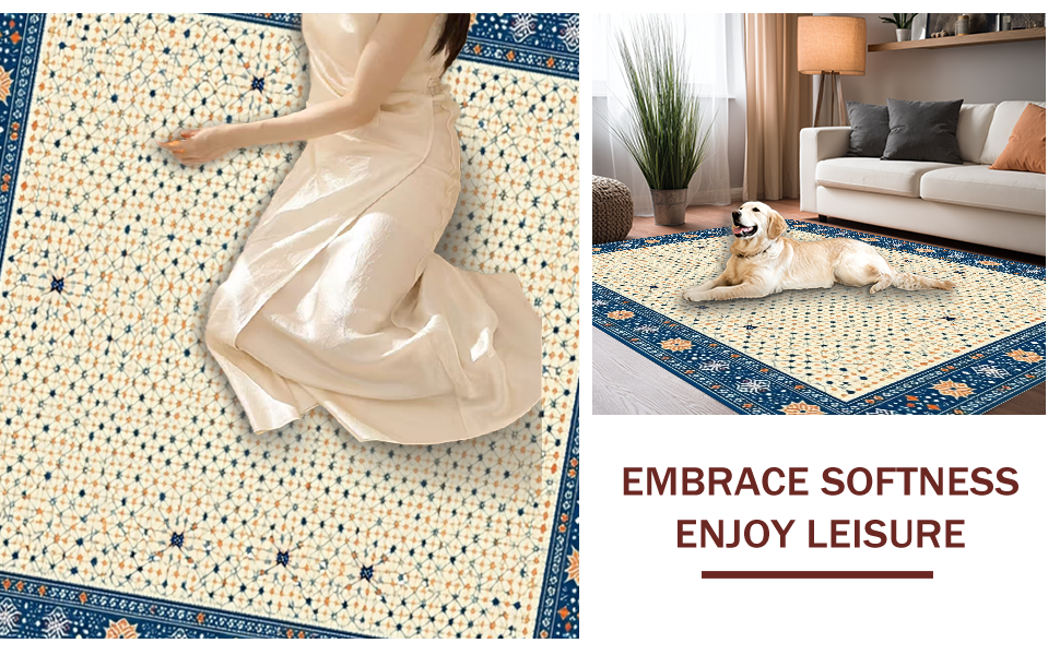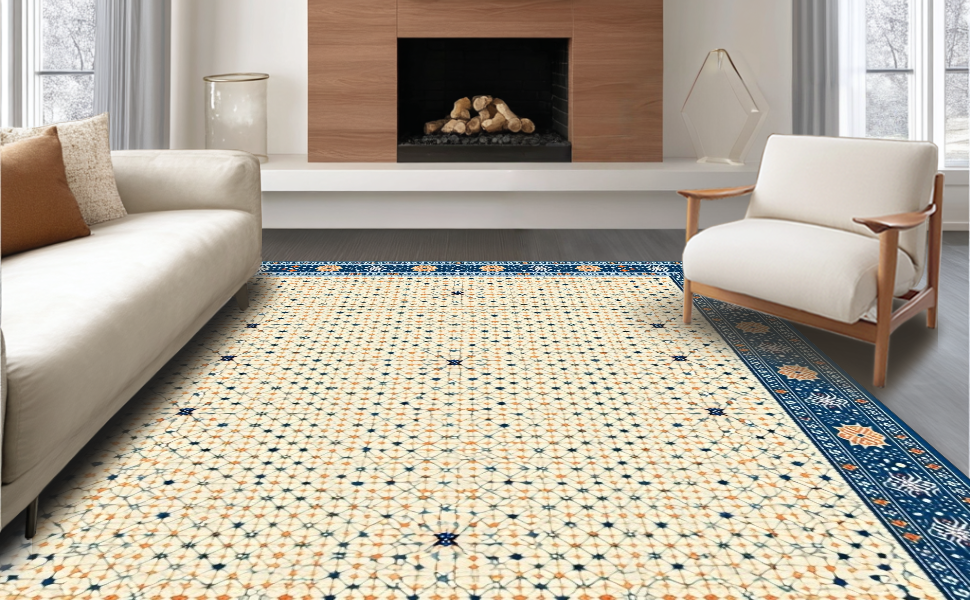 Ultra Soft Area Rug, Non Slip, Stain Resistant, Washable Area Rugs for Living Room, Bedroom, Elegant Symmetrical Star Composition(Ivory) Overview: