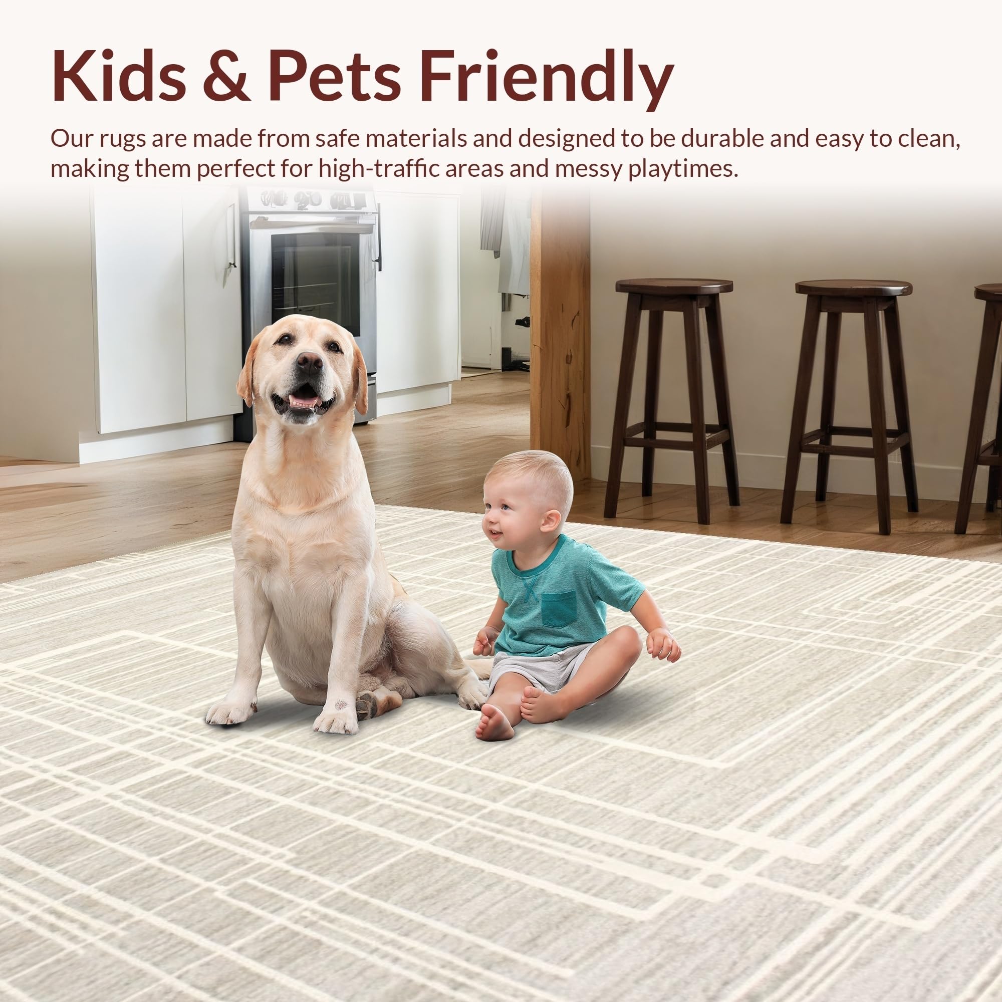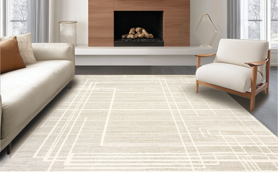Ultra Soft Area Rug, Non Slip, Stain Resistant, Washable Area Rugs for Living Room, Bedroom, Elegant Symmetrical Zigzag Layout(Beige) Overview: