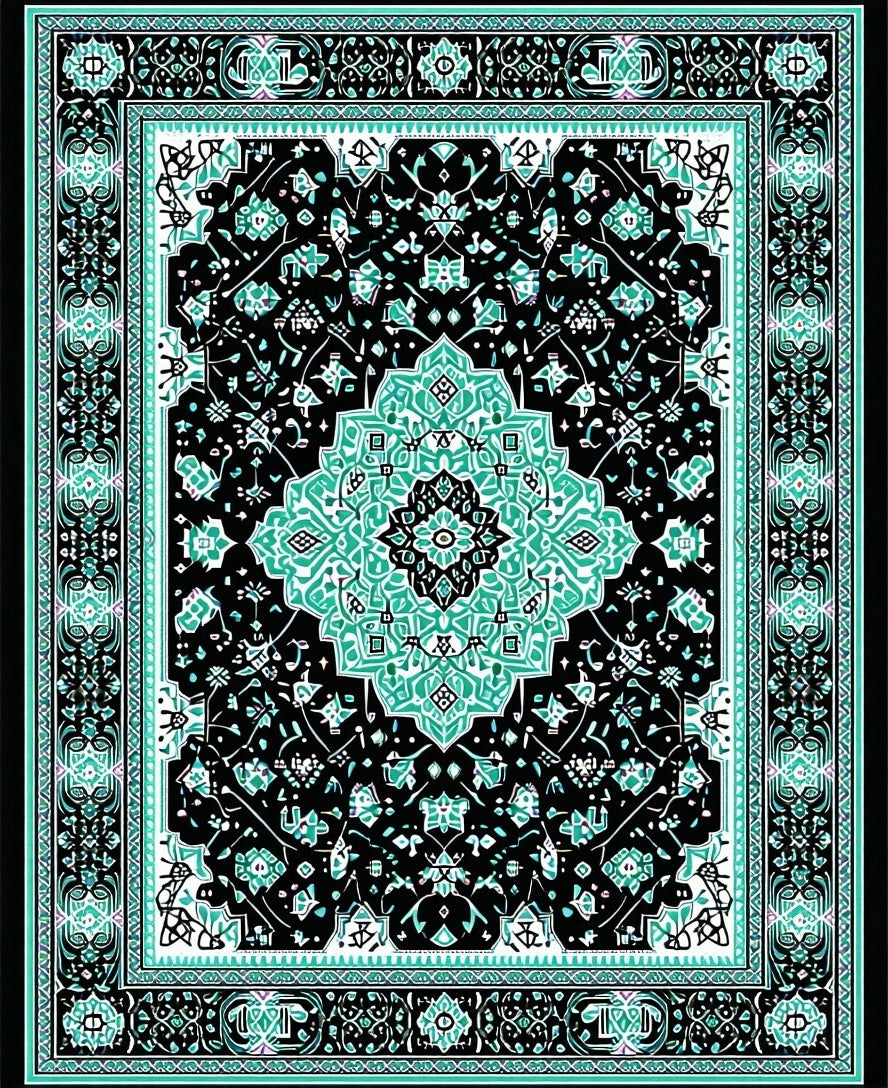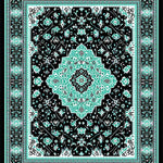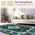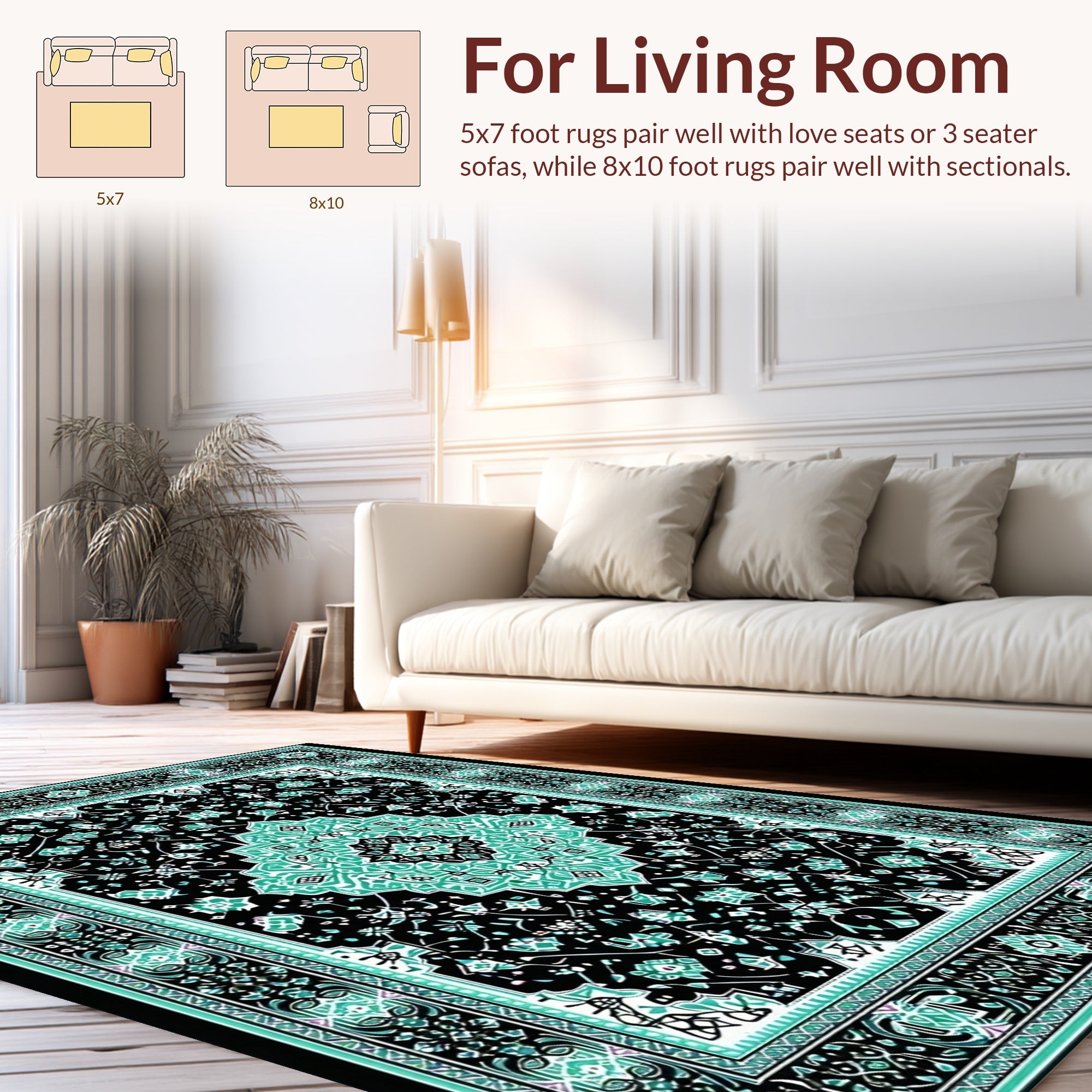 Flatwoven High Traffic Area Rug, Elegant Teal and Black Medallion, Non Slip, Stain Resistant, Washable Area Rugs for Living Room, Bedroom (Black) Overview: