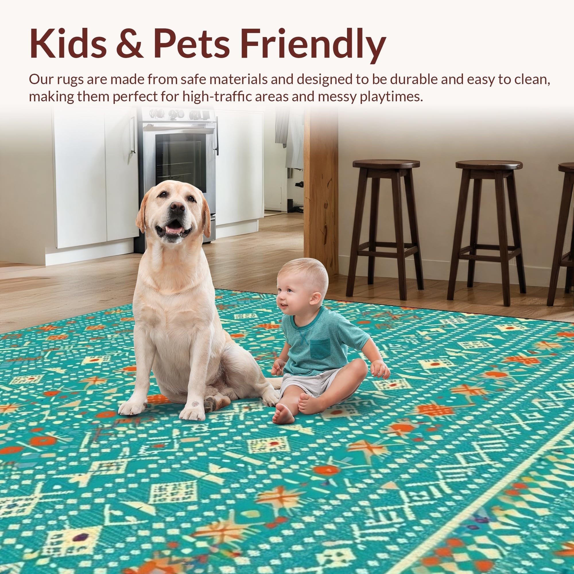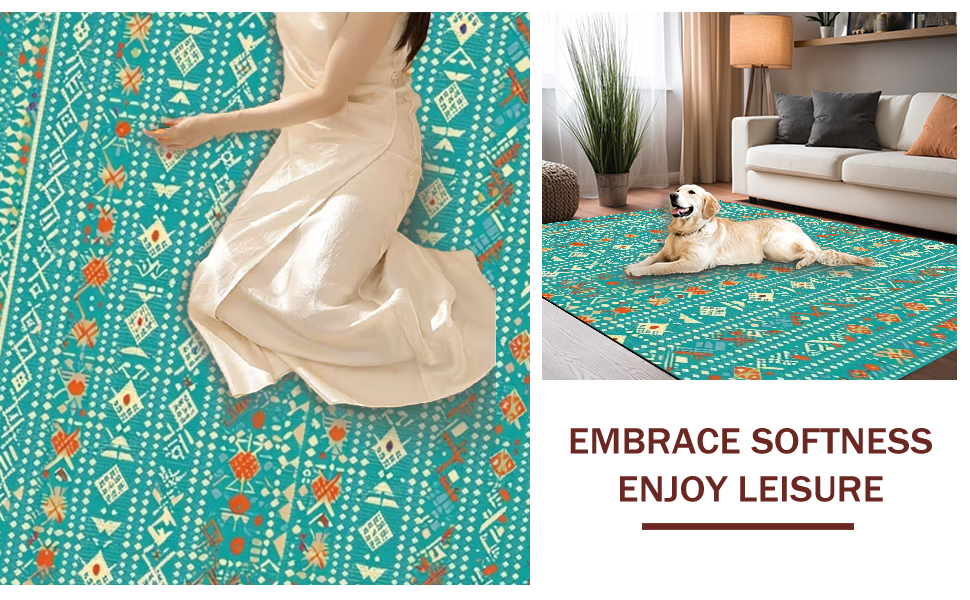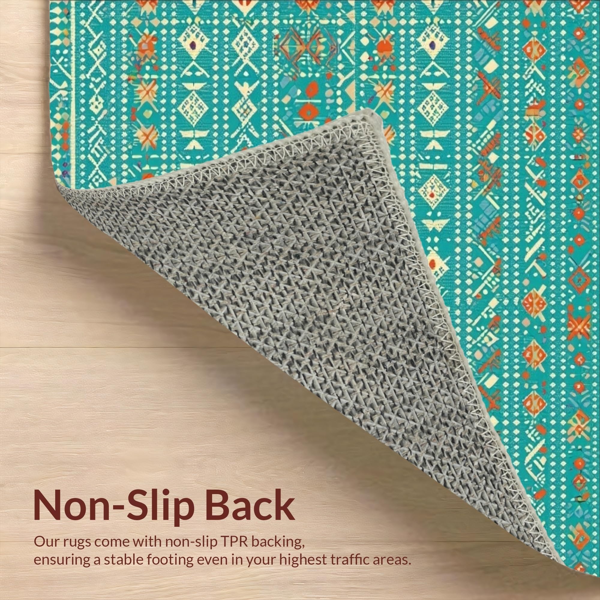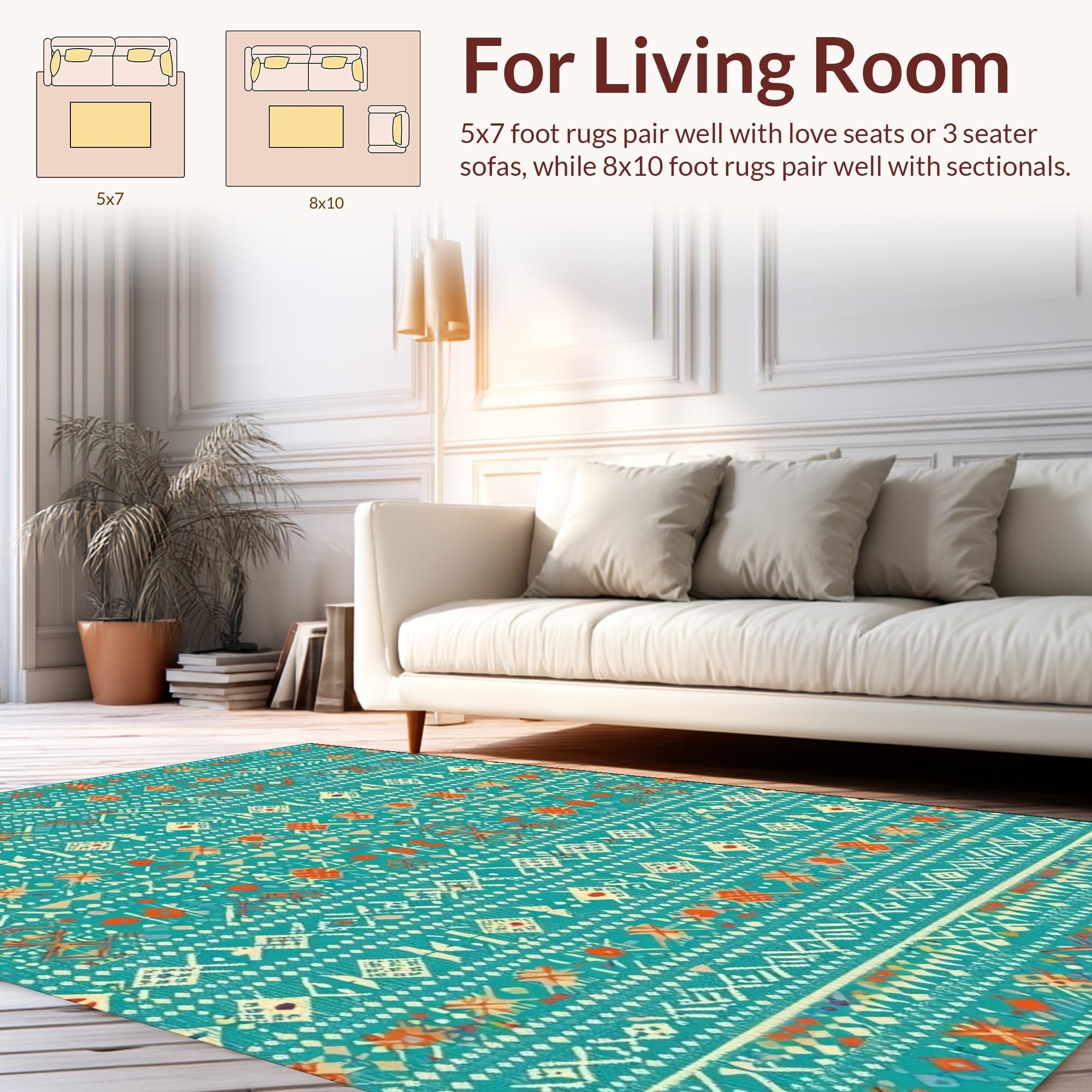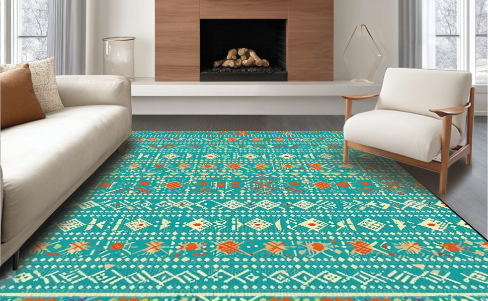 Ultra Soft Area Rug, Non Slip, Stain Resistant, Washable Area Rugs for Living Room, Bedroom, Elegant Teal and Orange Fusion(Blue) Overview: