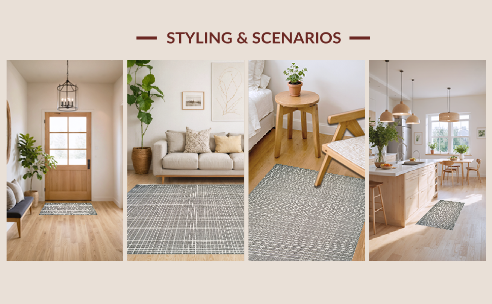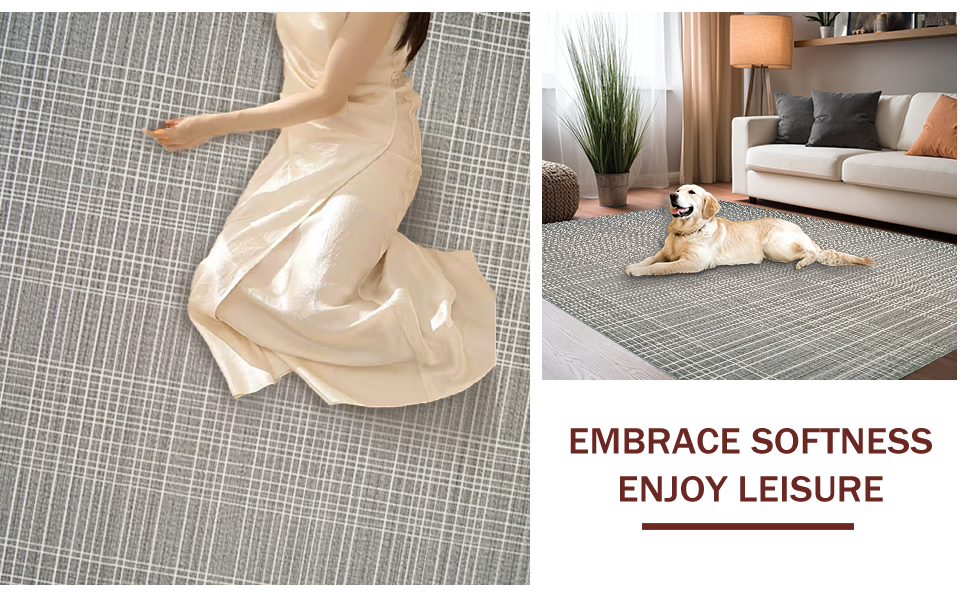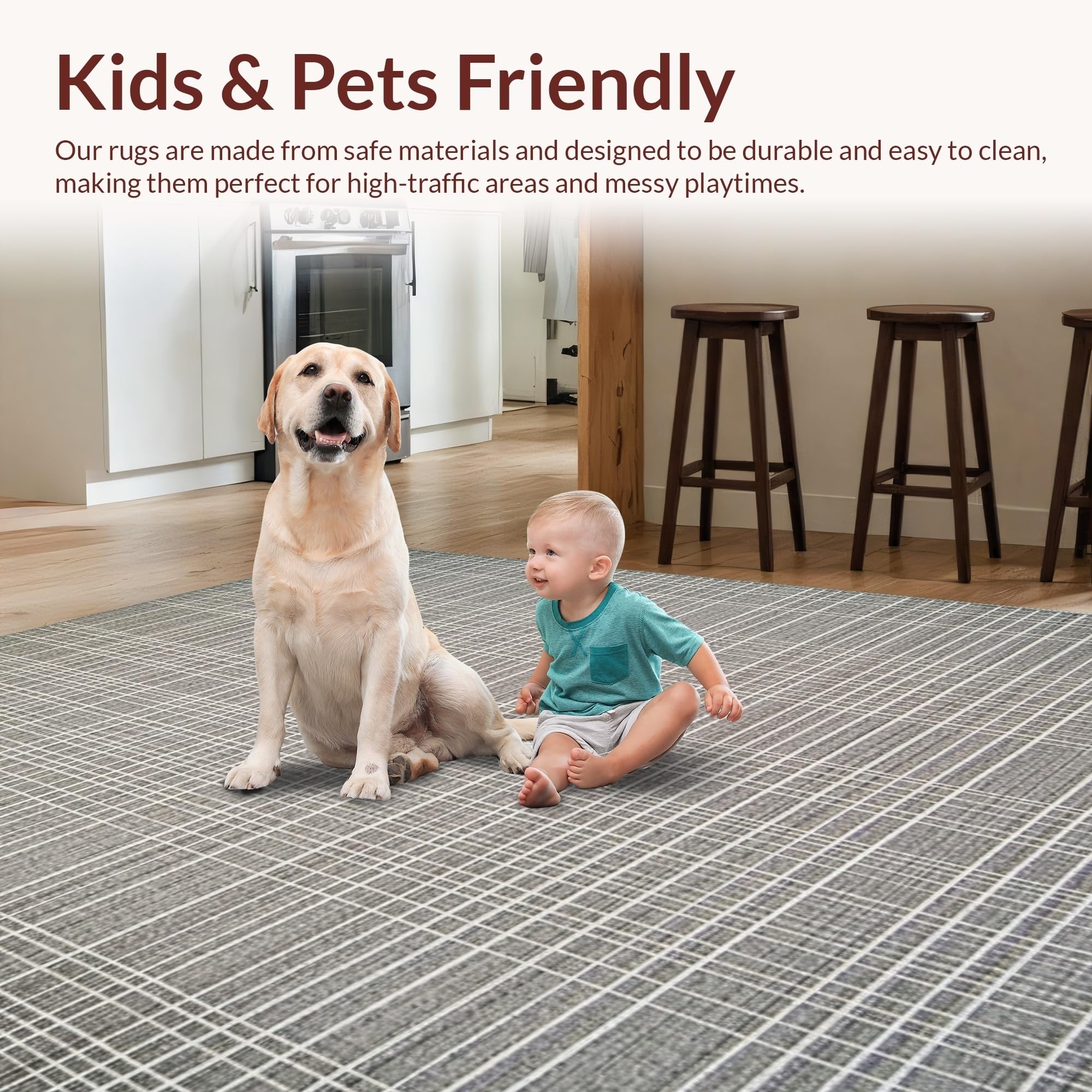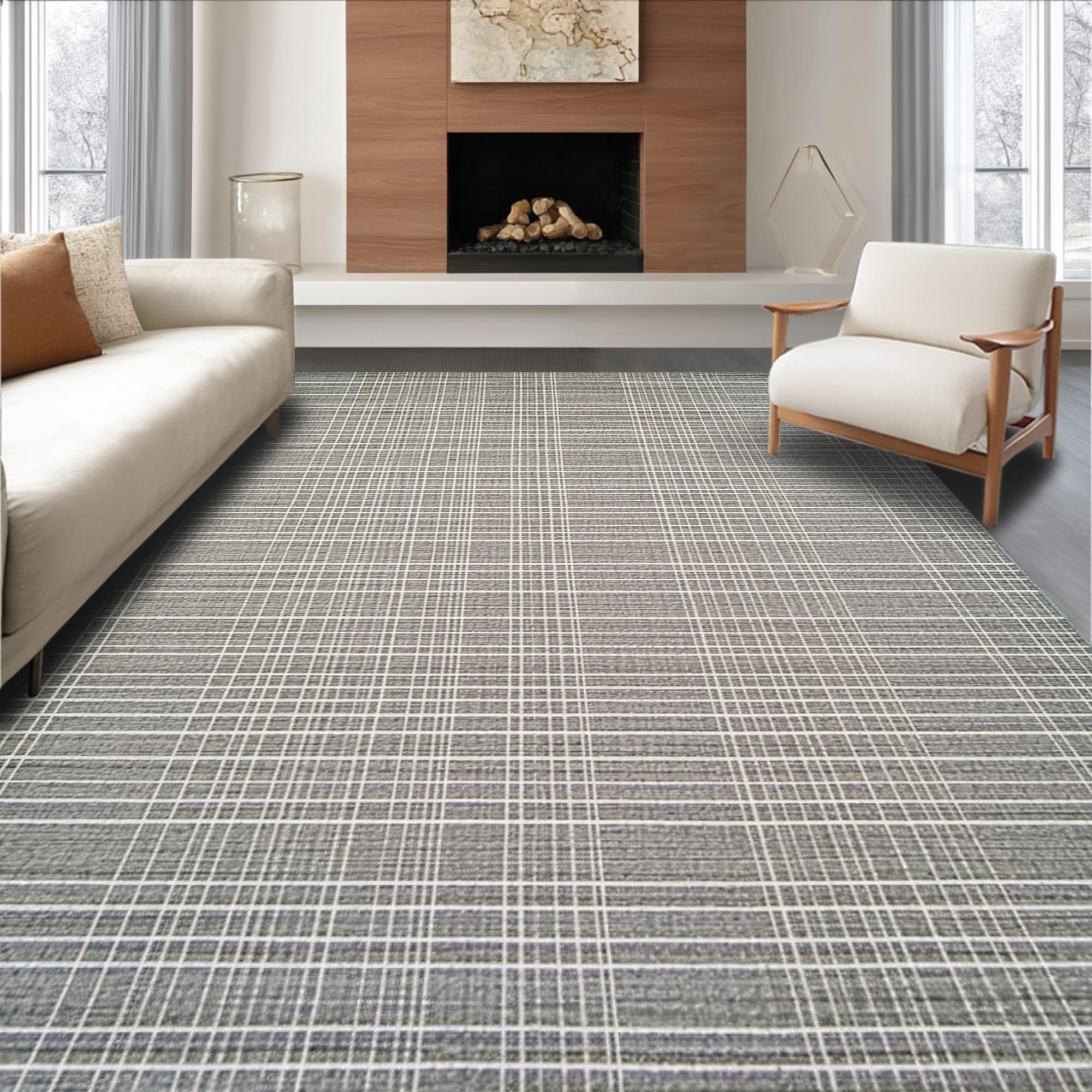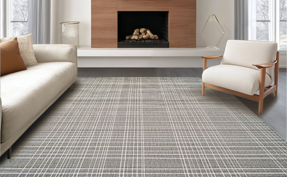 Ultra Soft Area Rug, Non Slip, Stain Resistant, Washable Area Rugs for Living Room, Bedroom, Elegant Textured Checkered Aesthetic(Gray) Overview:
