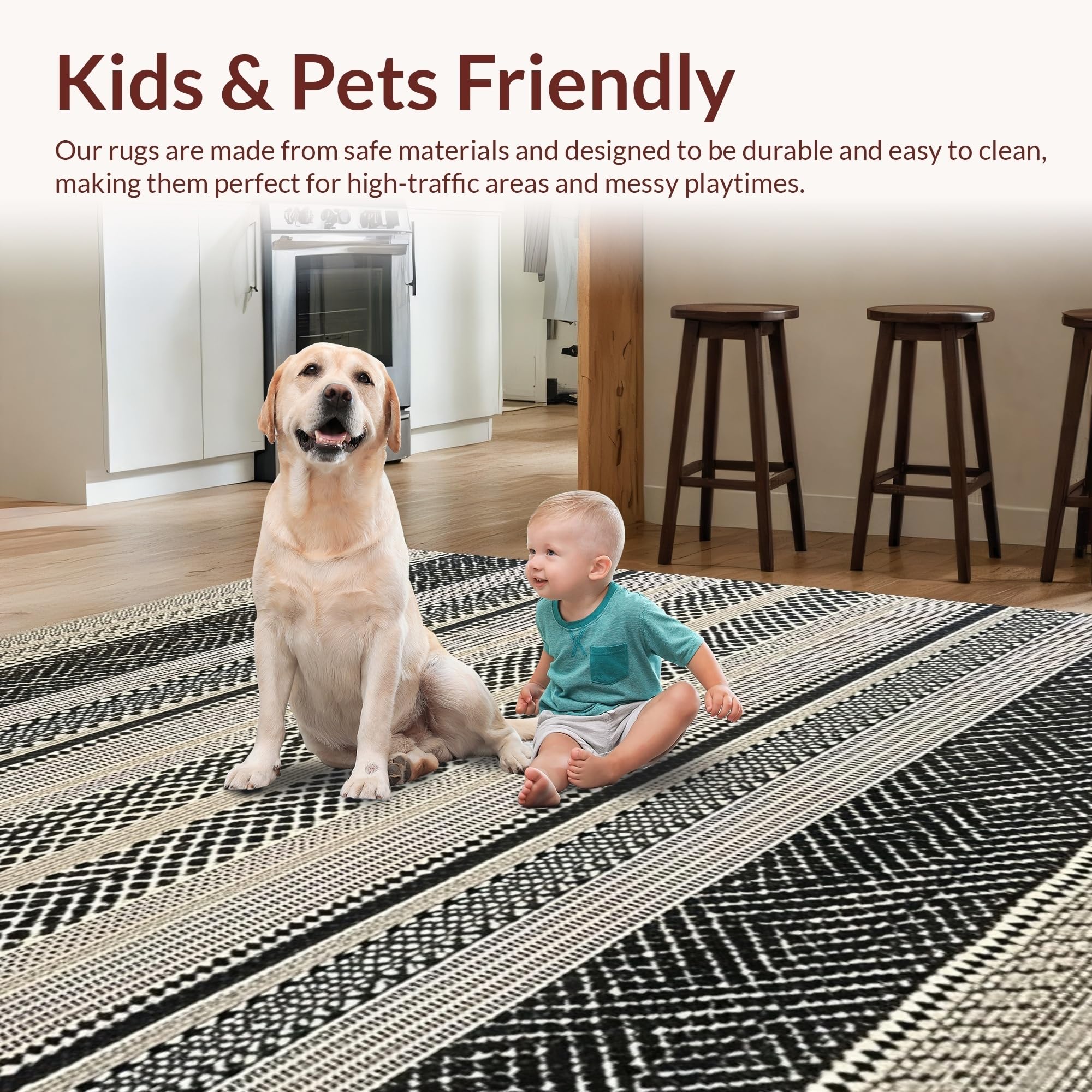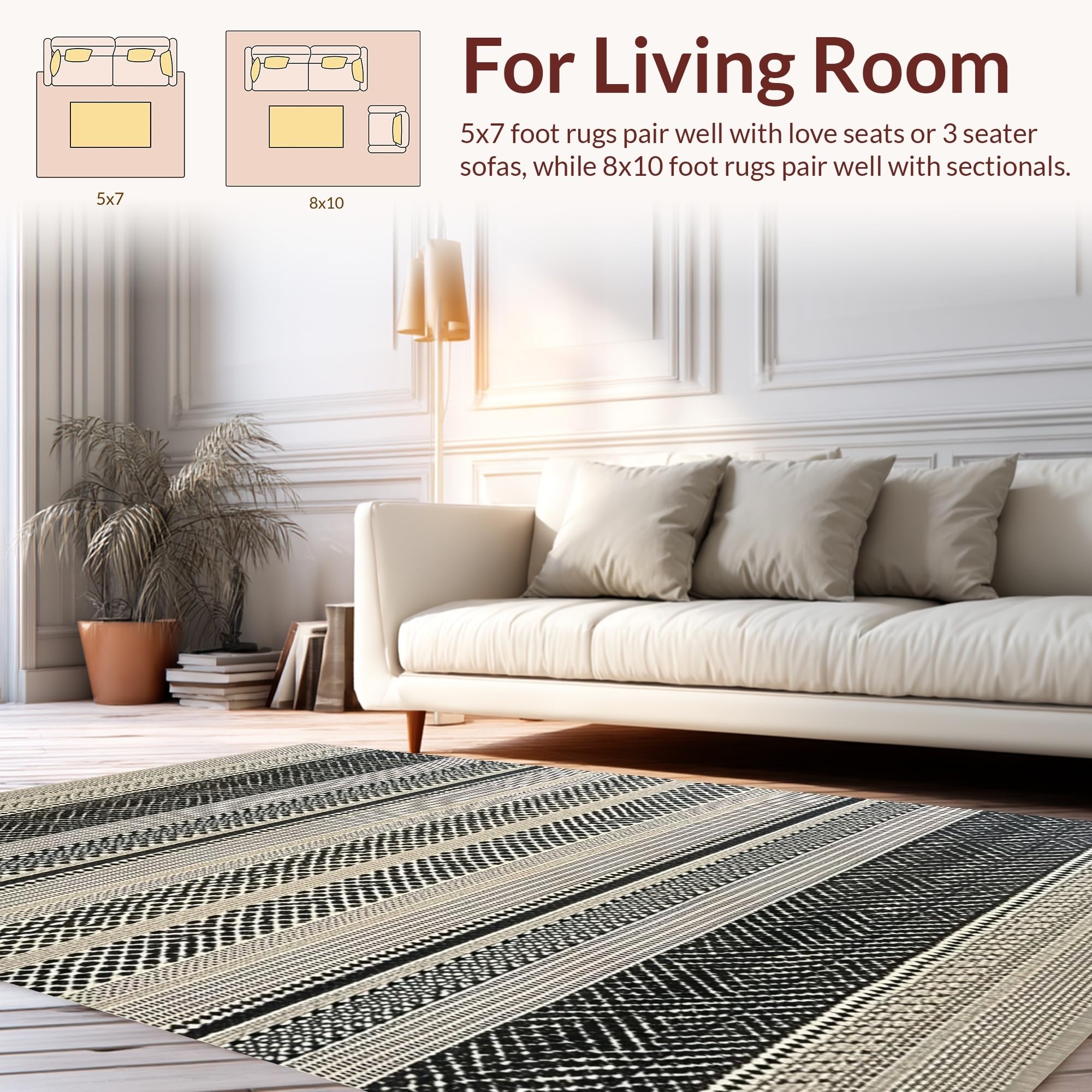 Ultra Soft Area Rug, Non Slip, Stain Resistant, Washable Area Rugs for Living Room, Bedroom, Elegant Textured Fishbone Aesthetic(Beige) Overview: