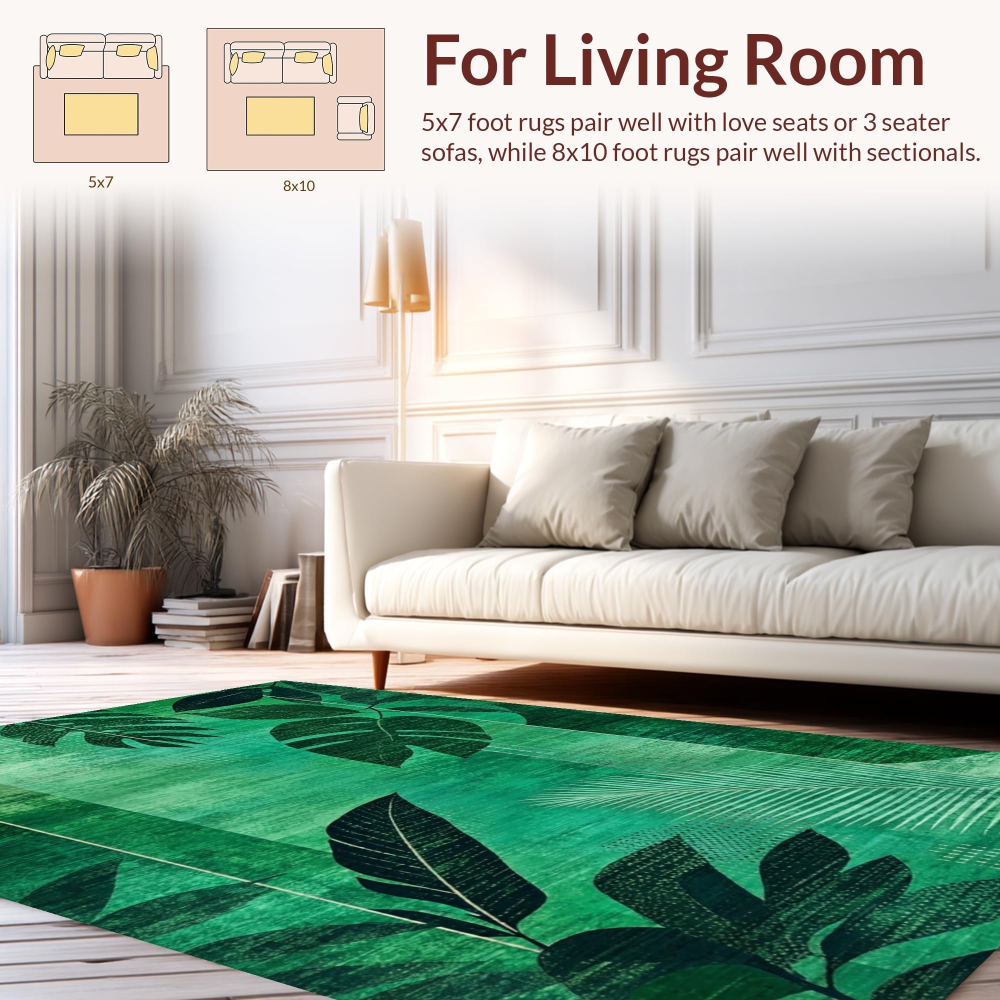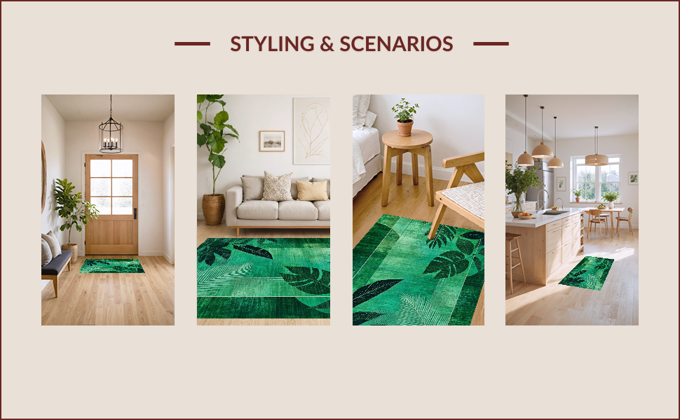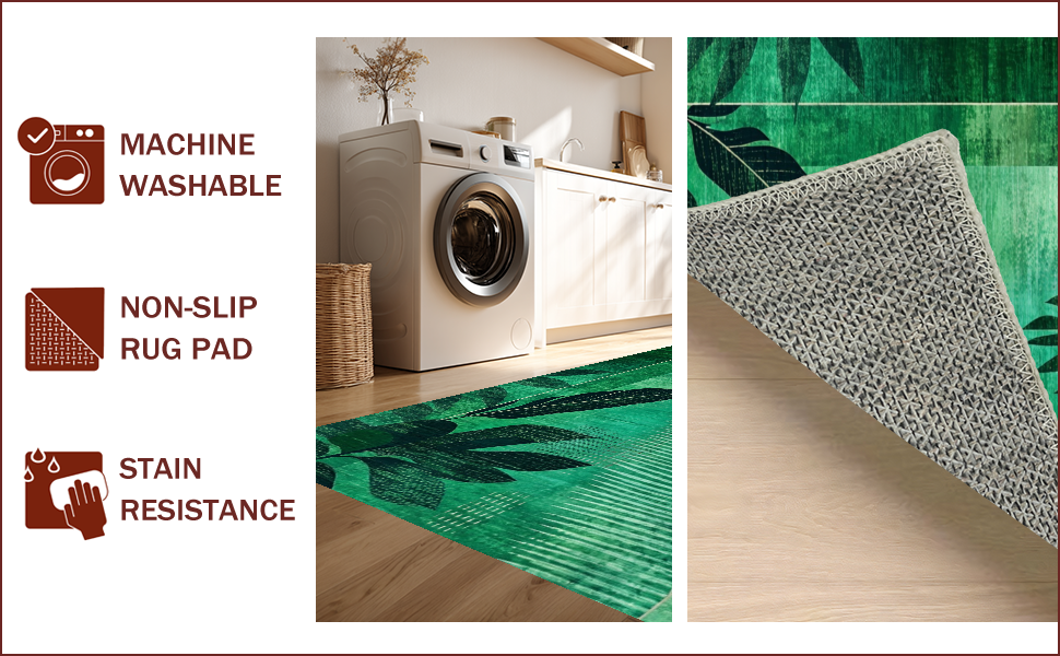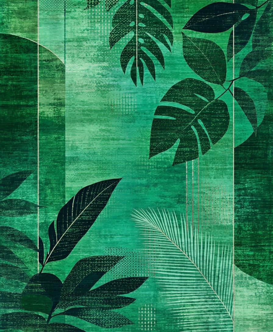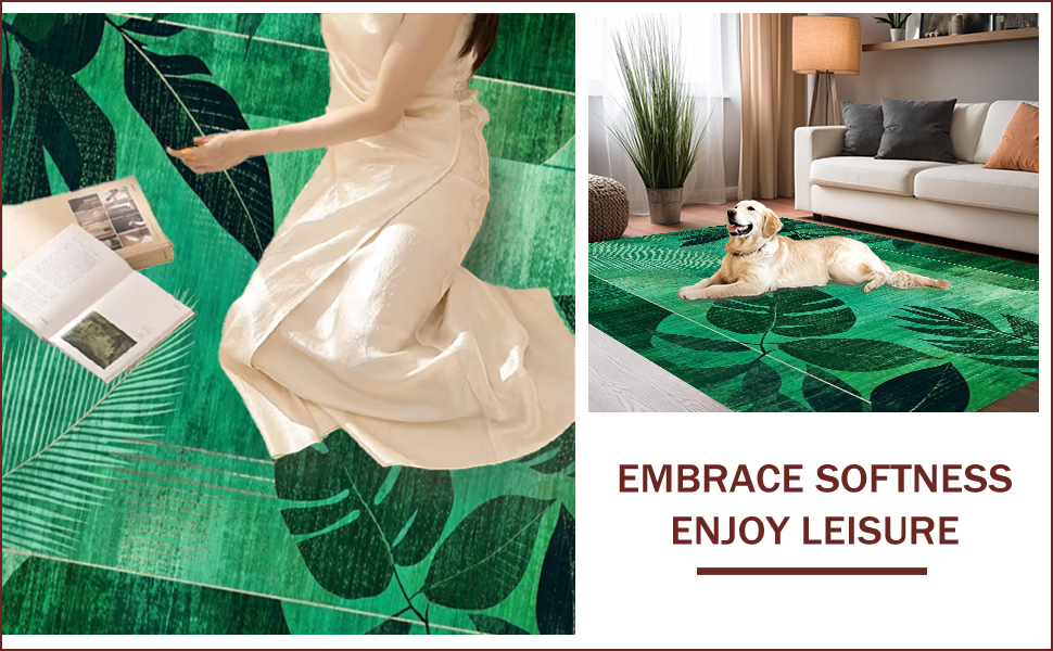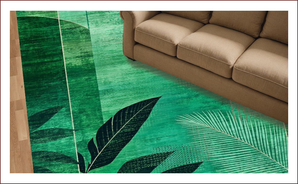 Ultra Soft Area Rug, Non Slip, Stain Resistant, Washable Area Rugs for Living Room, Bedroom, Elegant Textured Foliage Aesthetic(Green) Overview: