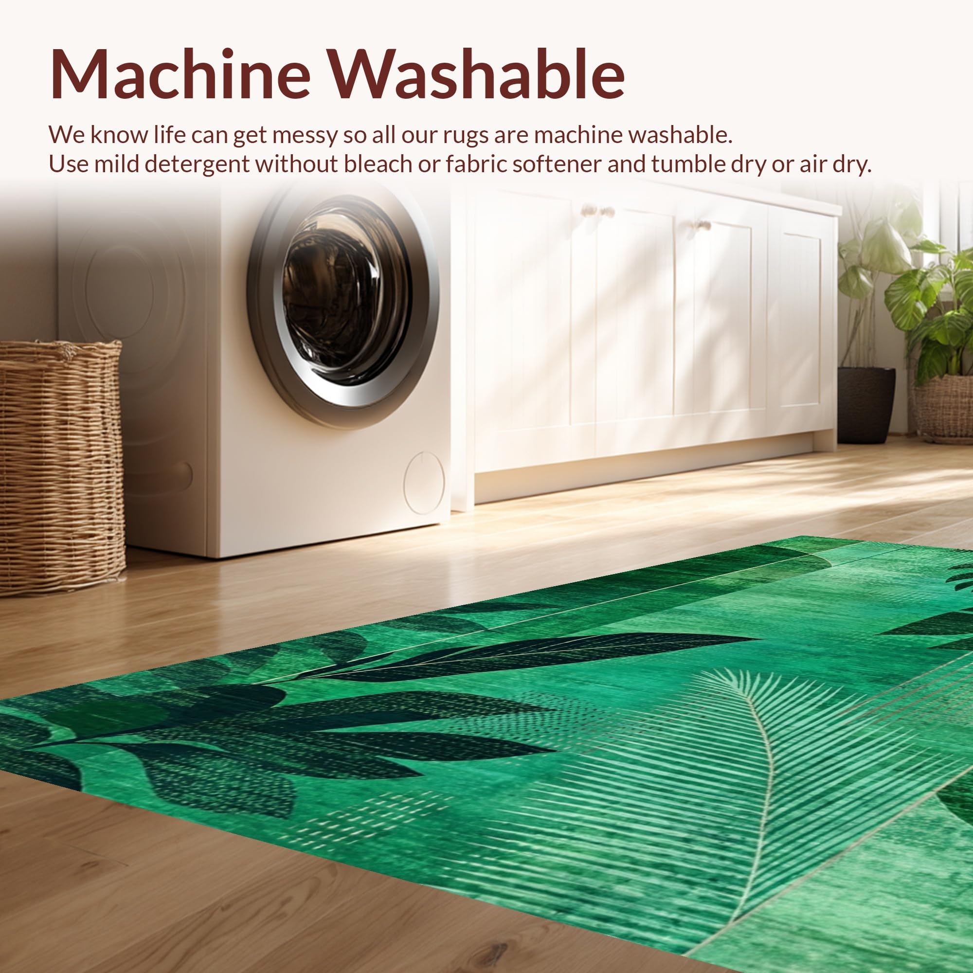 - Machine Washable: Our rugs can be easily thrown in the wash machine.