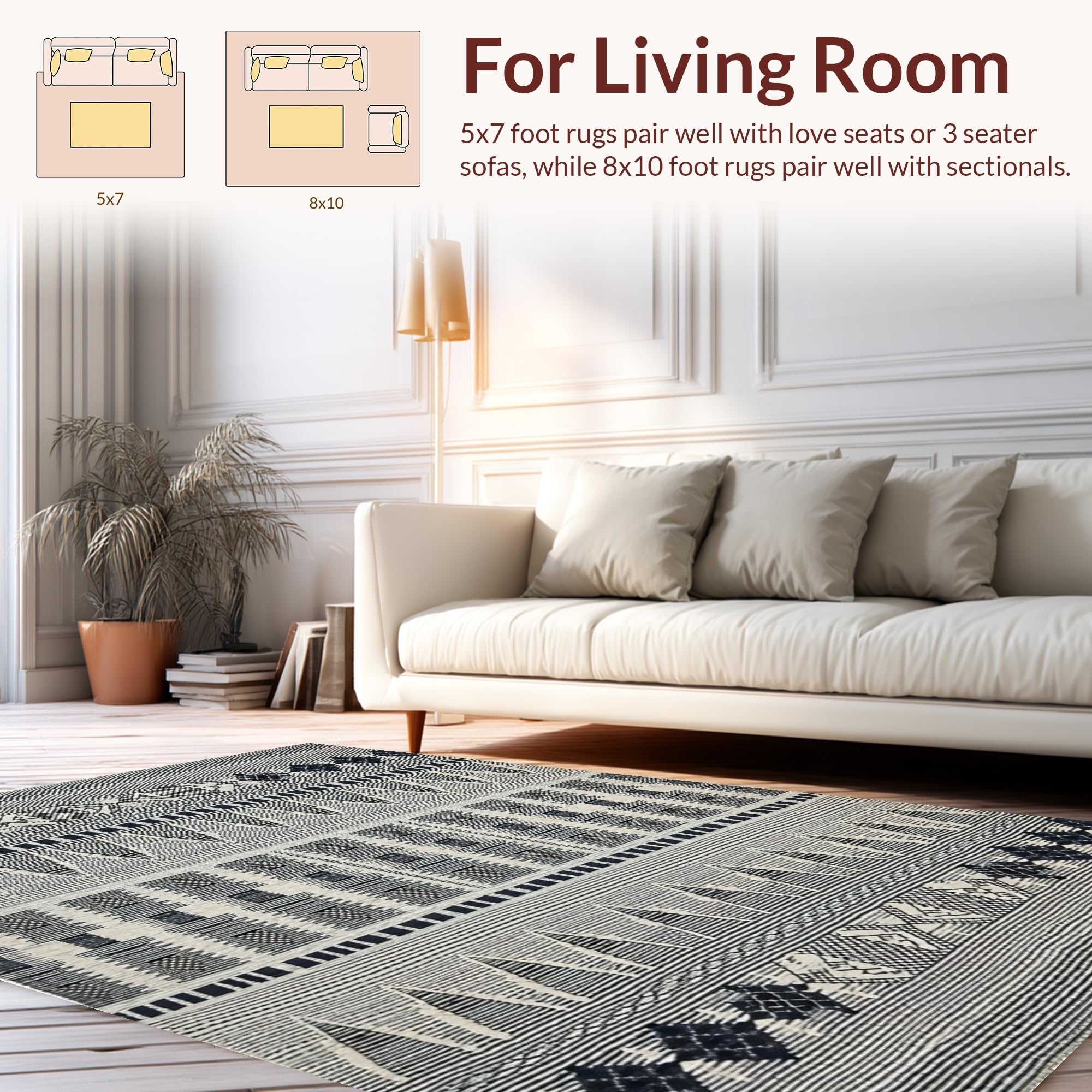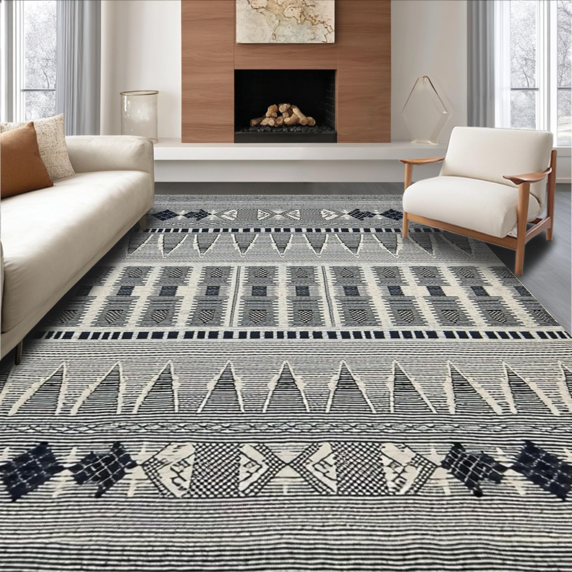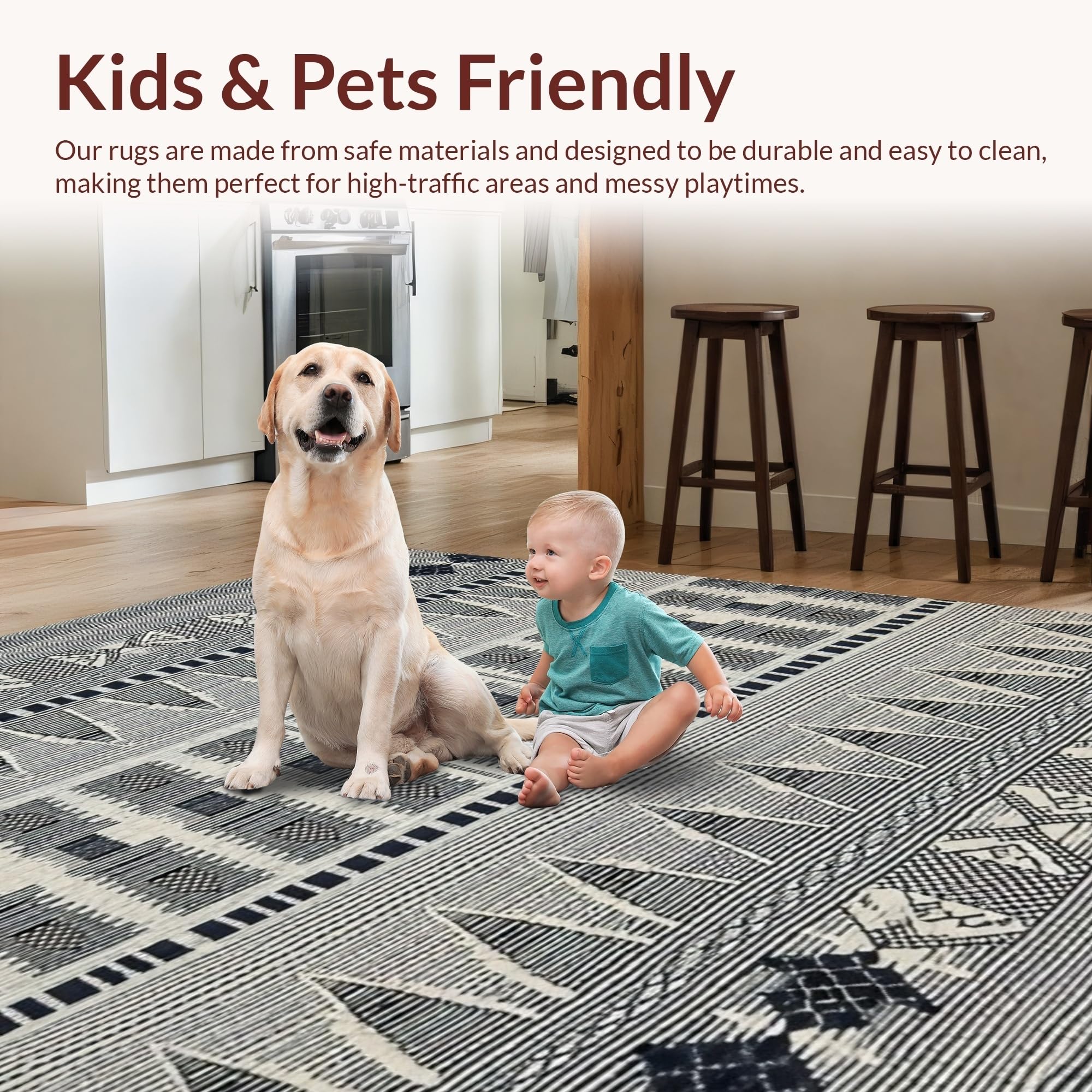 Ultra Soft Area Rug, Non Slip, Stain Resistant, Washable Area Rugs for Living Room, Bedroom, Elegant Textured Gray Wave Design(Black) Overview: