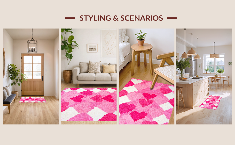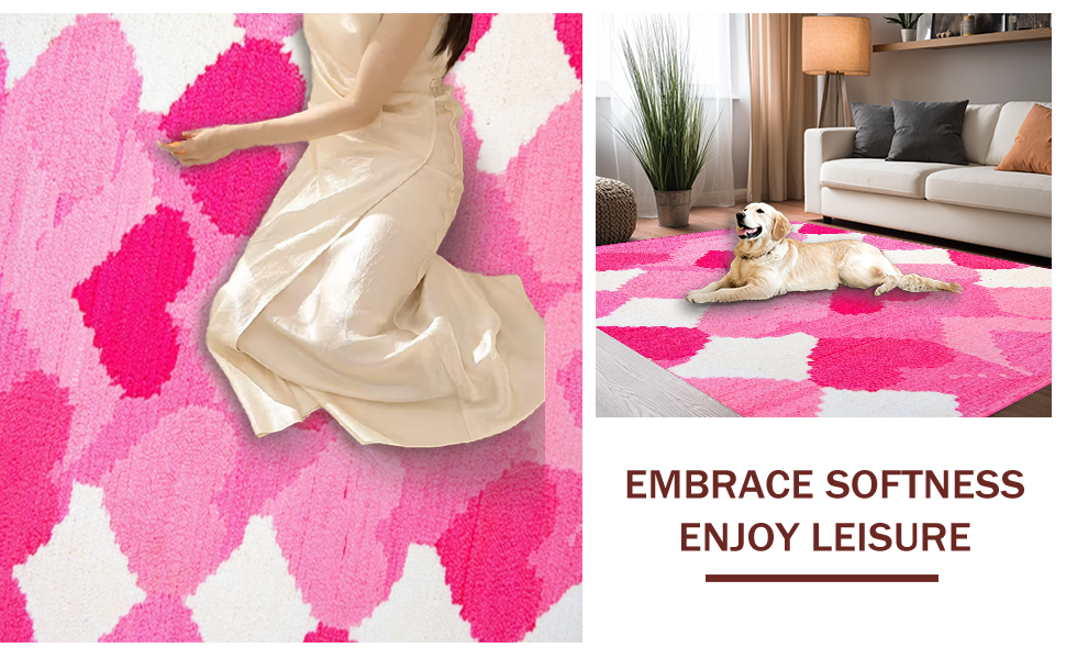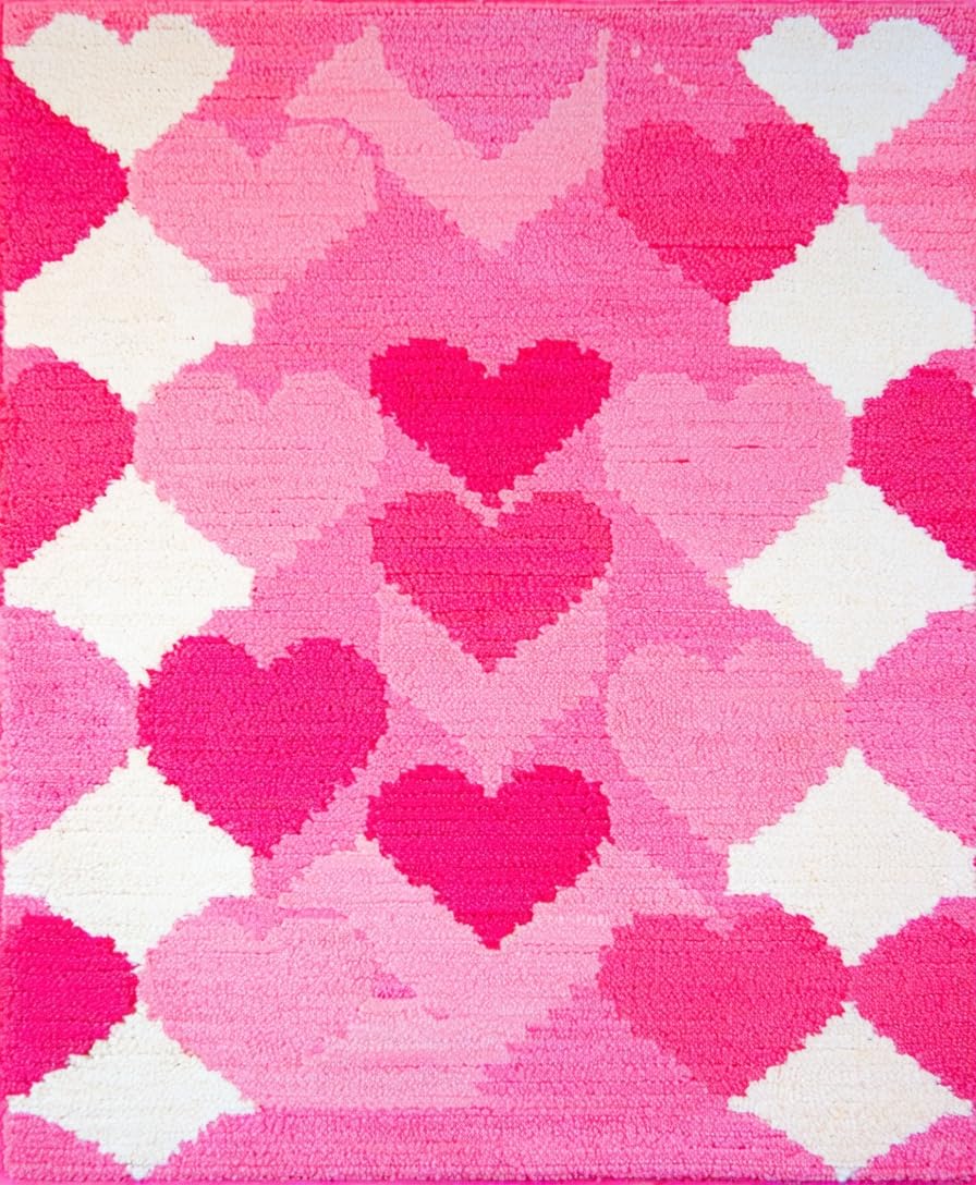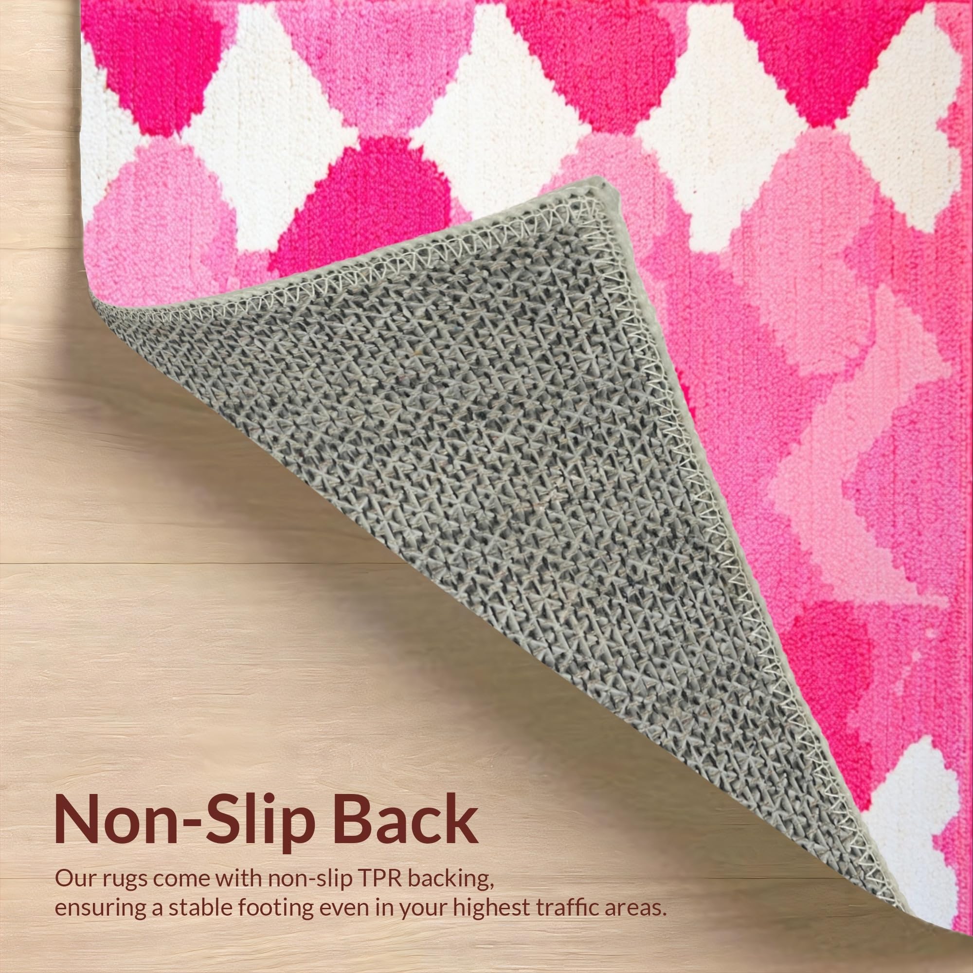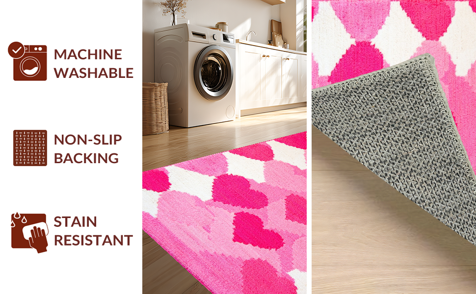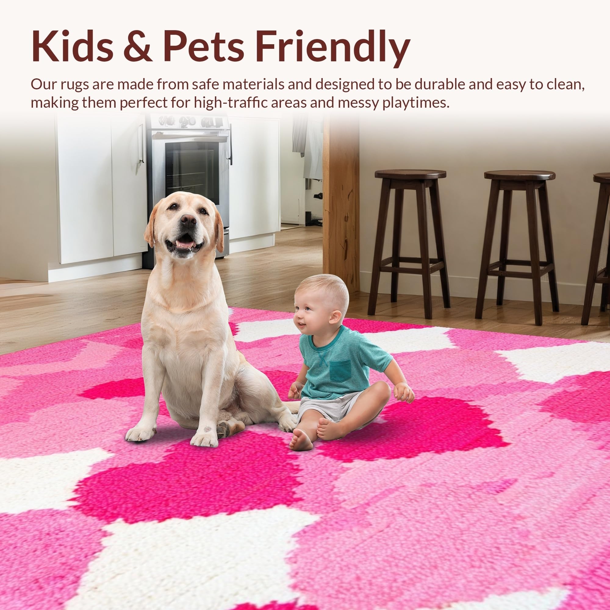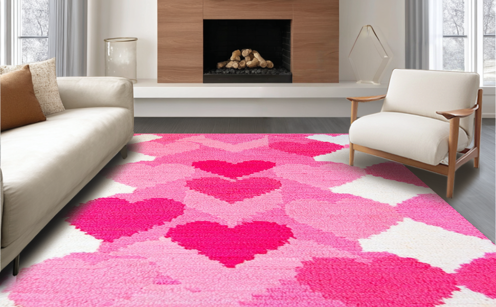 Ultra Soft Area Rug, Non Slip, Stain Resistant, Washable Area Rugs for Living Room, Bedroom, Elegant Textured Heart Artwork(Pink) Overview: