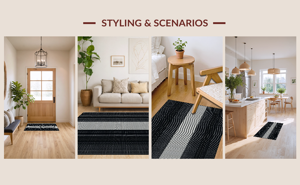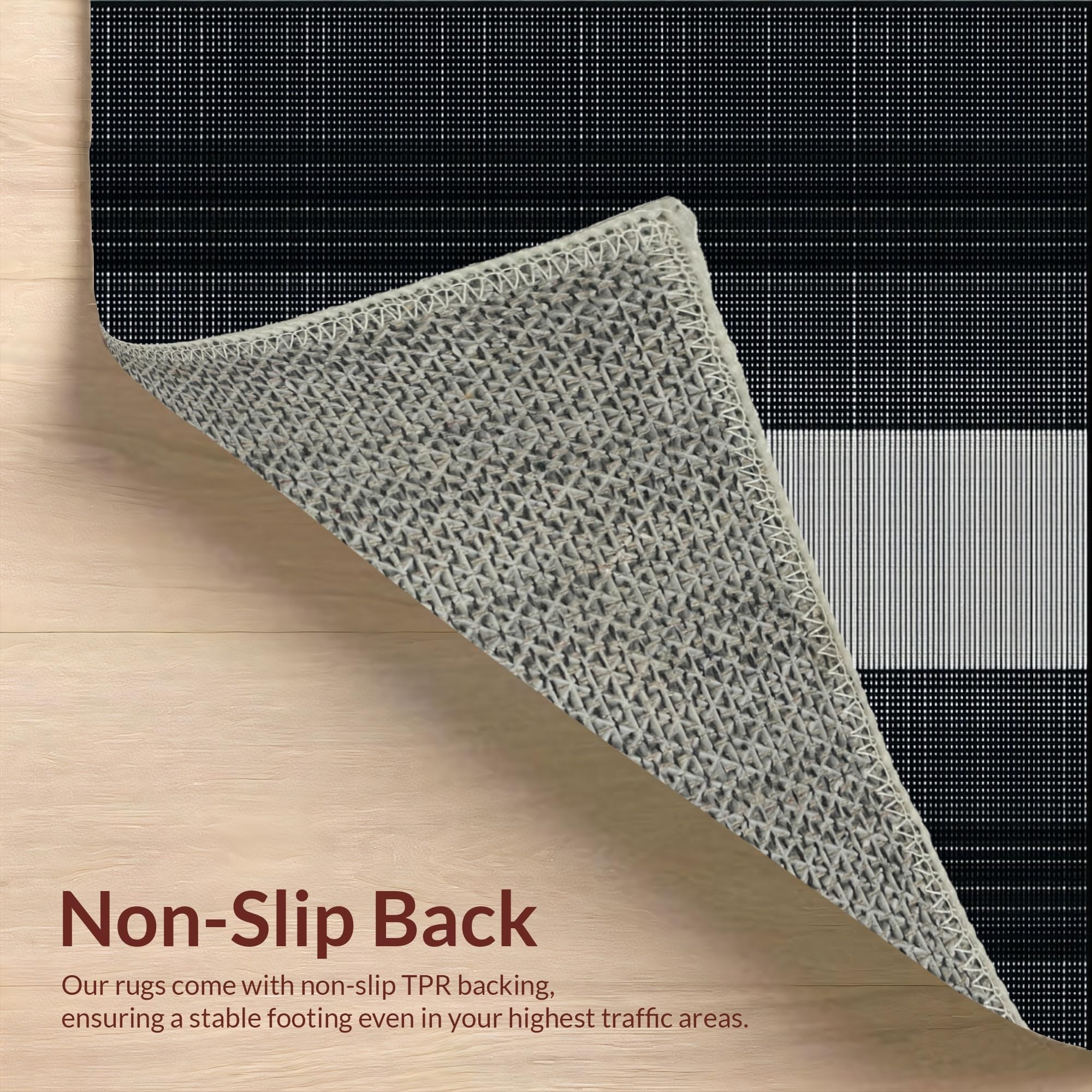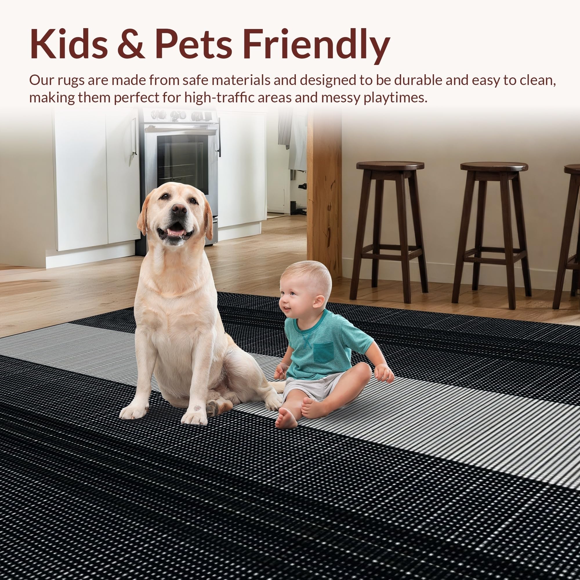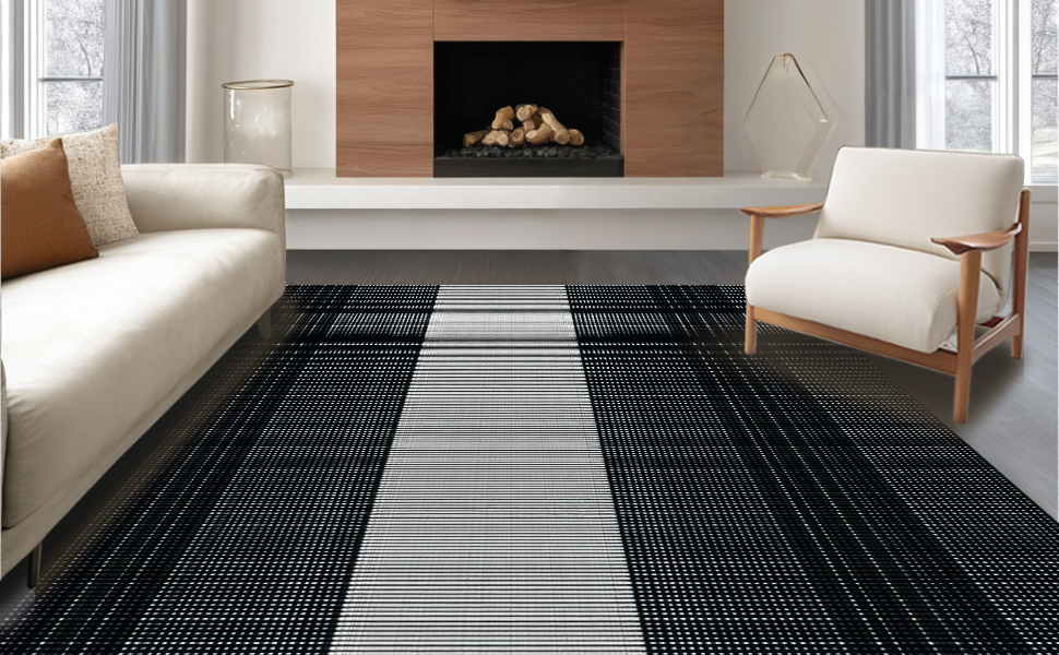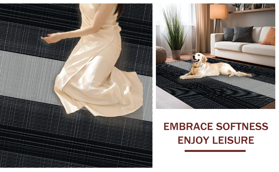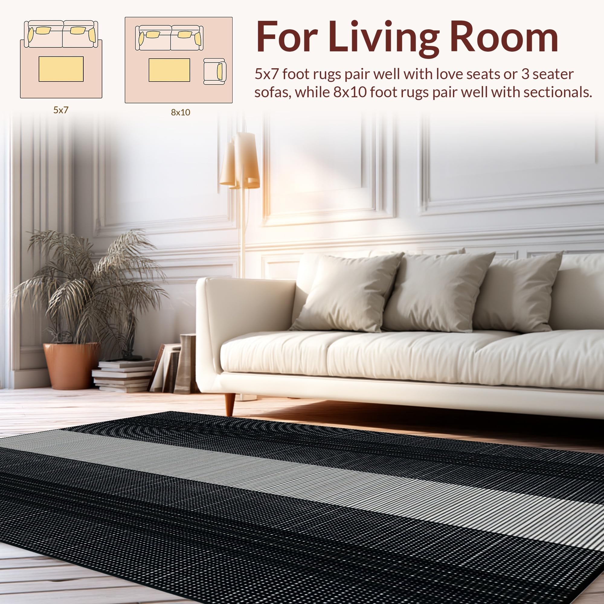Ultra Soft Area Rug, Non Slip, Stain Resistant, Washable Area Rugs for Living Room, Bedroom, Elegant Textured Layered Design(Black) Overview: