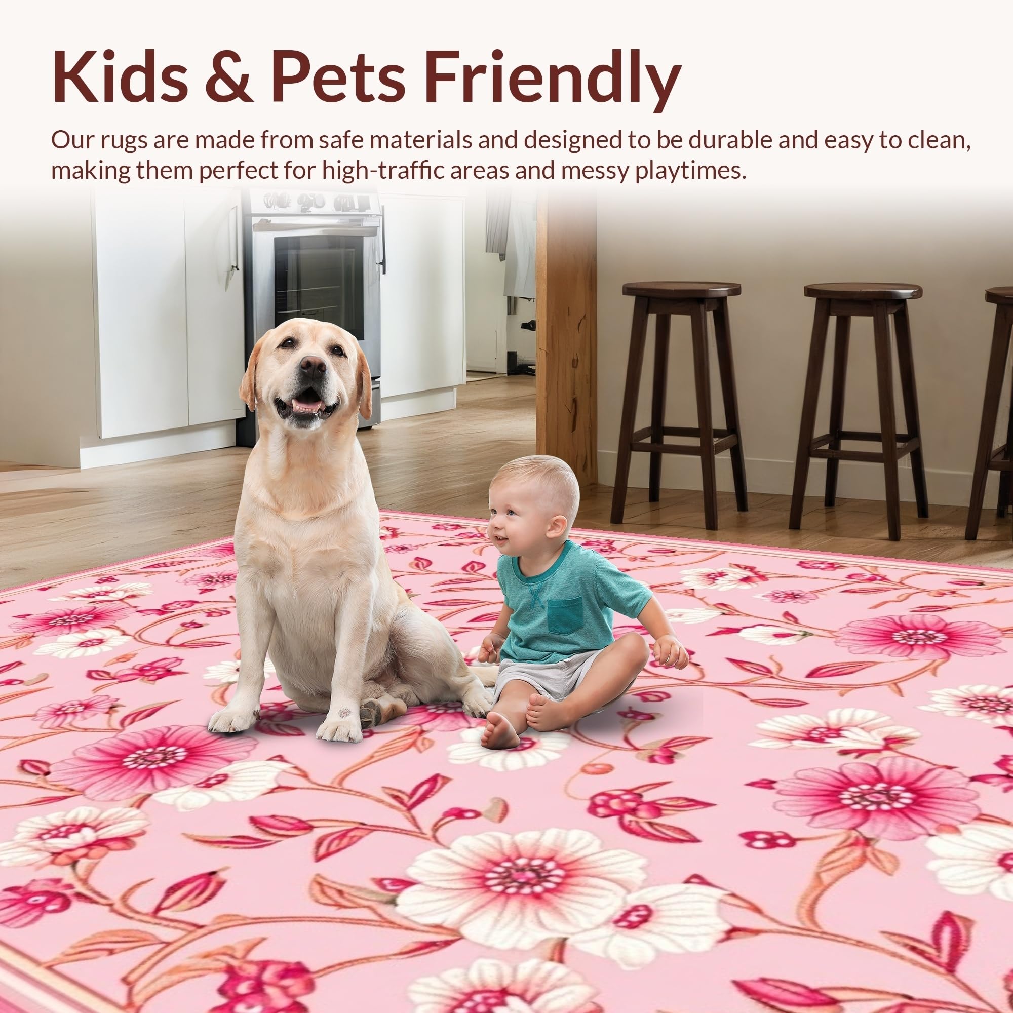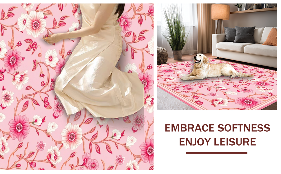 Ultra Soft Area Rug, Non Slip, Stain Resistant, Washable Area Rugs for Living Room, Bedroom, Elegant Textured Petal Pattern(Pink) Overview: