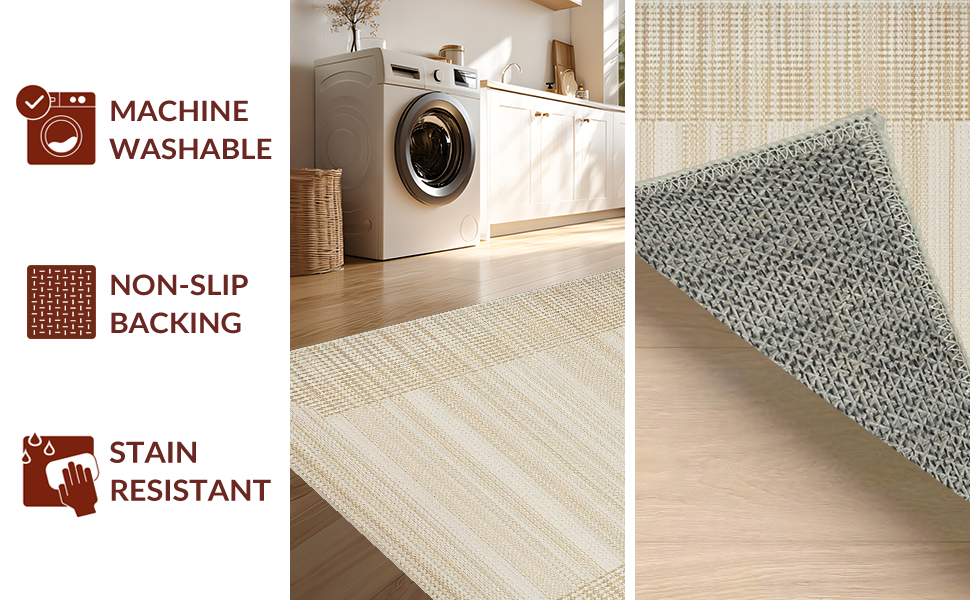 Ultra Soft Area Rug, Non Slip, Stain Resistant, Washable Area Rugs for Living Room, Bedroom, Elegant Textured Rustic Appeal(Beige) Overview: