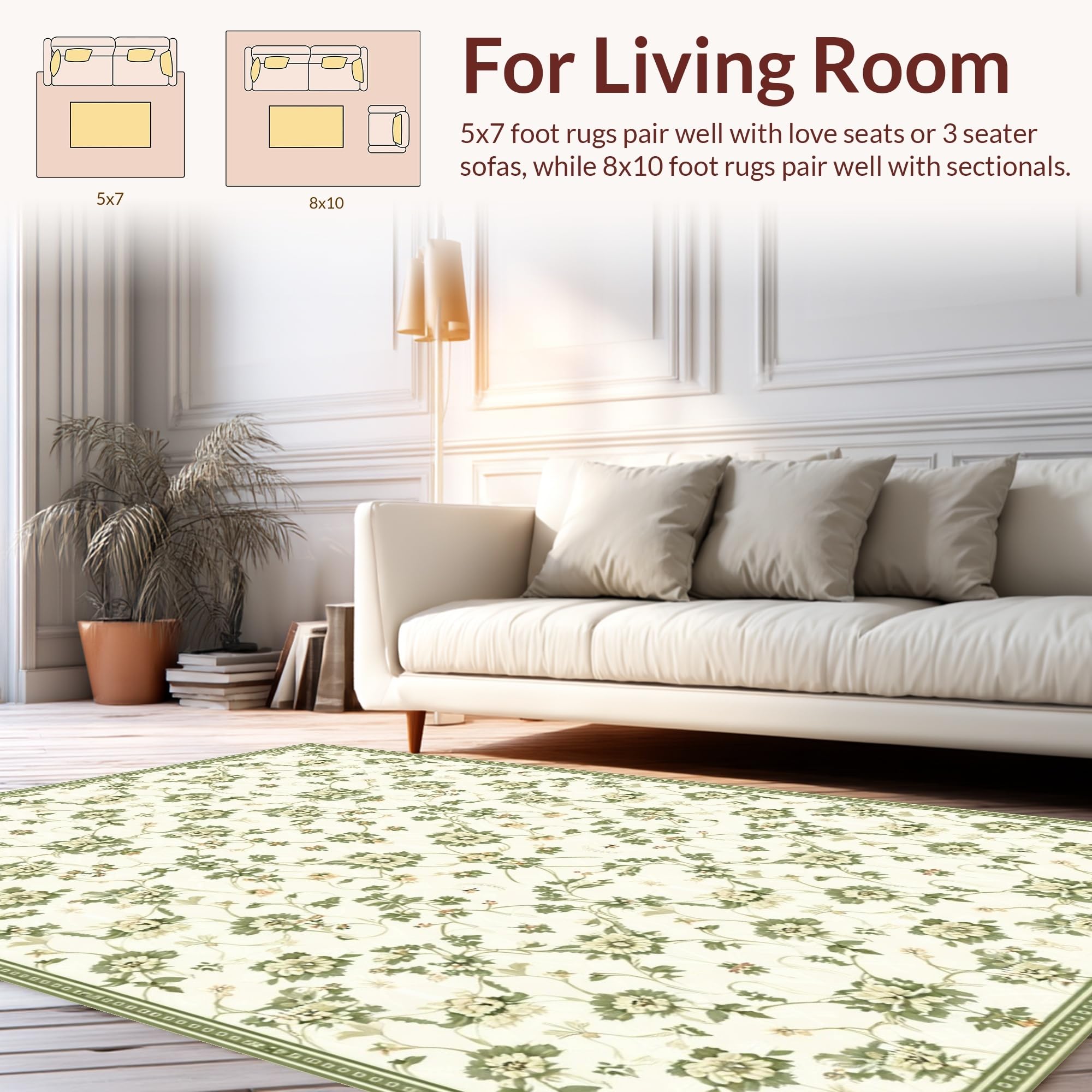 Ultra Soft Area Rug, Non Slip, Stain Resistant, Washable Area Rugs for Living Room, Bedroom, Elegant Textured Vintage Appeal(Beige) Overview: