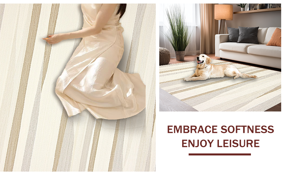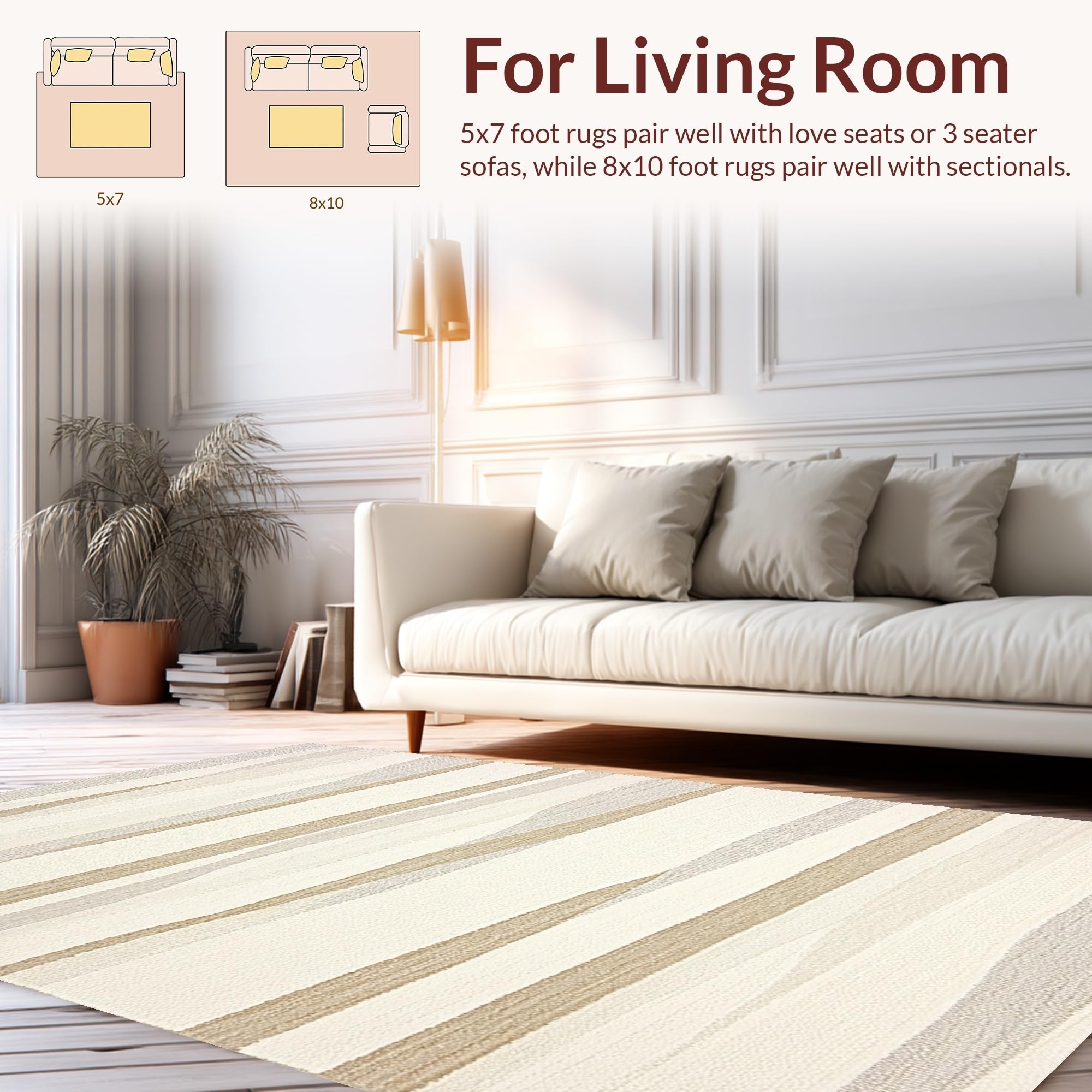 Ultra Soft Area Rug, Non Slip, Stain Resistant, Washable Area Rugs for Living Room, Bedroom, Elegant Tidal Patterned Visuals(Beige) Overview: