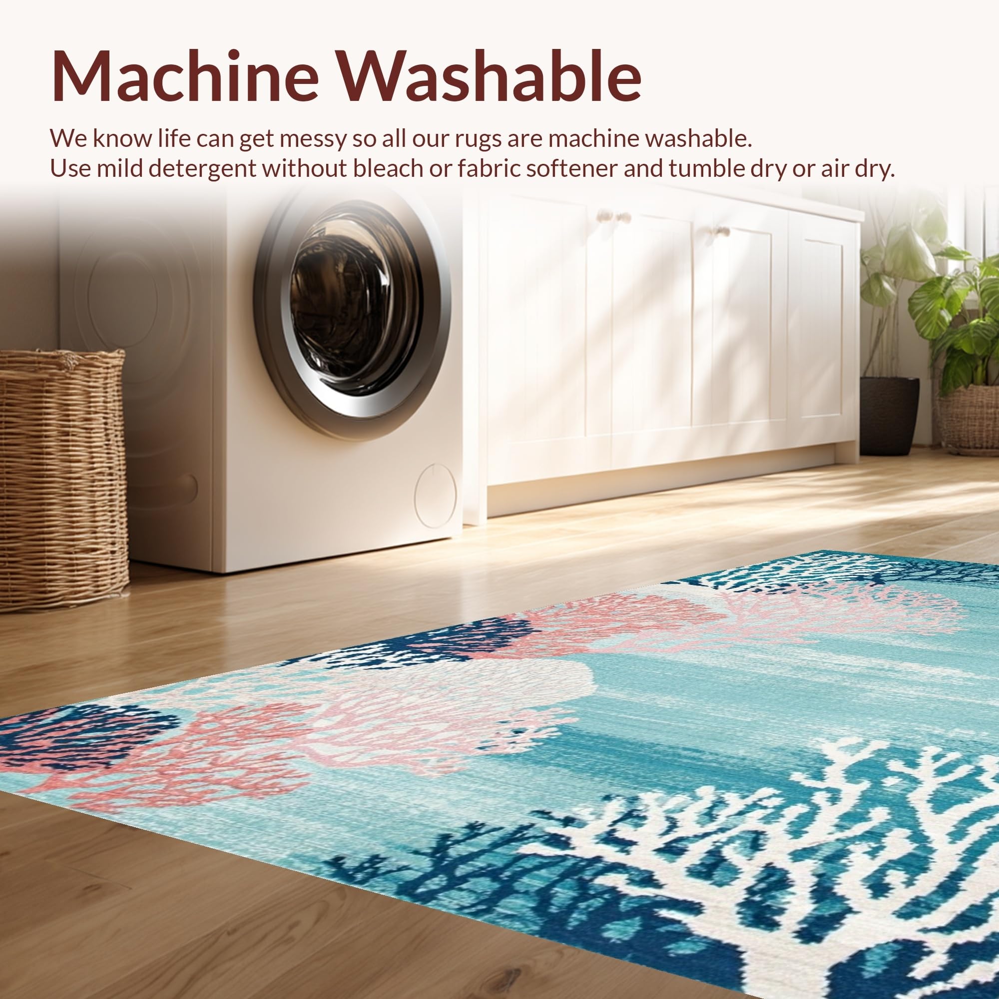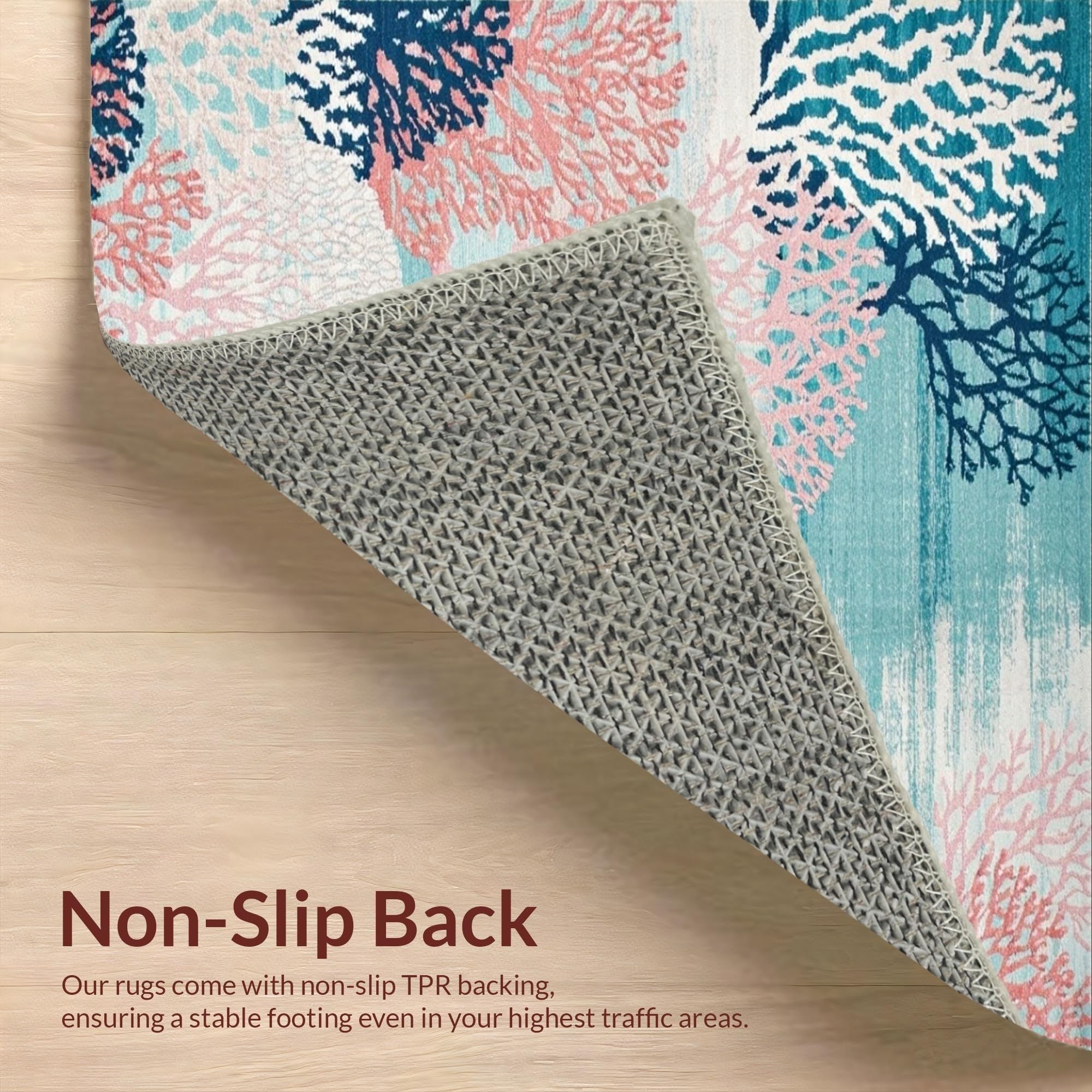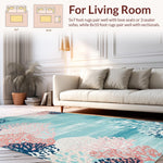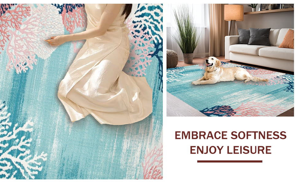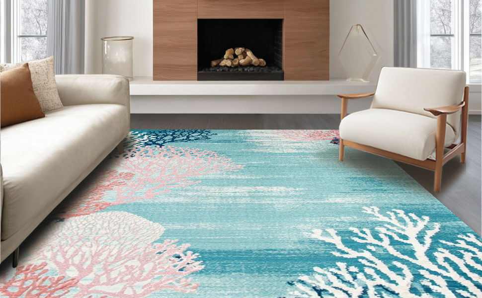Ultra Soft Area Rug, Non Slip, Stain Resistant, Washable Area Rugs for Living Room, Bedroom, Elegant Tiled Coral Aesthetic(Blue) Overview: