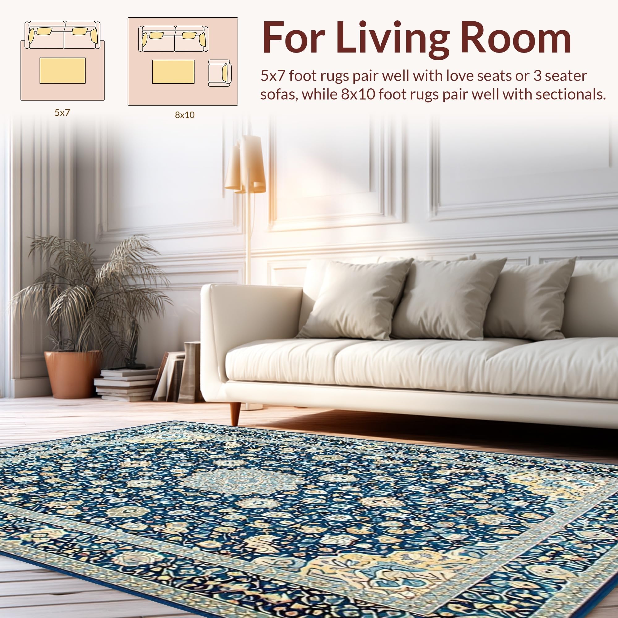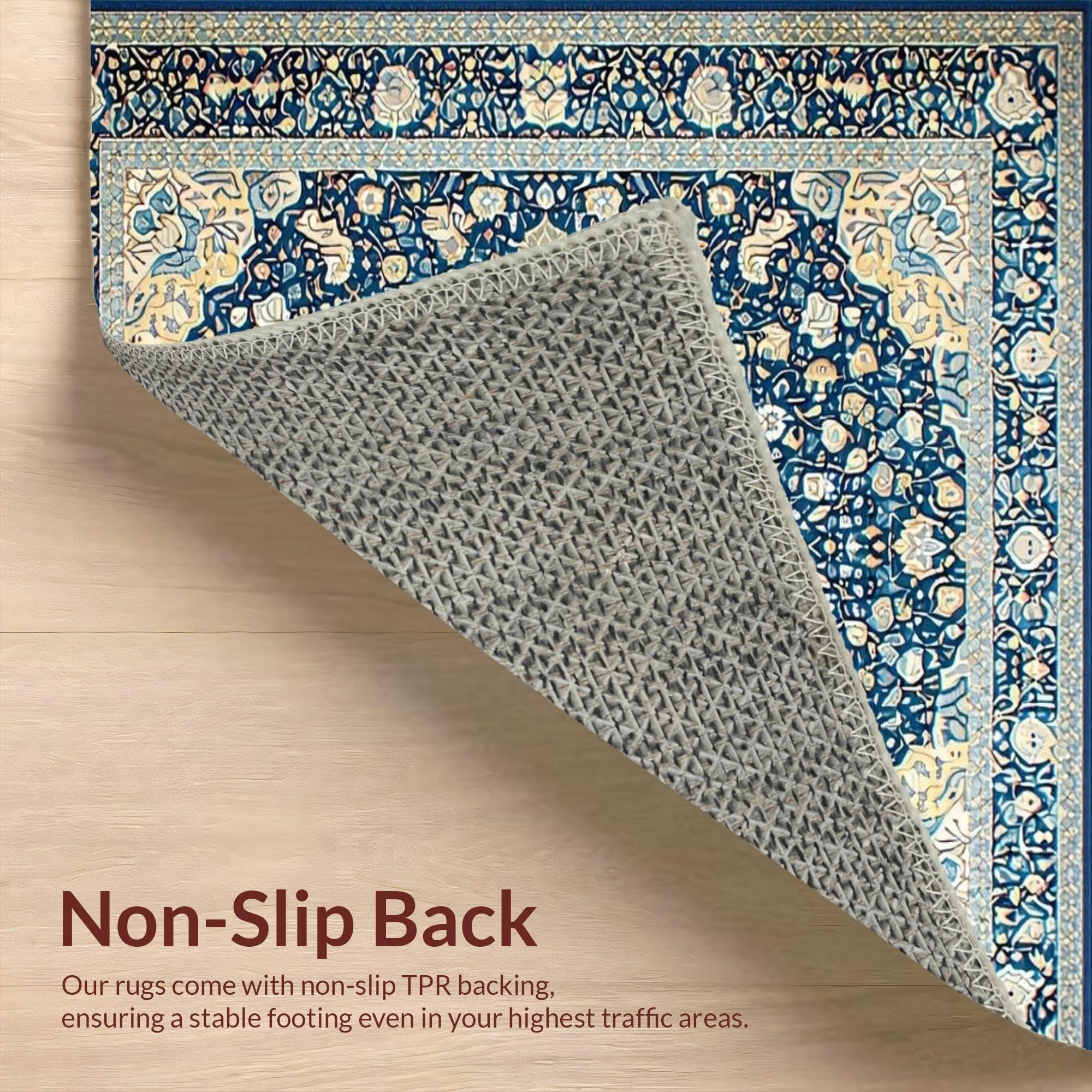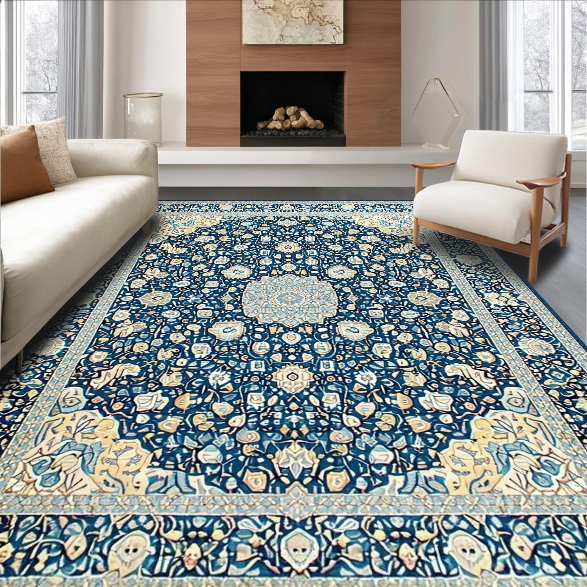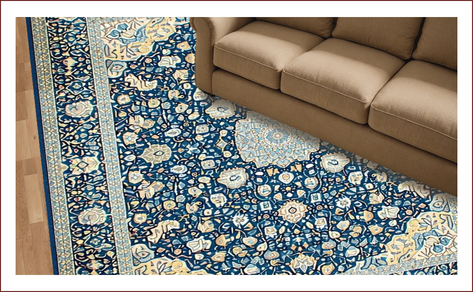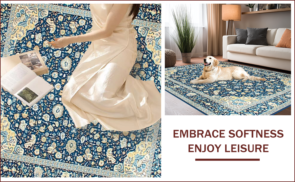 Ultra Soft Area Rug, Non Slip, Stain Resistant, Washable Area Rugs for Living Room, Bedroom, Elegant Tone-on-Tone Floral Motif(Blue) Overview: